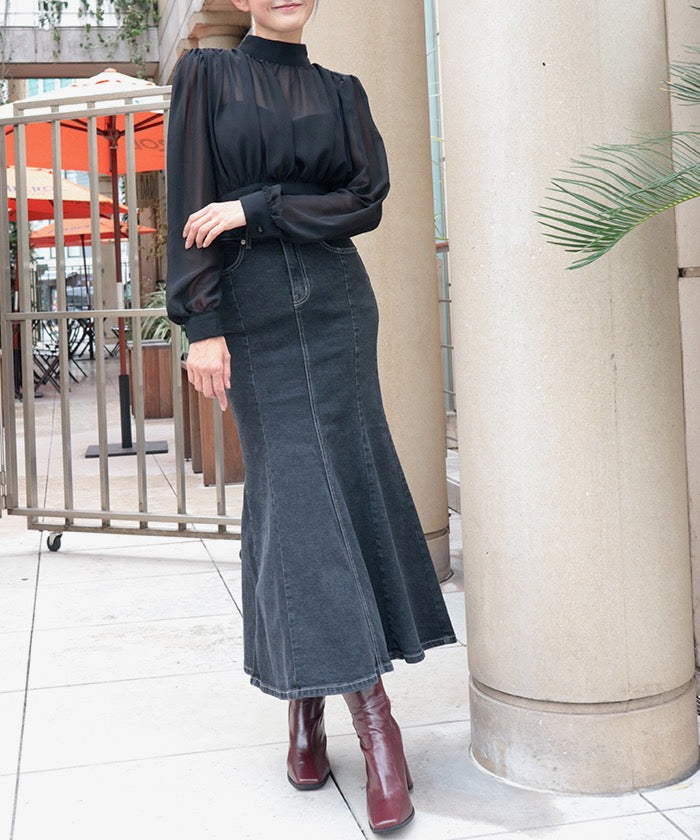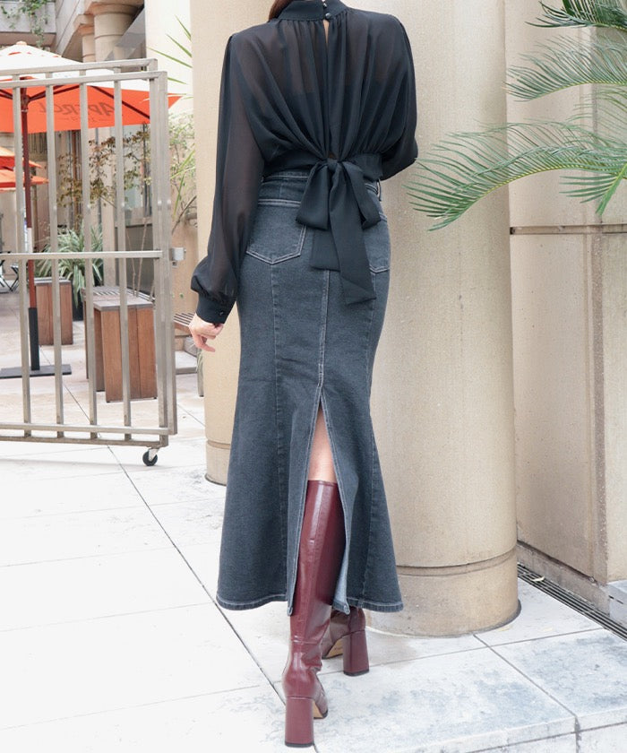 【S】着丈:90、ウエスト幅:32、ヒップ幅:40、裾幅:80、スリット:45