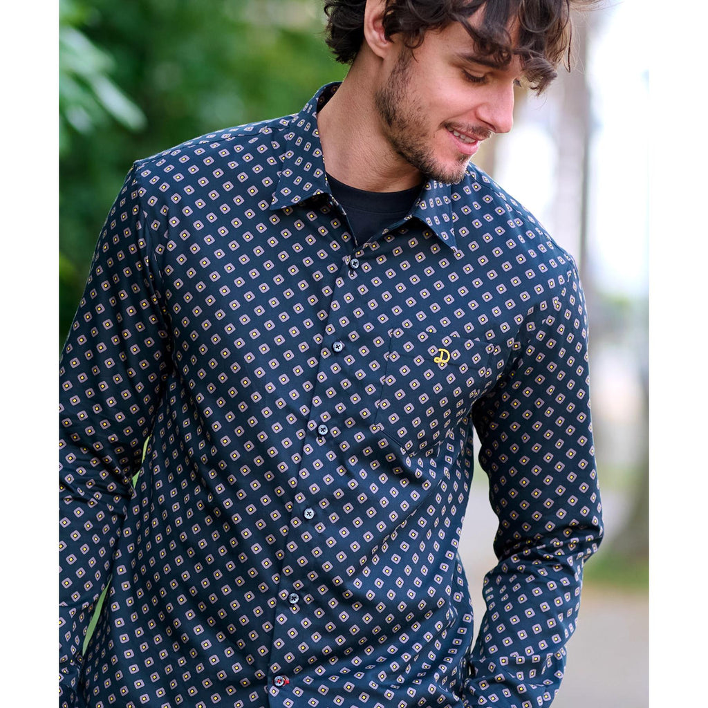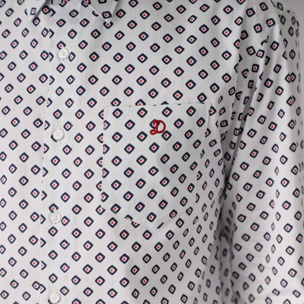 デザインは、レギュラーカラー・ジャストフィットのベーシックなシャツ型です。