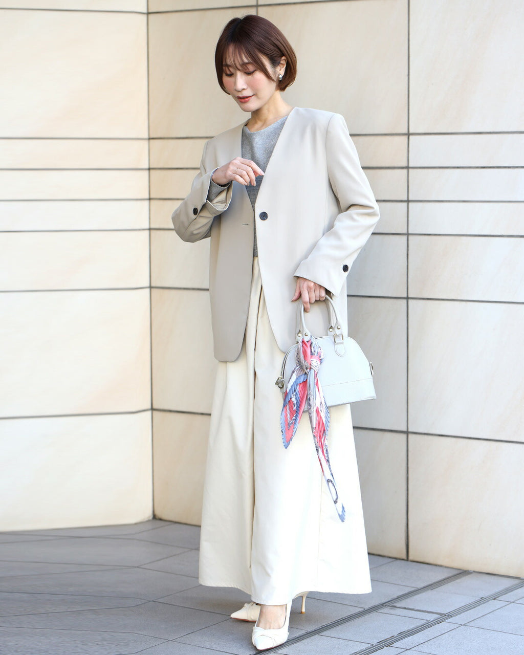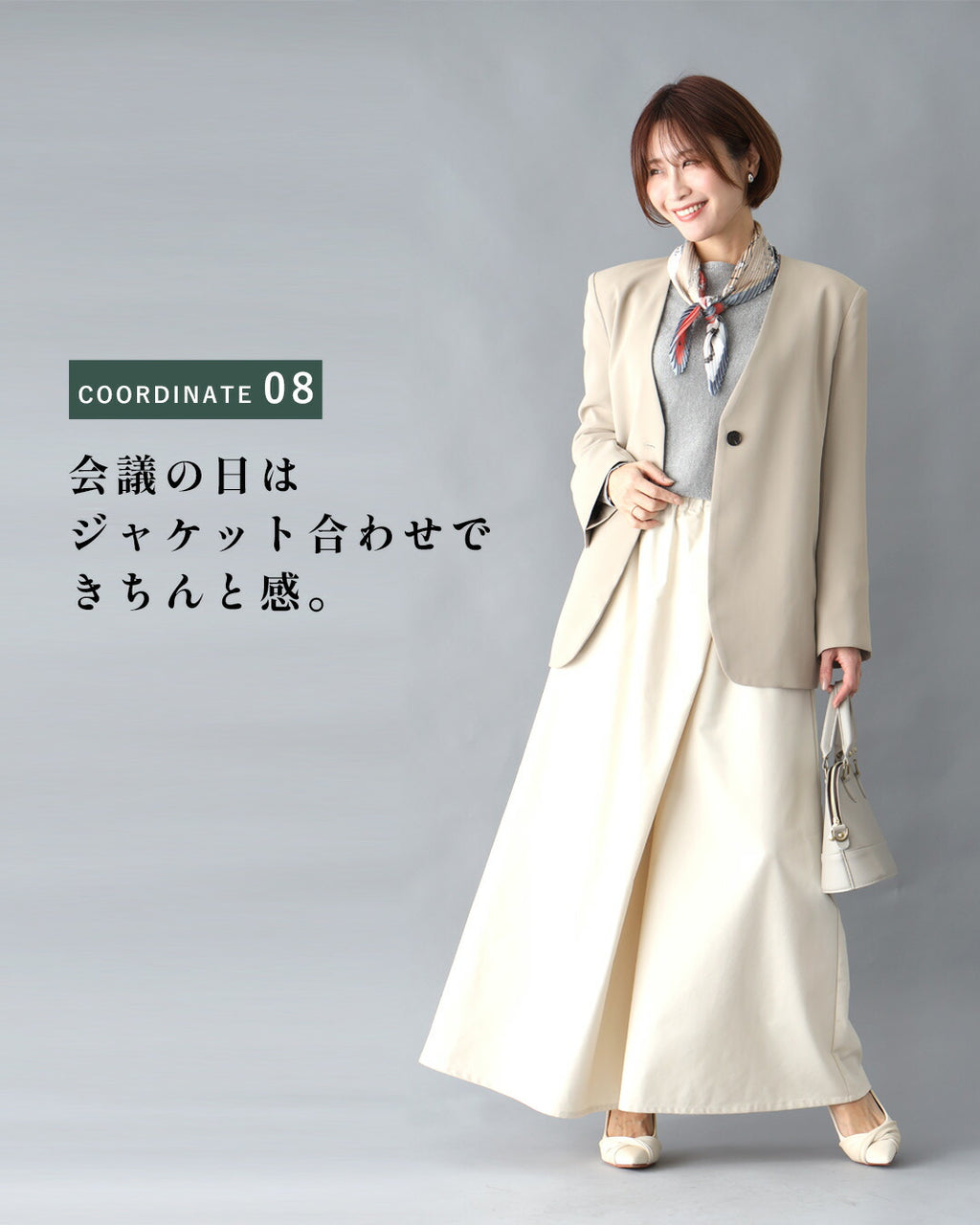 上品なデザインで、カジュアルにもキレイめにも着こなせる万能アイテム。