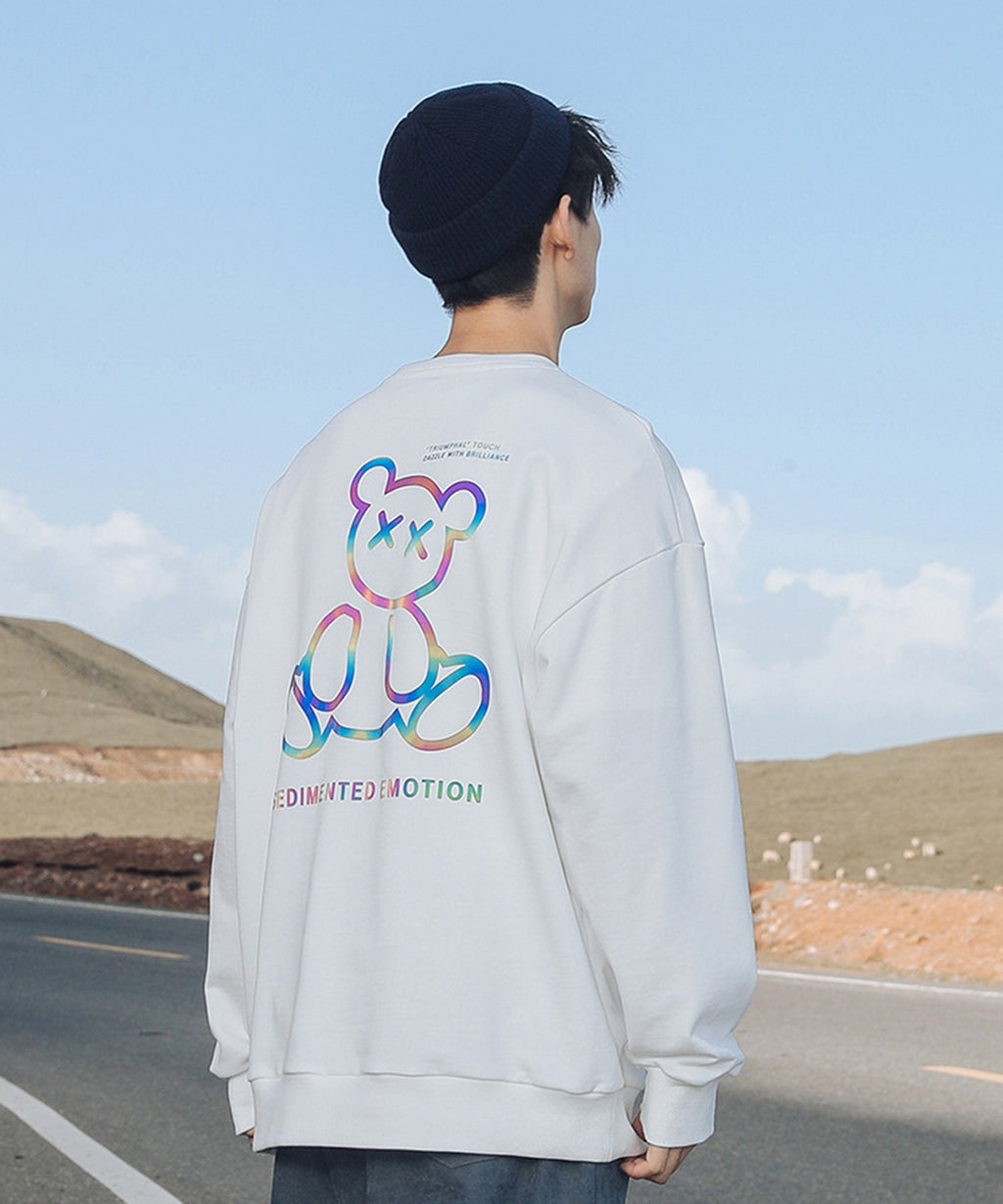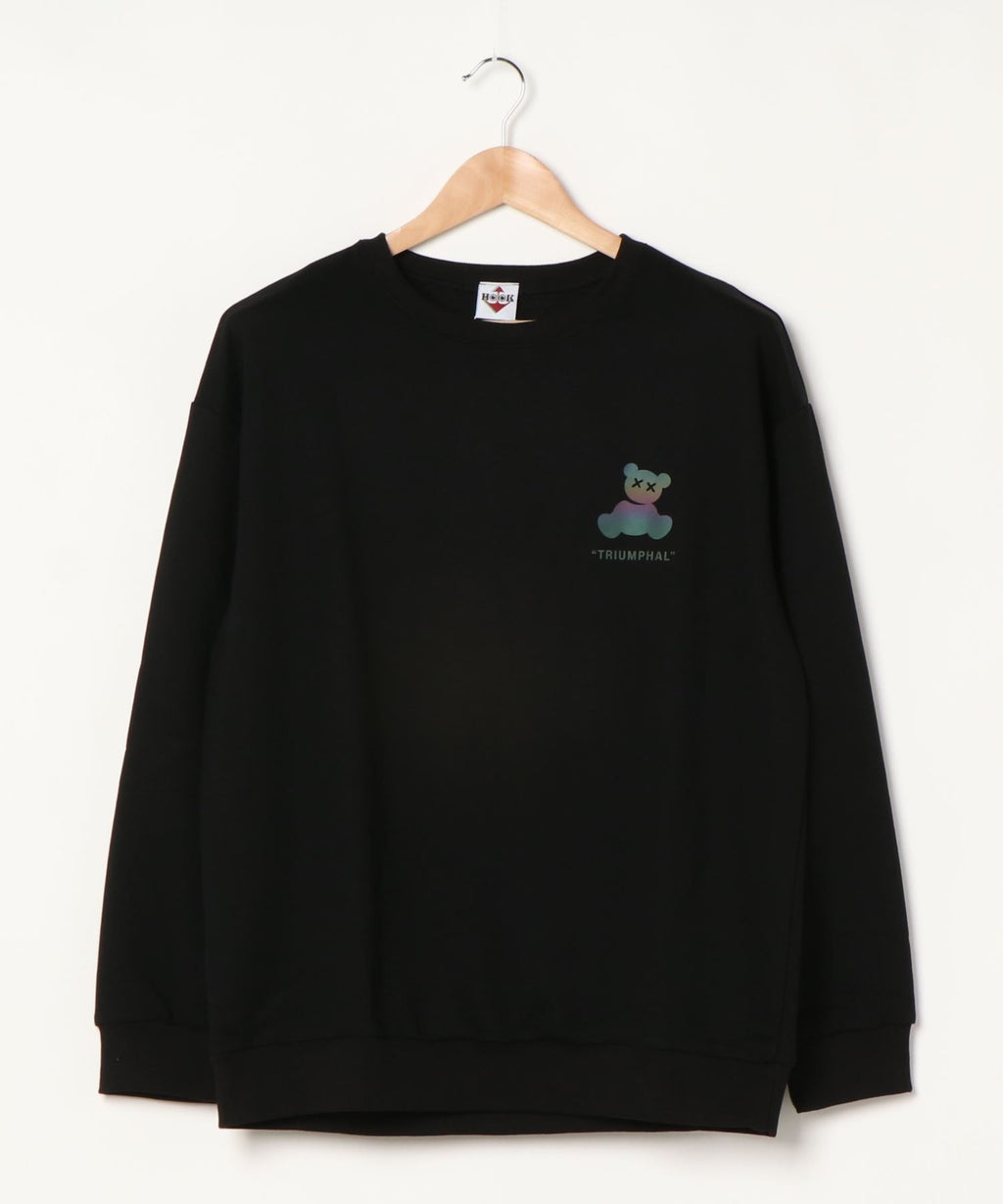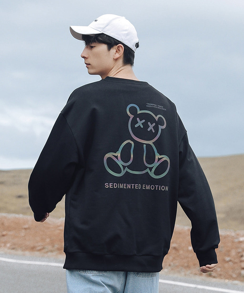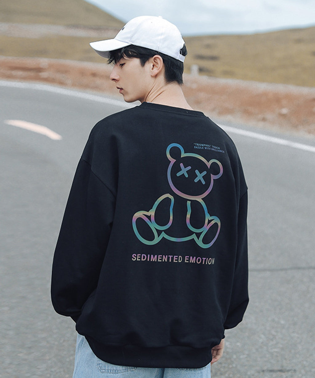 フック HOOK 【HOOK】【2020新作】数量限定!ユニセックス・ストリート/激カワ オリジナルプリント 長袖トレーナー 反射プリント 猫柄・マーガレット柄・ベア柄・スマイル
