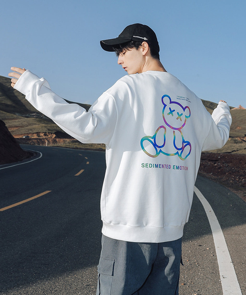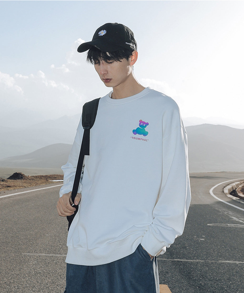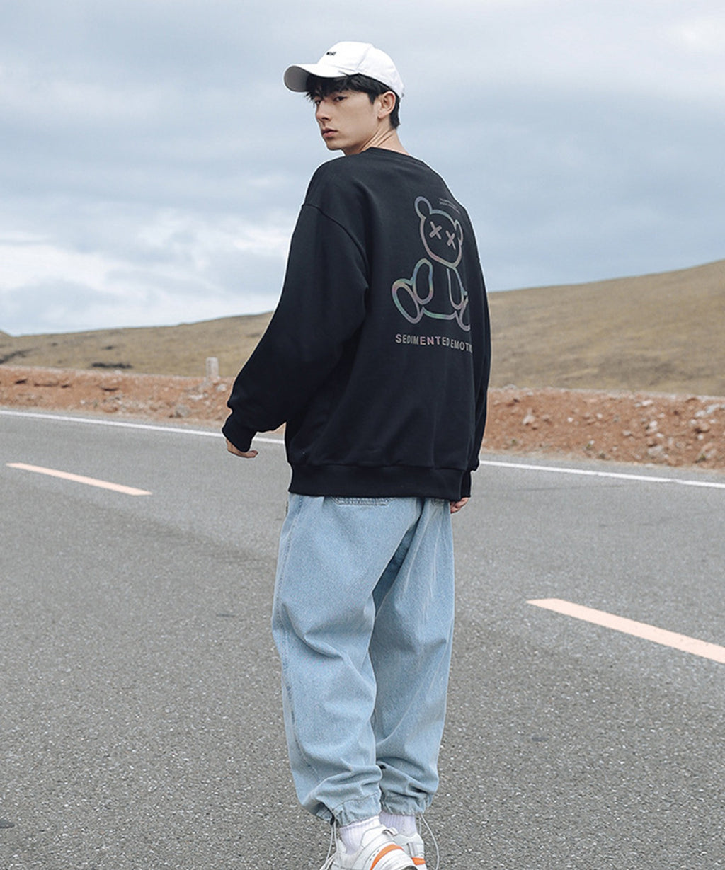 フック HOOK 【HOOK】【2020新作】数量限定!ユニセックス・ストリート/激カワ オリジナルプリント 長袖トレーナー 反射プリント 猫柄・マーガレット柄・ベア柄・スマイル