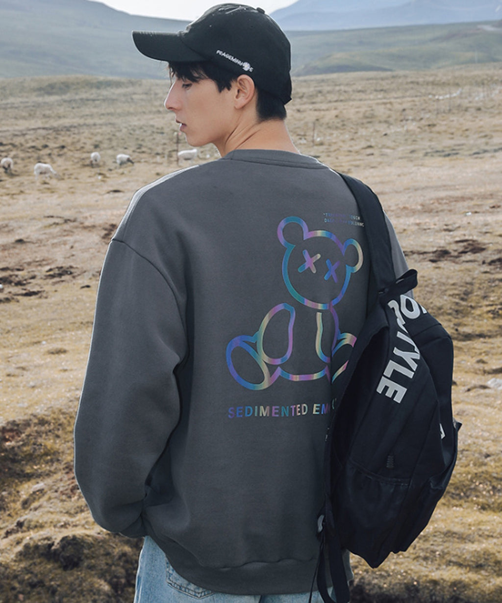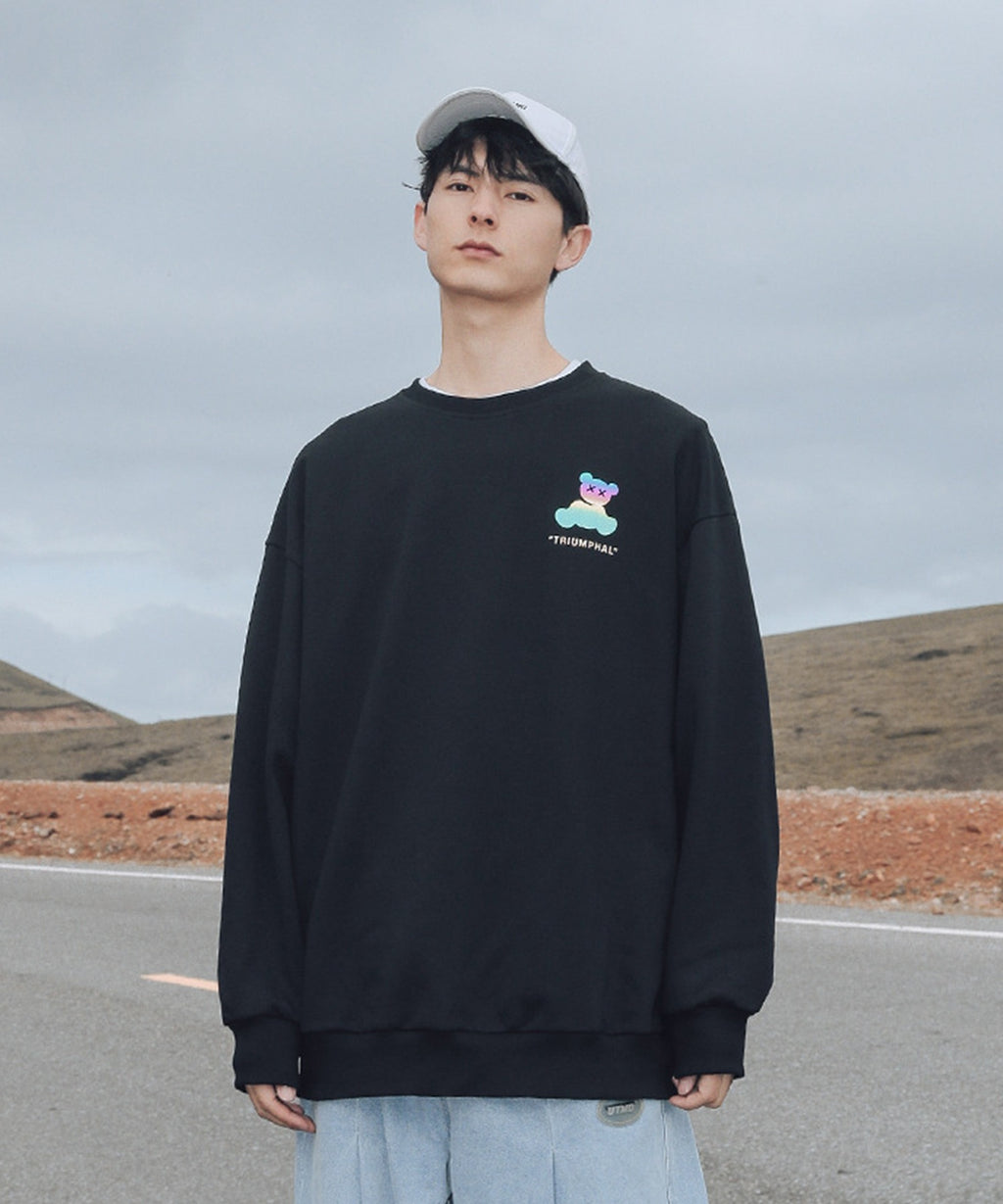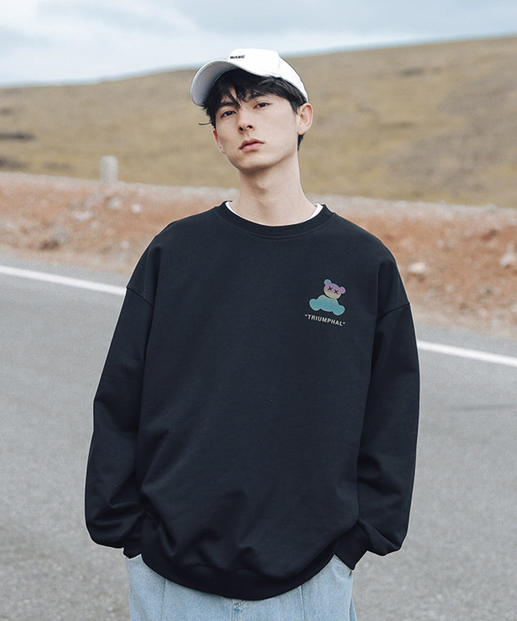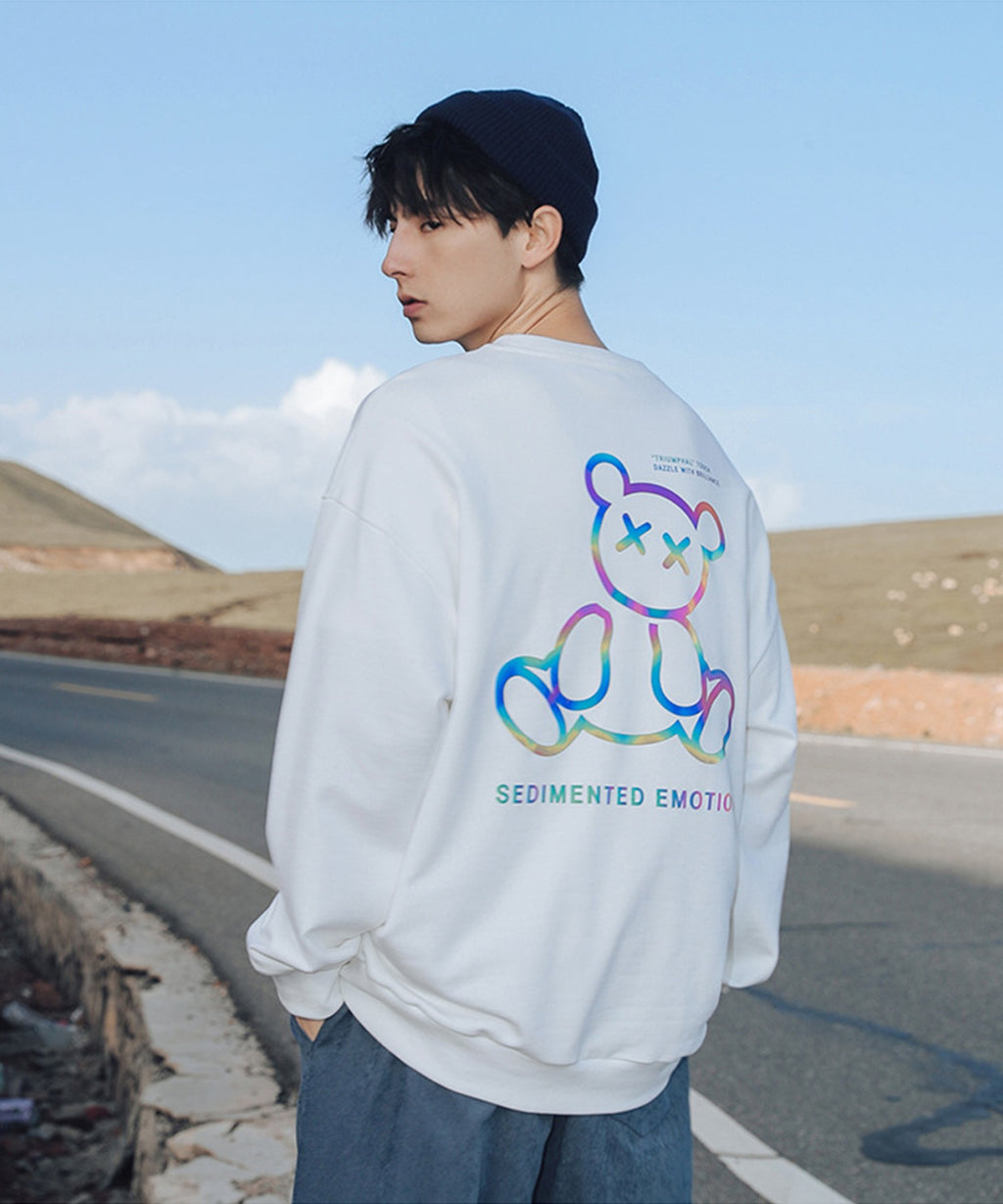フック HOOK 【HOOK】【2020新作】数量限定!ユニセックス・ストリート/激カワ オリジナルプリント 長袖トレーナー 反射プリント 猫柄・マーガレット柄・ベア柄・スマイル