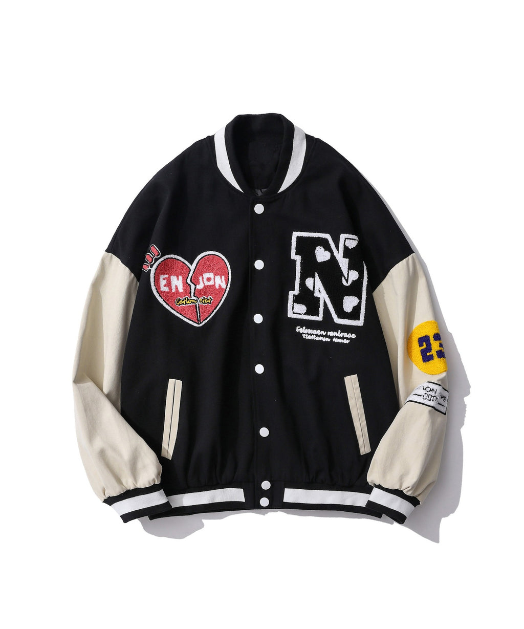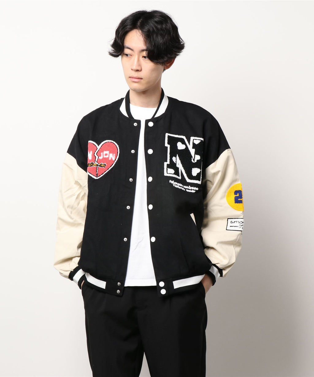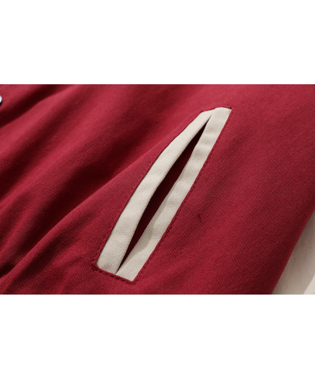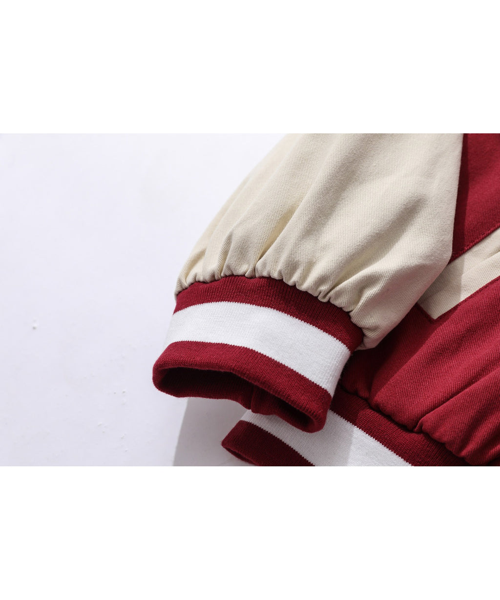 フック HOOK HOOK新作 ユニセックス アメカジ袖配色切り替えドッキングブルゾン ワッペン刺繍入り
