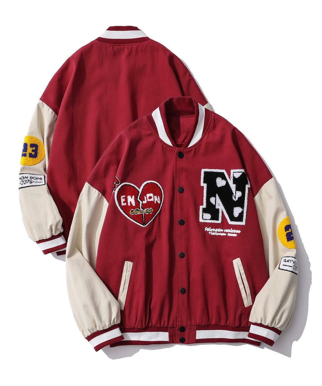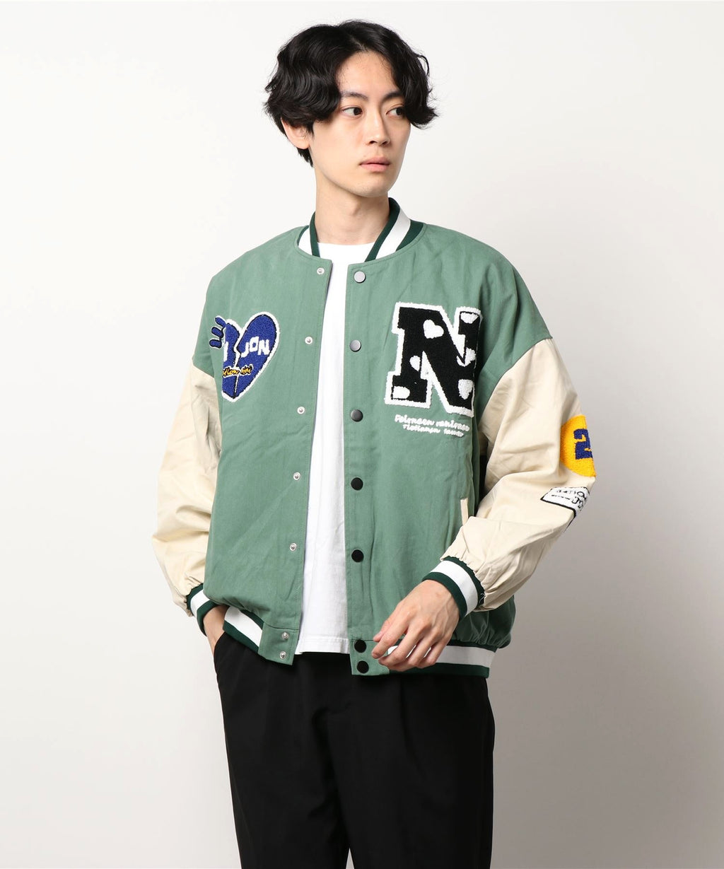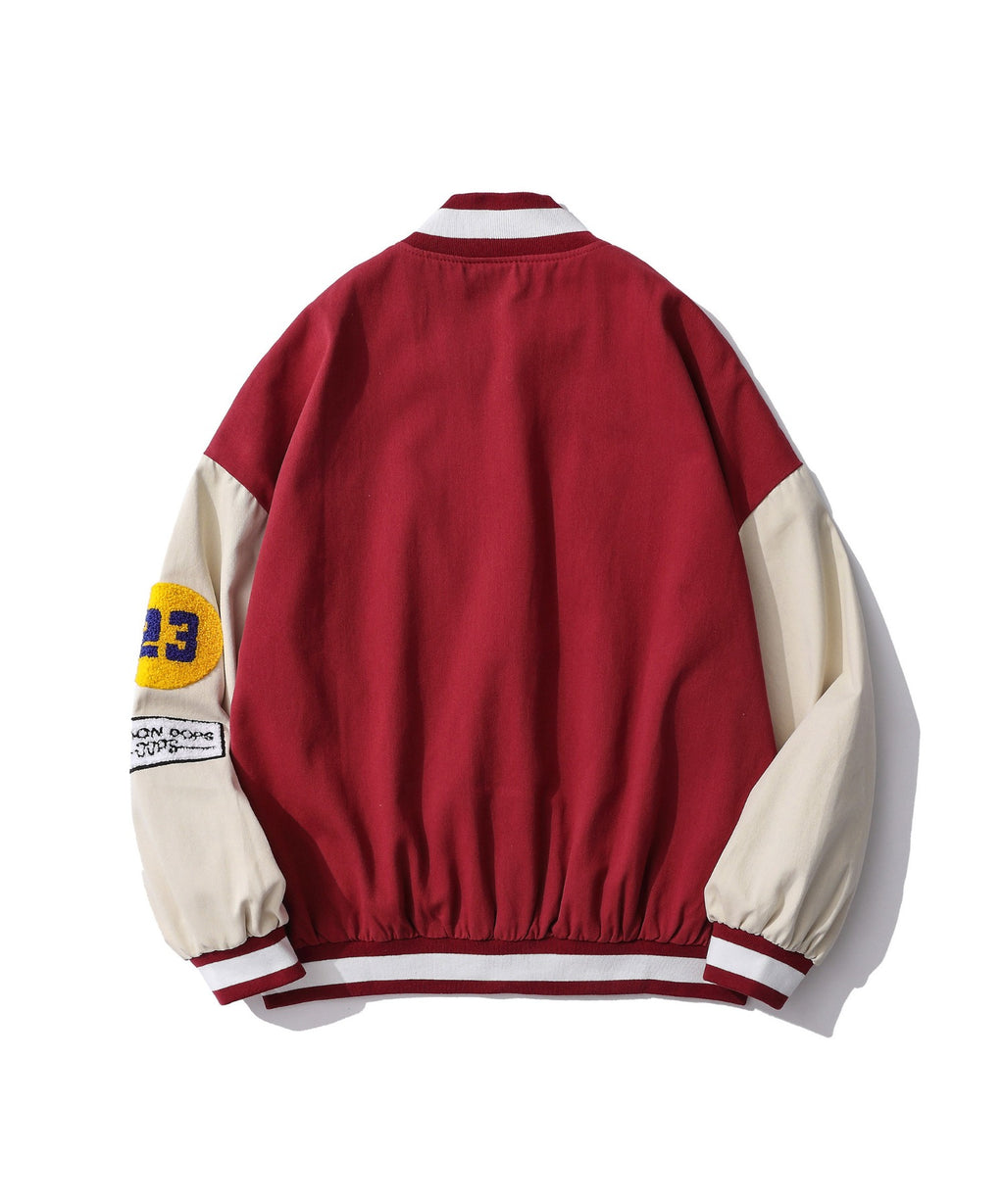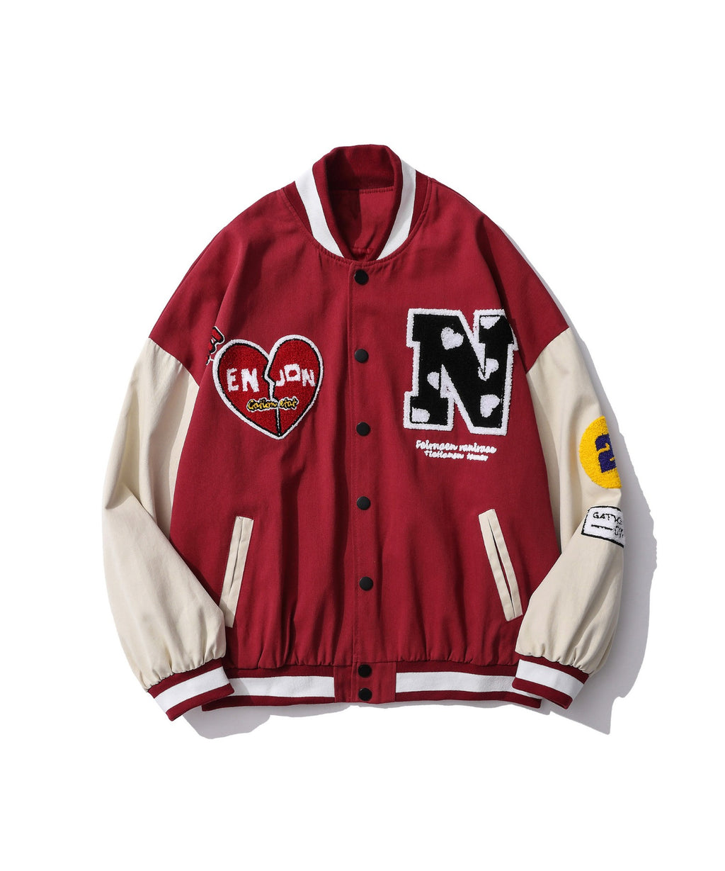 フック HOOK HOOK新作 ユニセックス アメカジ袖配色切り替えドッキングブルゾン ワッペン刺繍入り