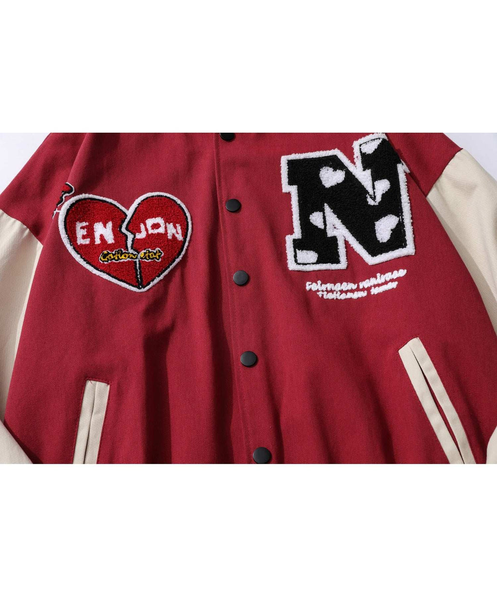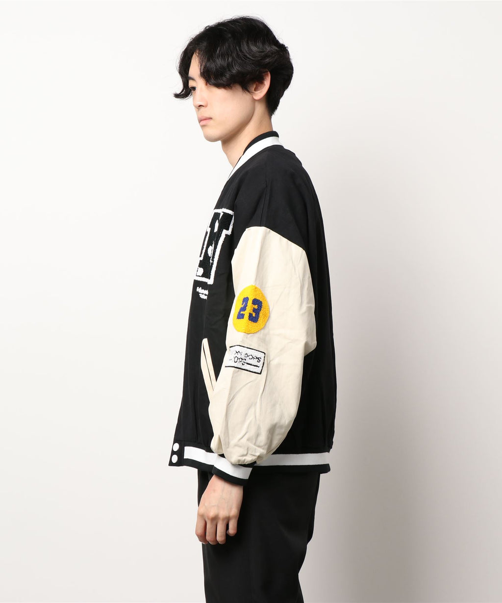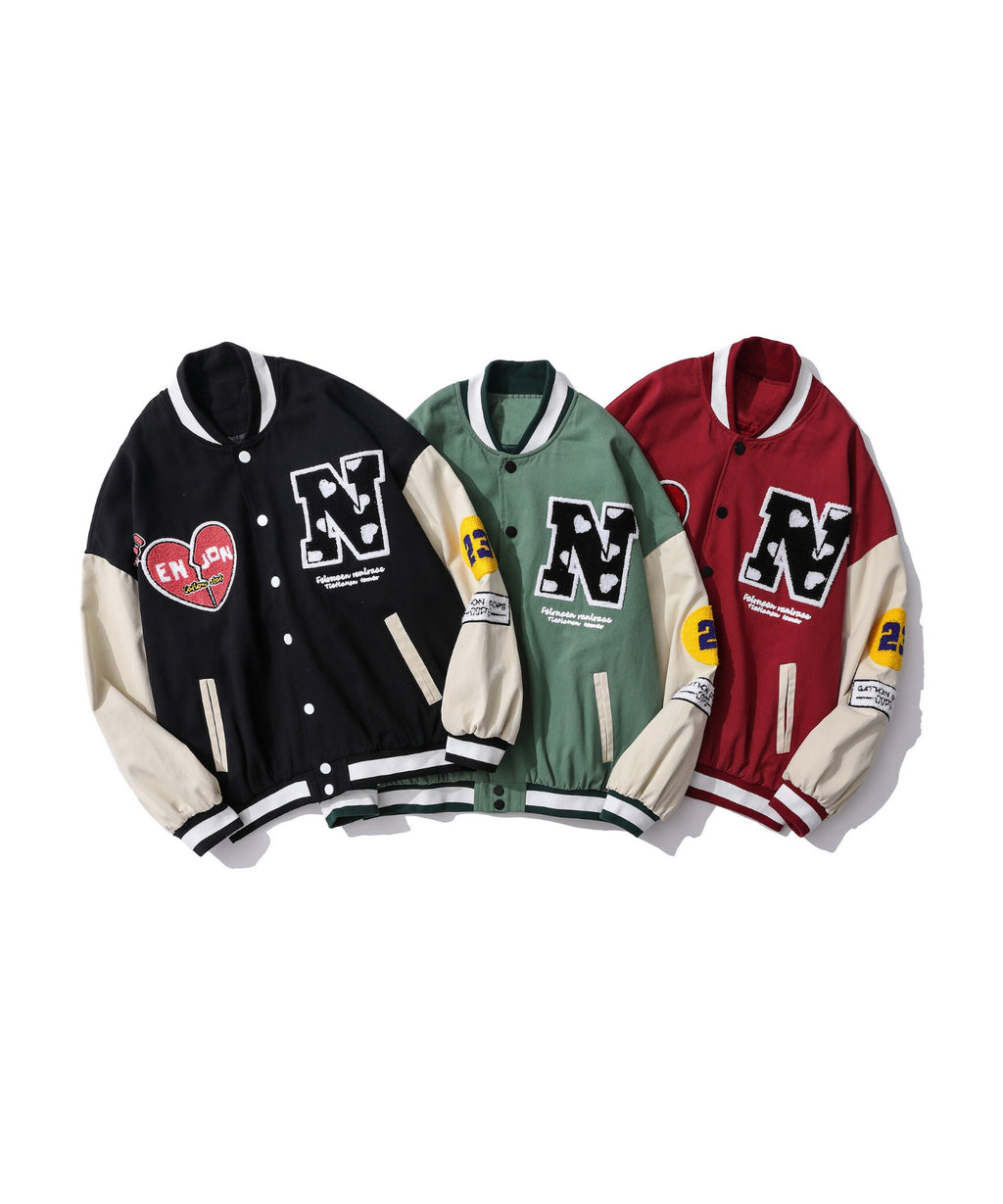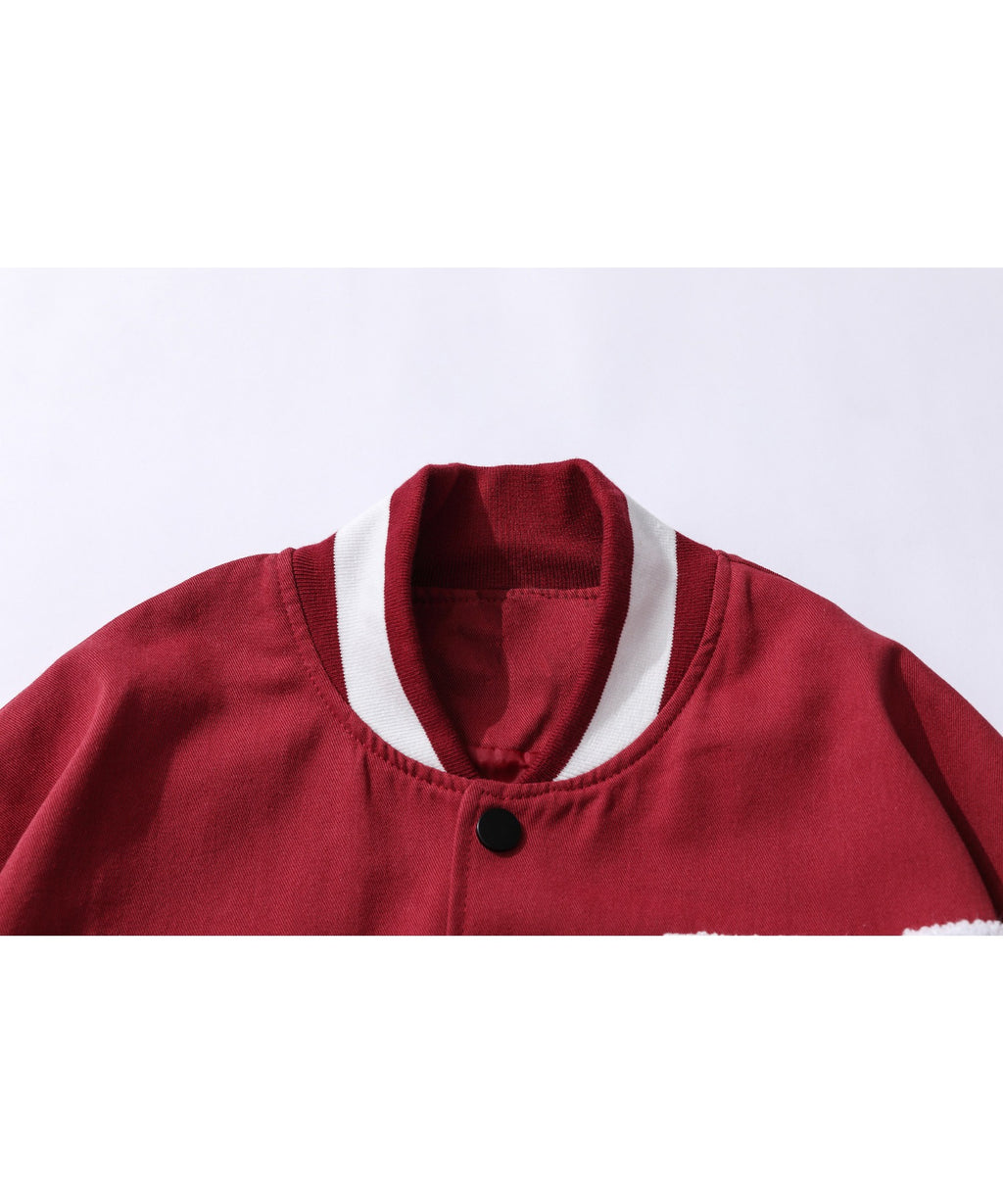 フック HOOK HOOK新作 ユニセックス アメカジ袖配色切り替えドッキングブルゾン ワッペン刺繍入り