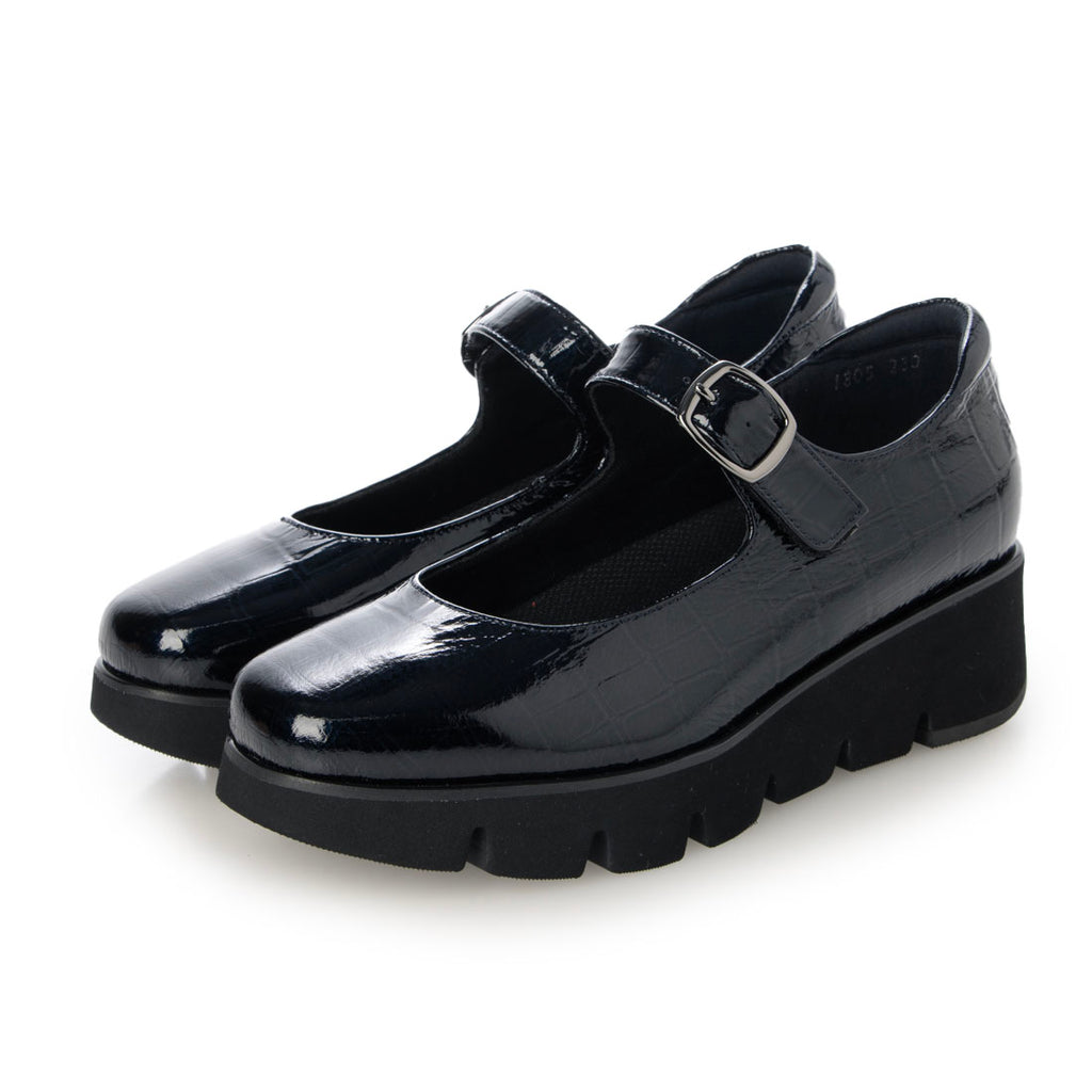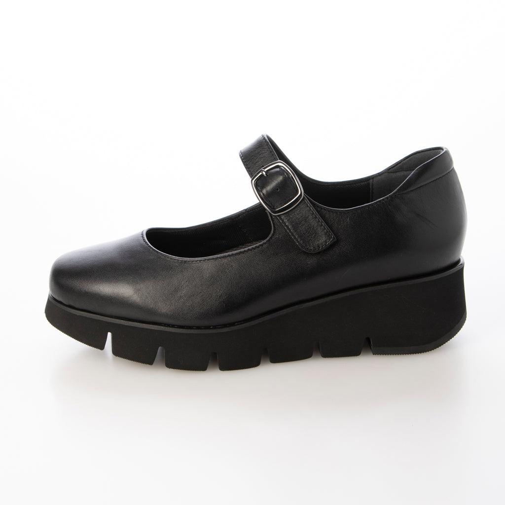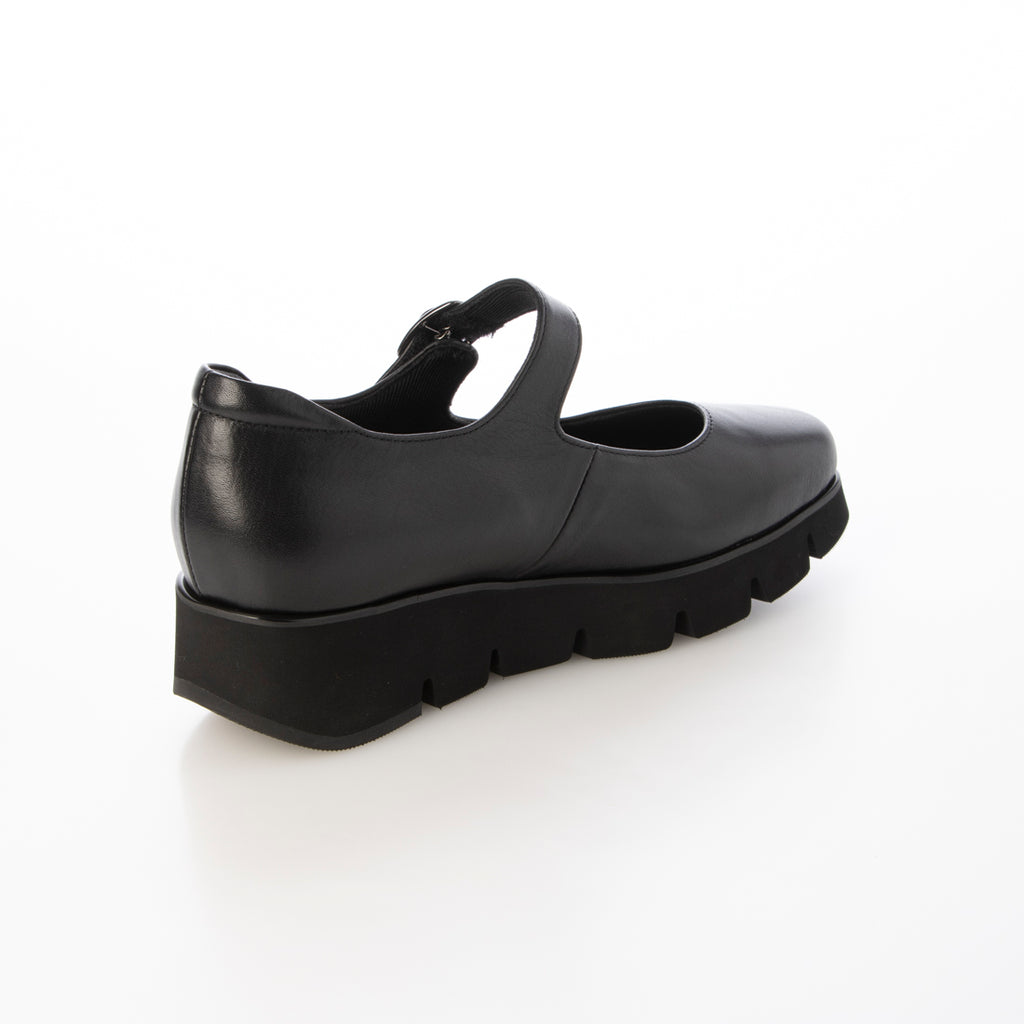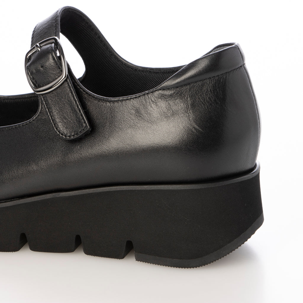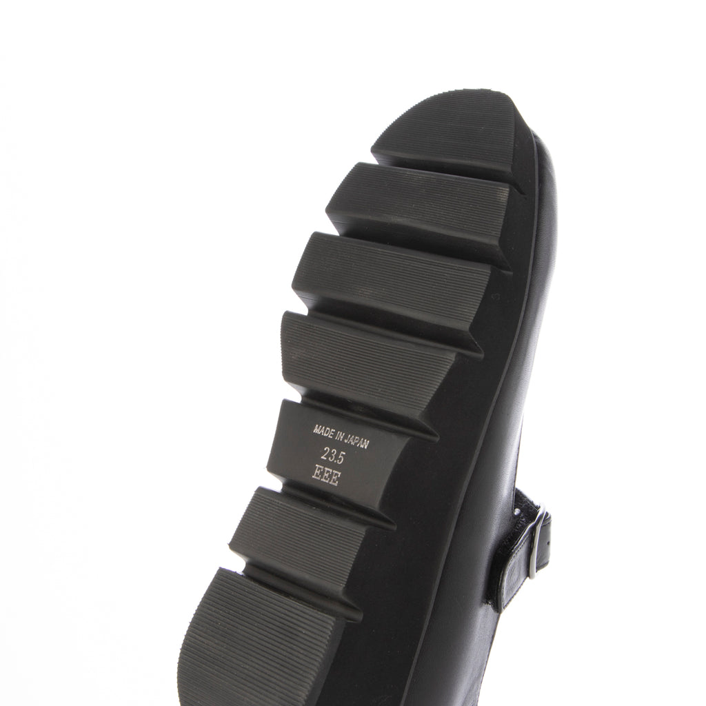 シンプルなストラップシューズですが、溝入りの厚底ソールがモード感を演出してくれます。