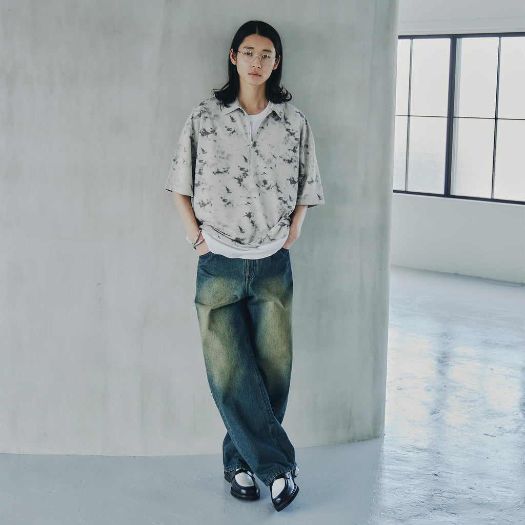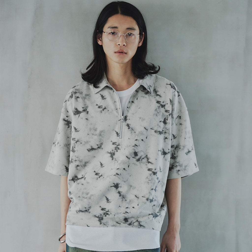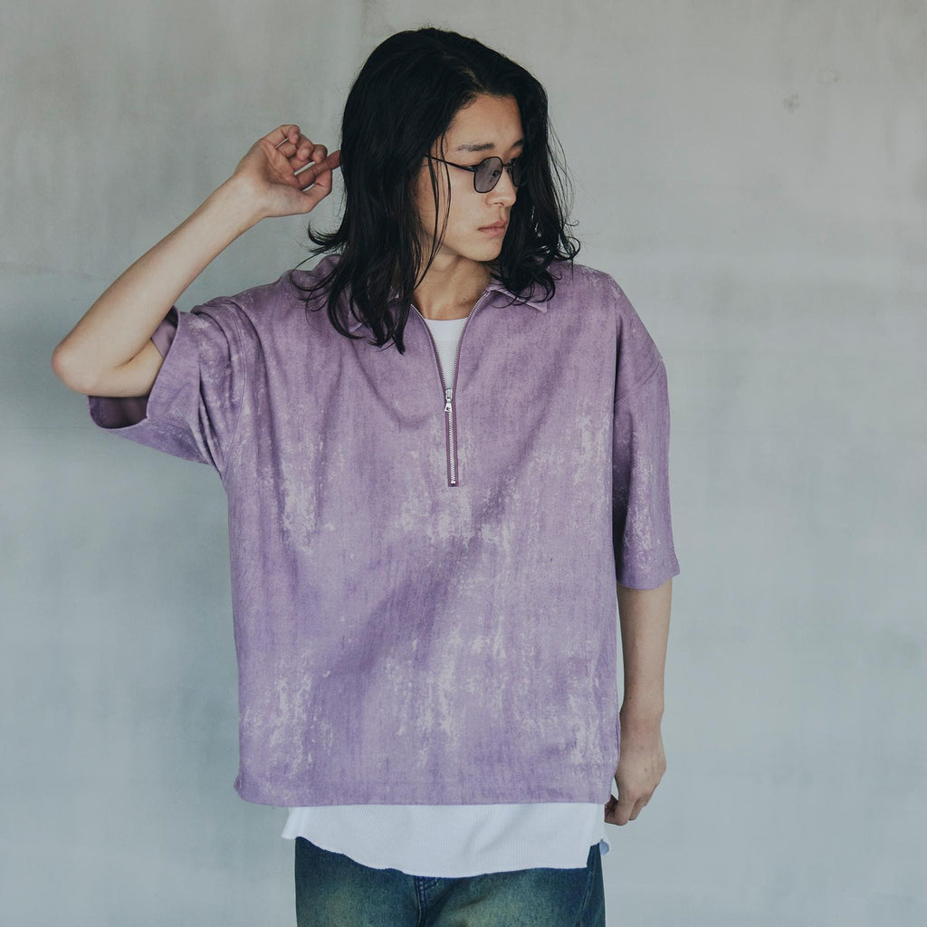 人気のハーフジップのポロシャツにトレンドのヴィンテージ加工を施した今年イチオシのデザインです。
