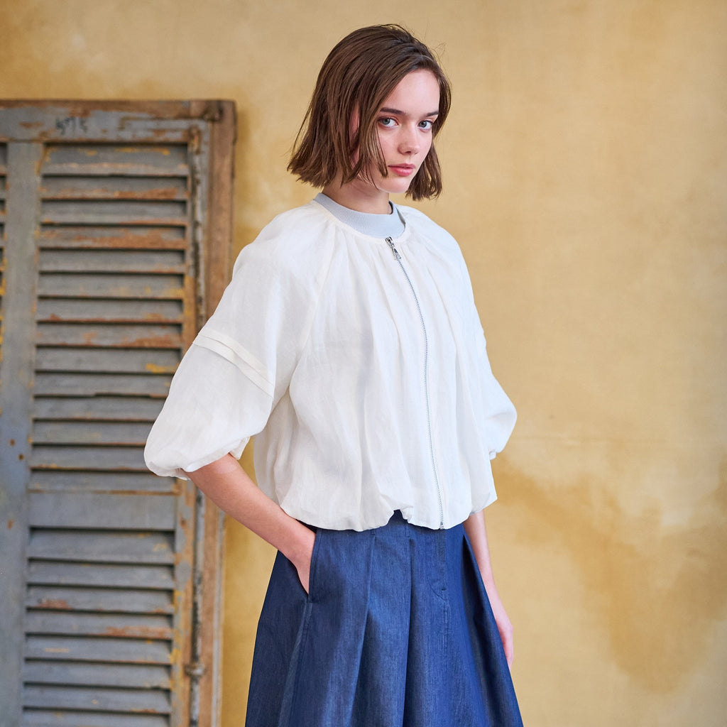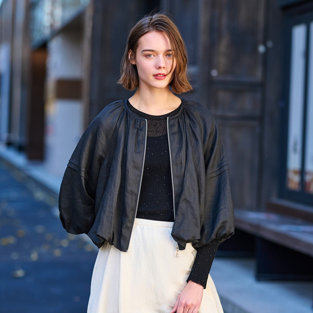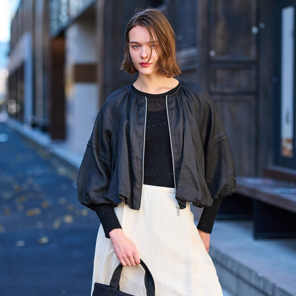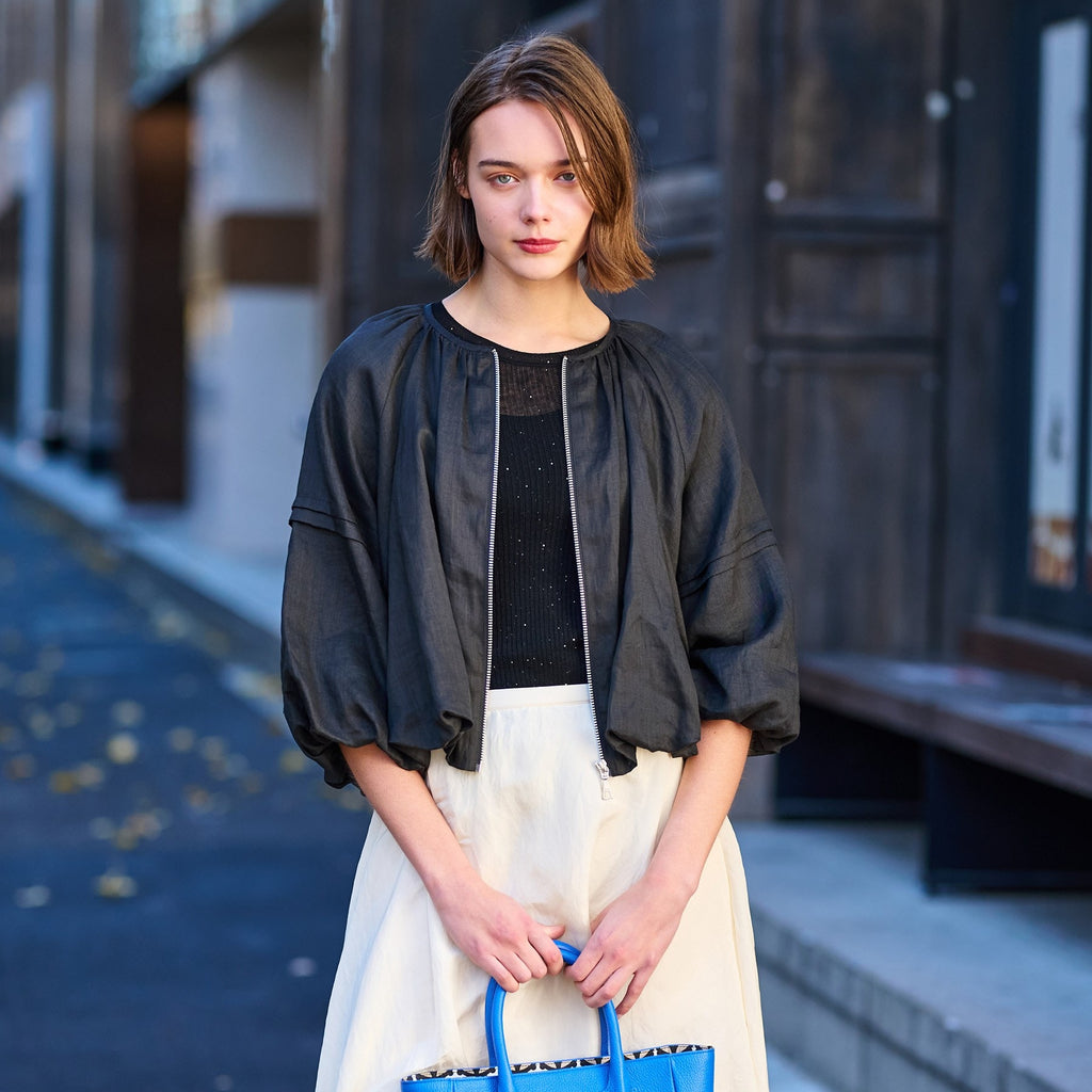 軽やかな素材感とバランスの良いショート丈が魅力のブルゾン。