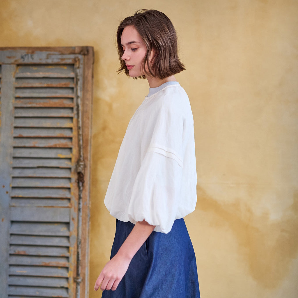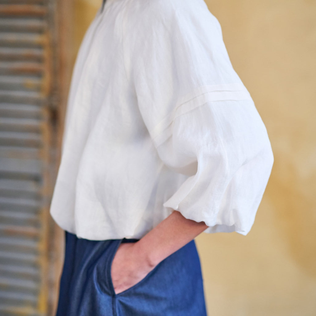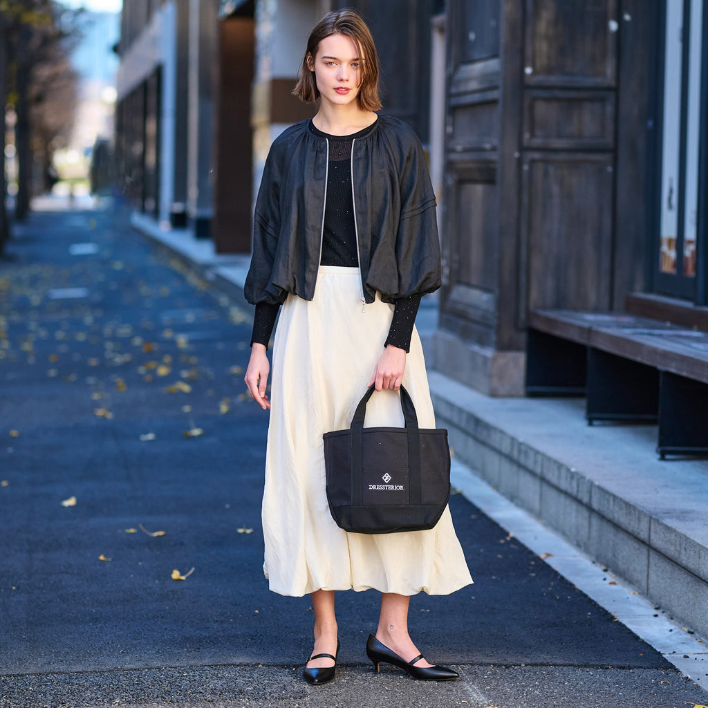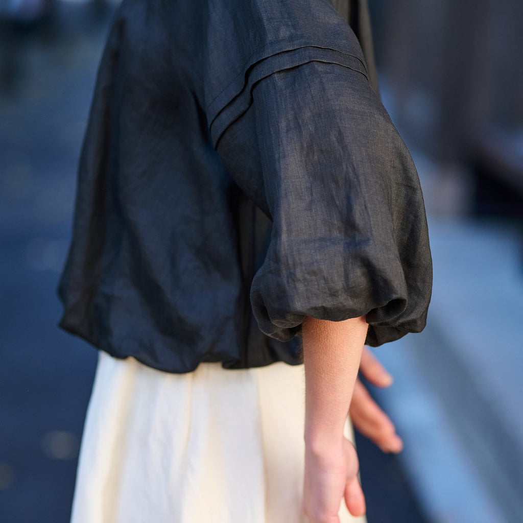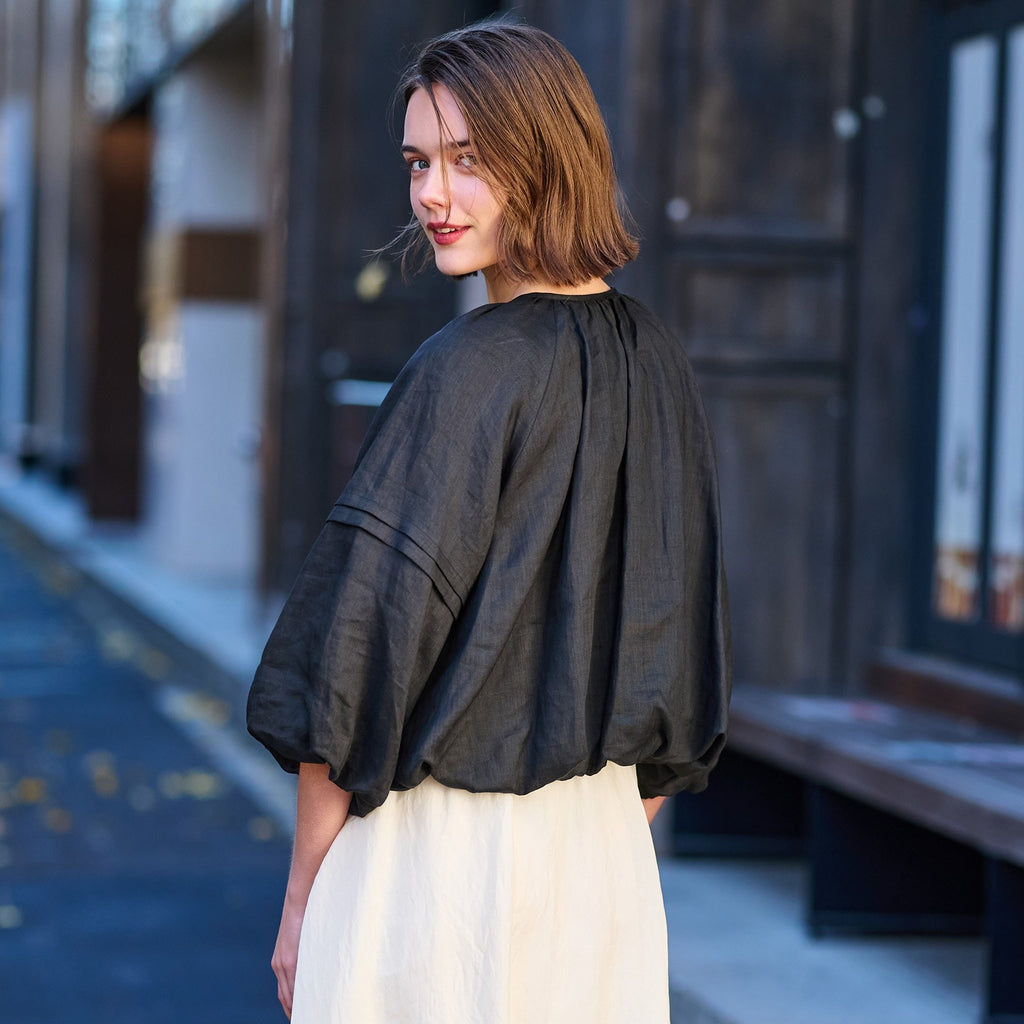 今年らしい袖のタックデザインをプラスすることで、シルエットにアクセントを加え、より旬な印象に仕上げています。
