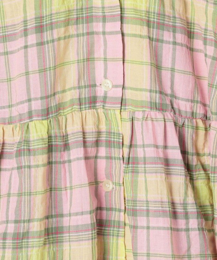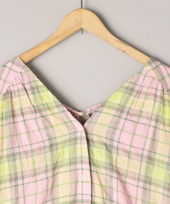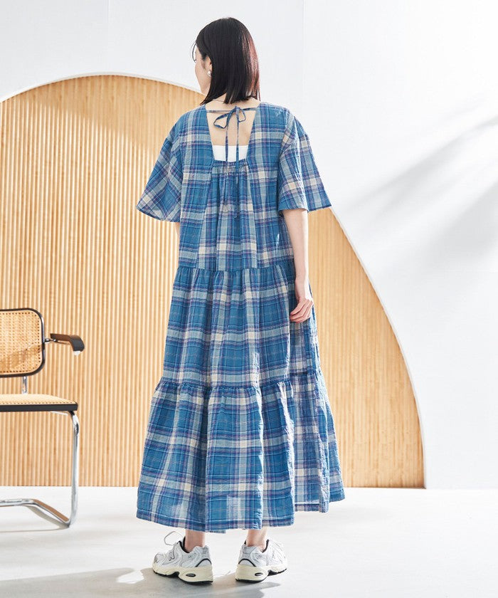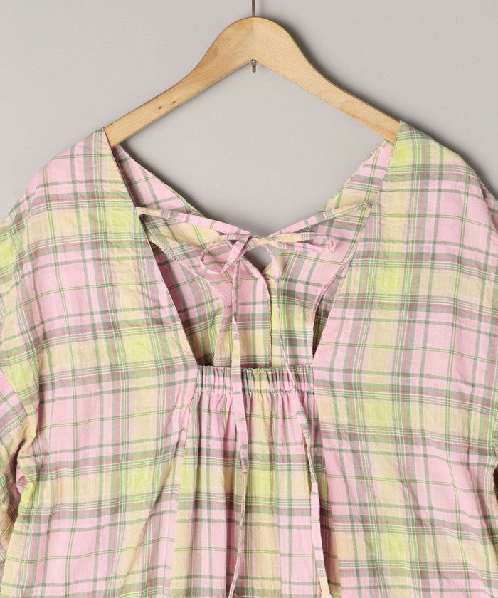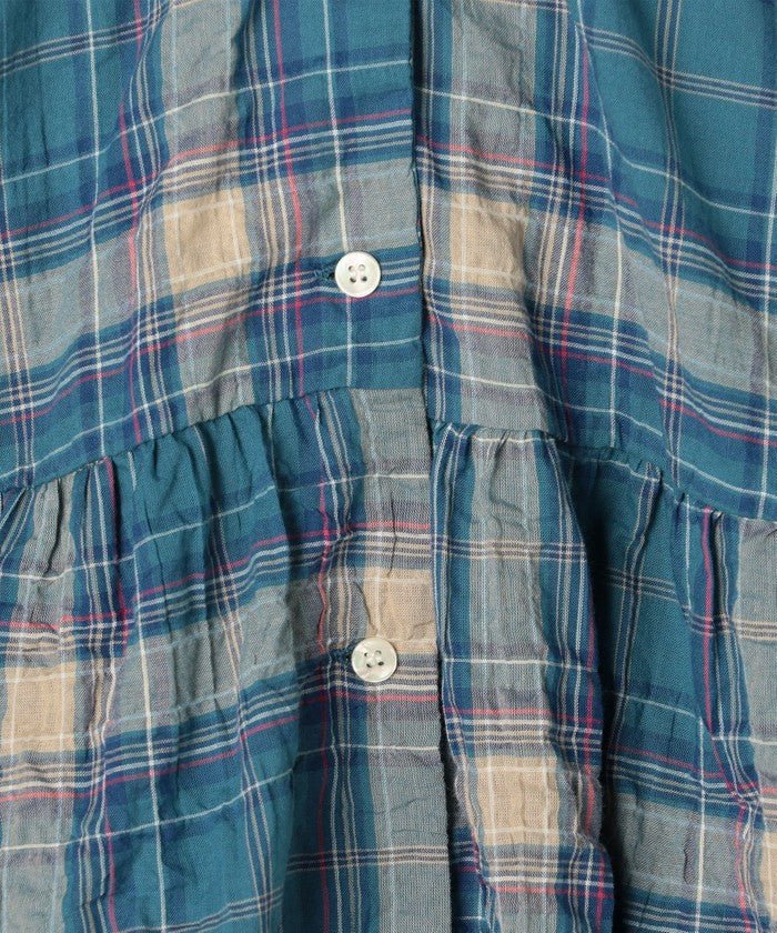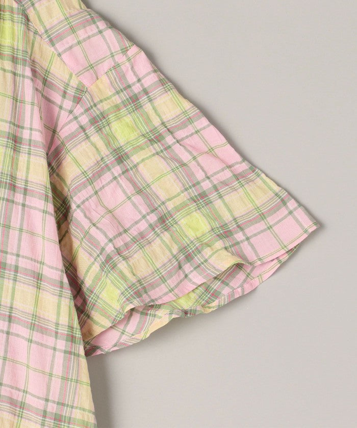 ●さらっとした肌触りと清涼感が魅力のシャーリングチェックを使用したフレアスリーブワンピース