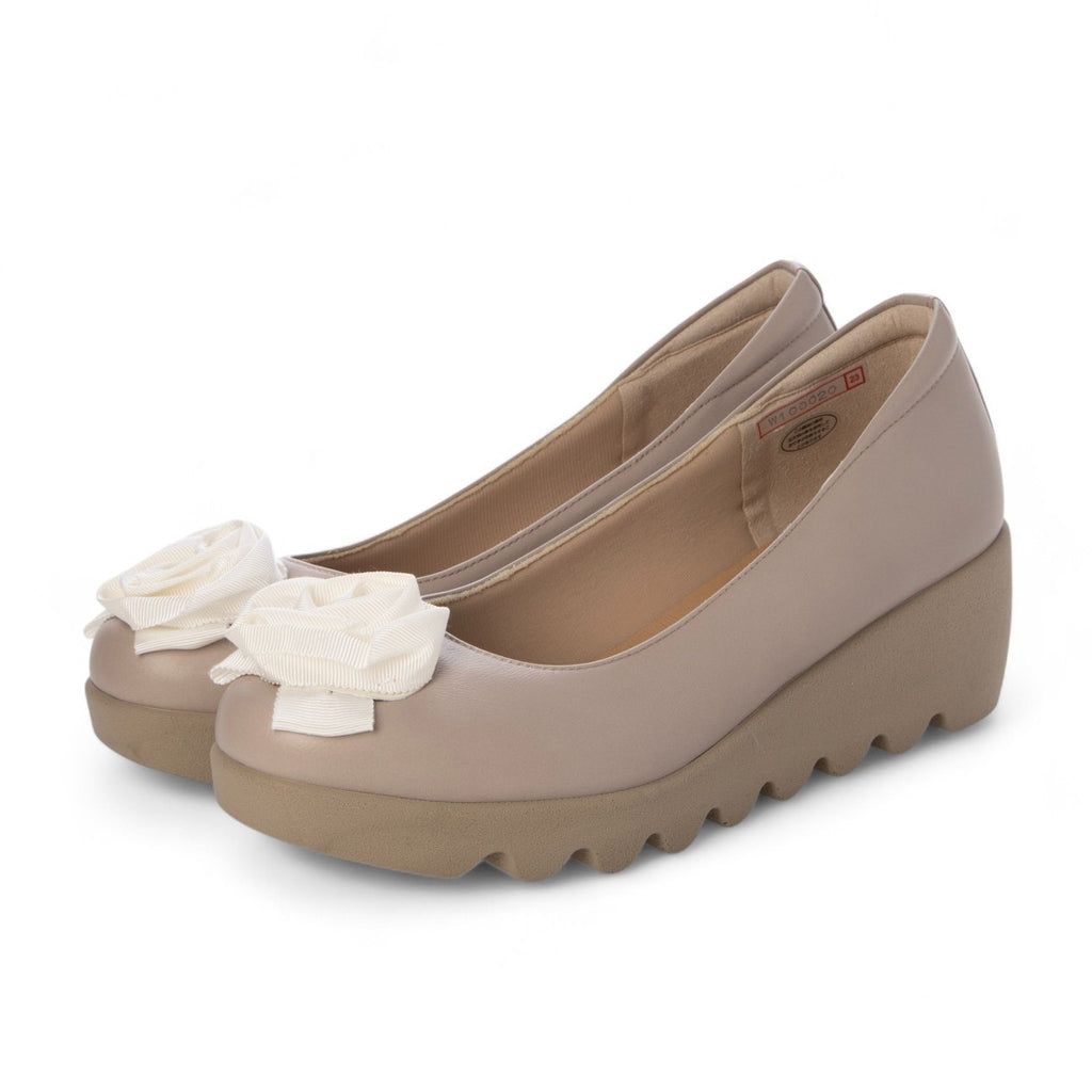 柔らかなラムレザーのパンプスに、グログランリボンのローズを咲かせました。