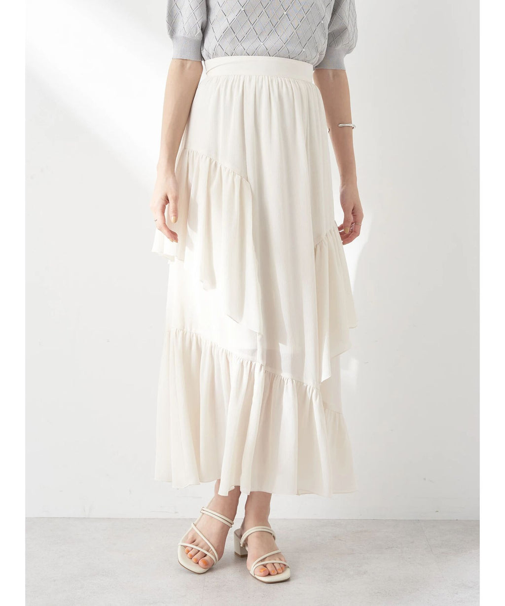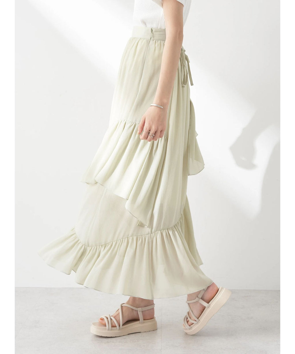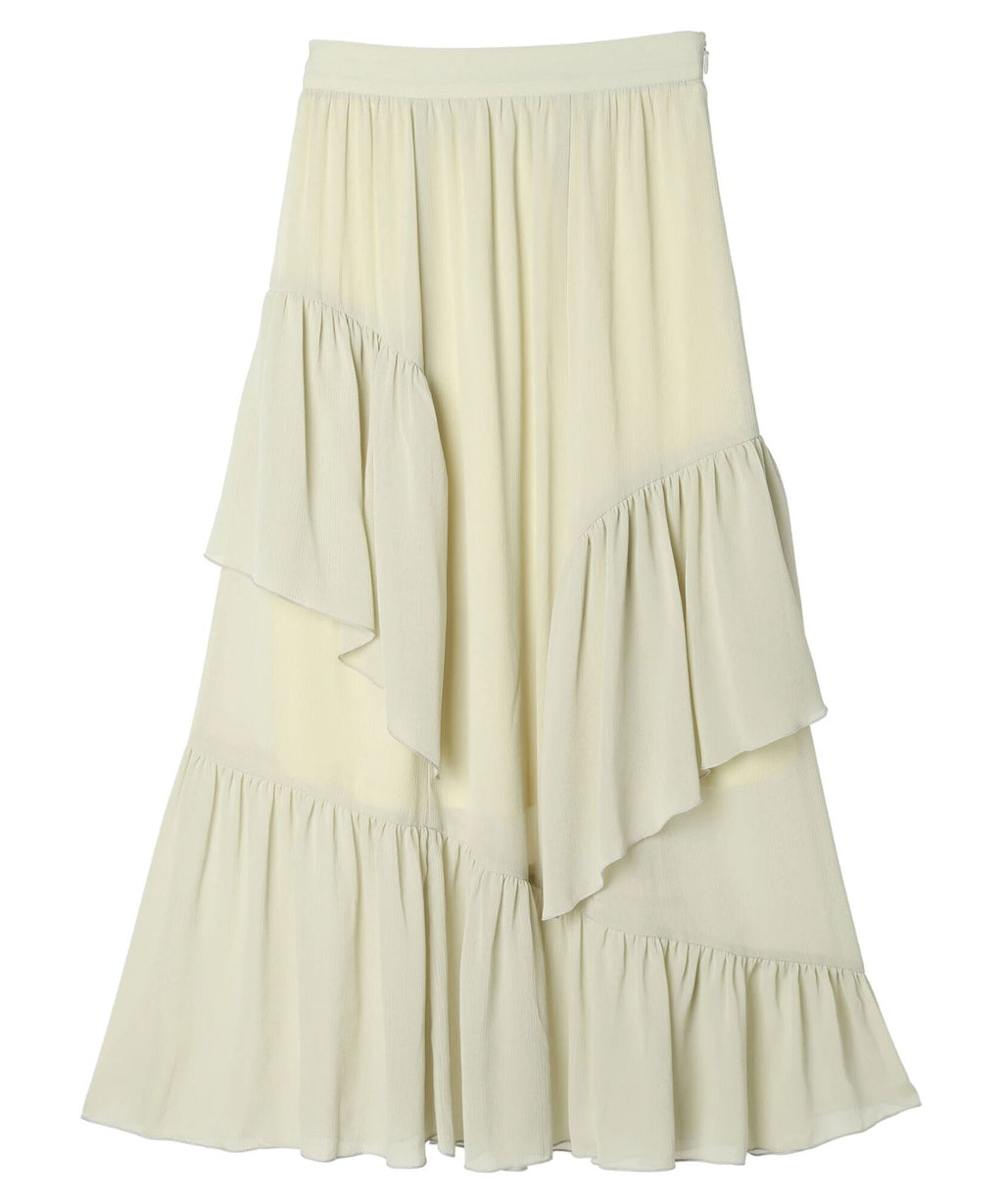 アシンメトリーなティアードフリルが華やかな存在感を放つスカート。