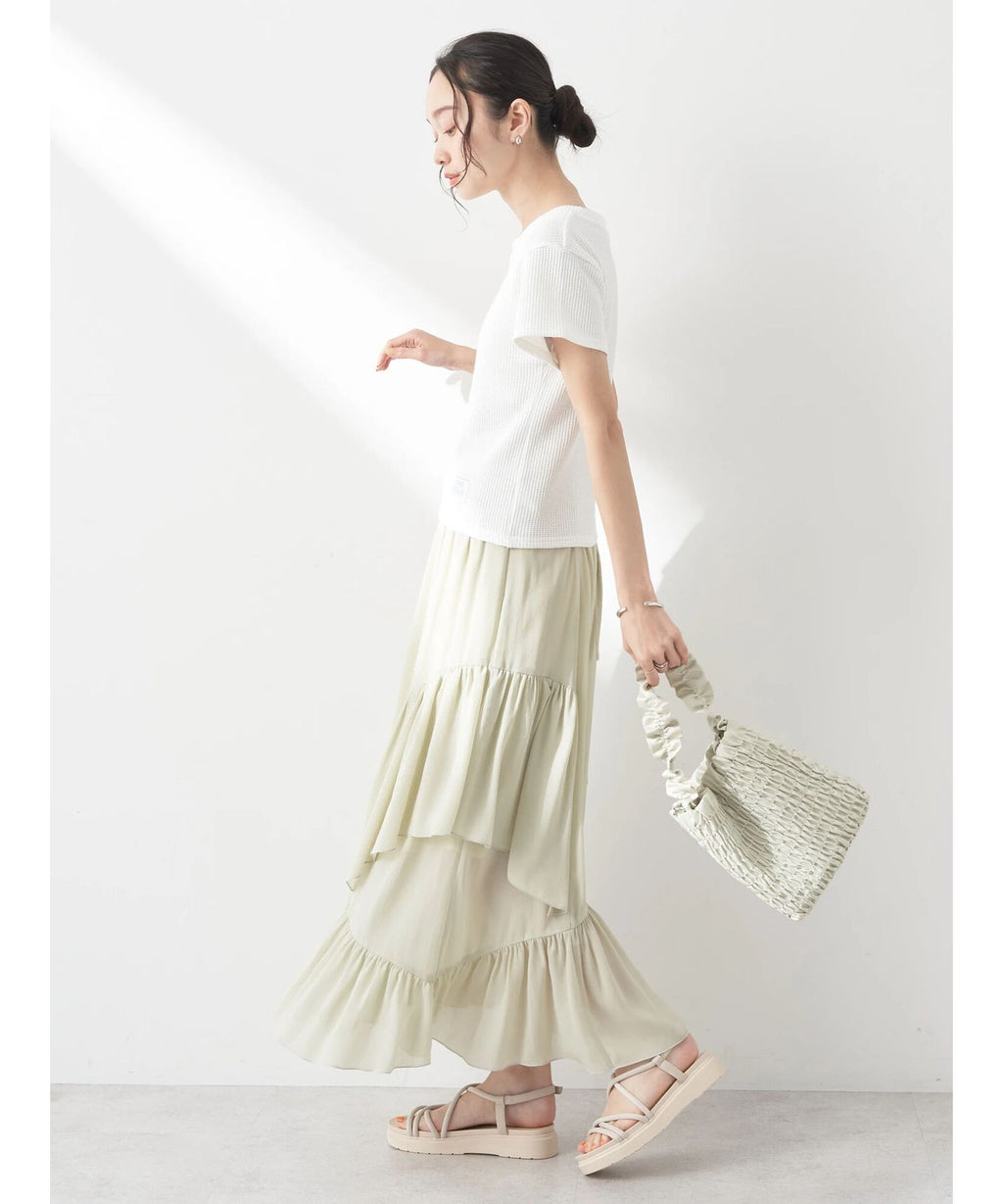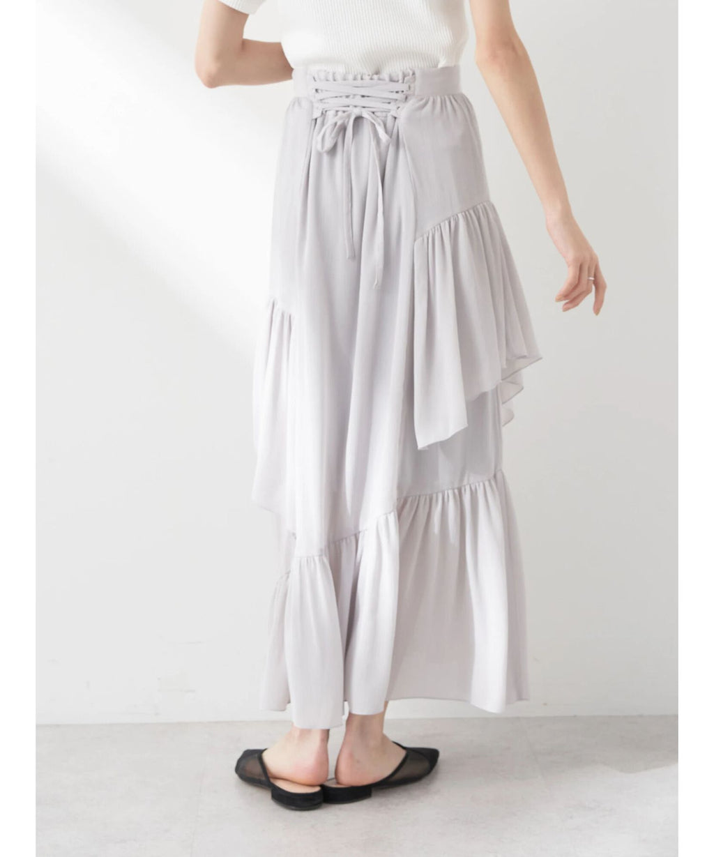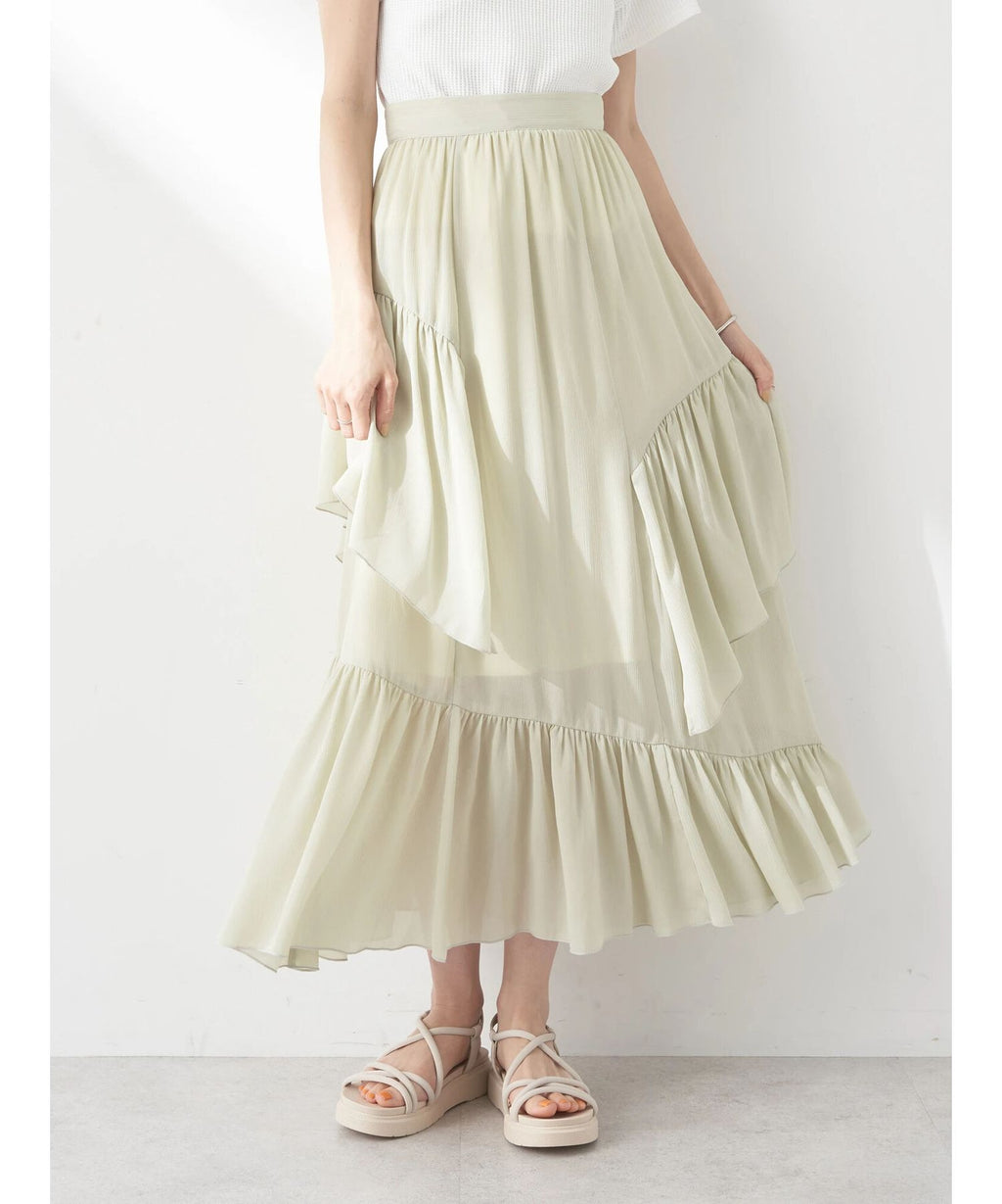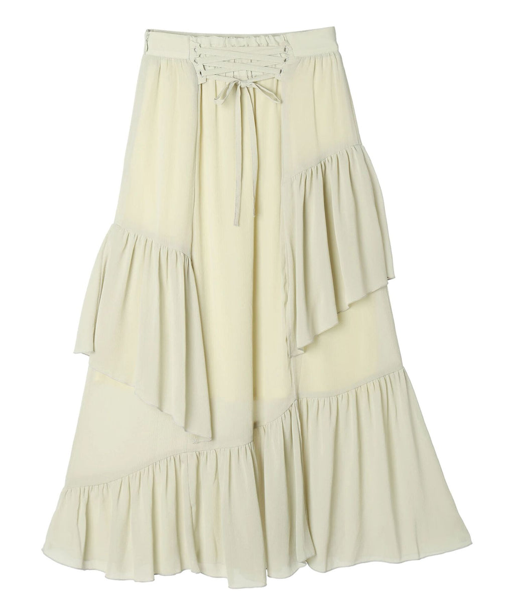 アシンメトリーなティアードフリルが華やかな存在感を放つスカート。