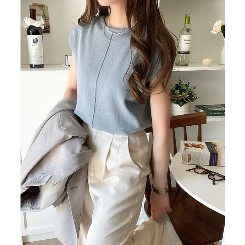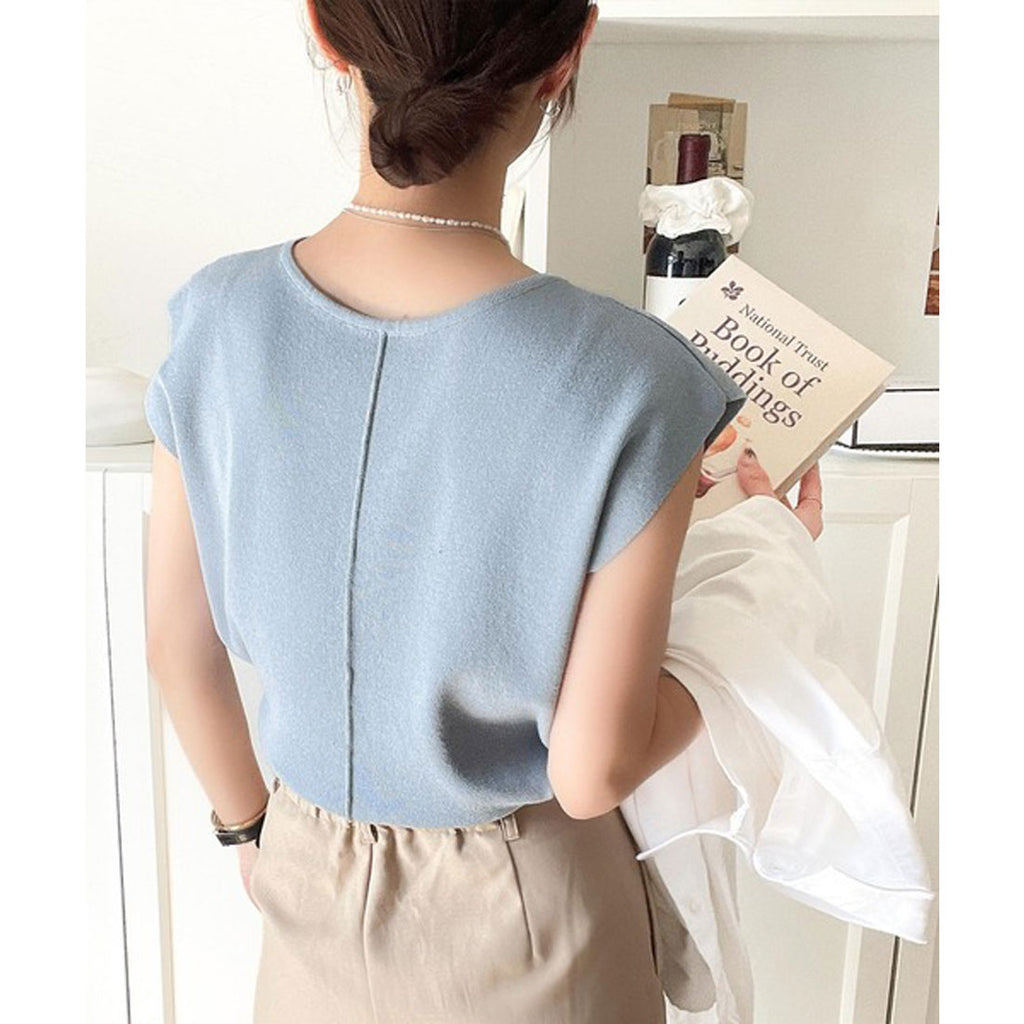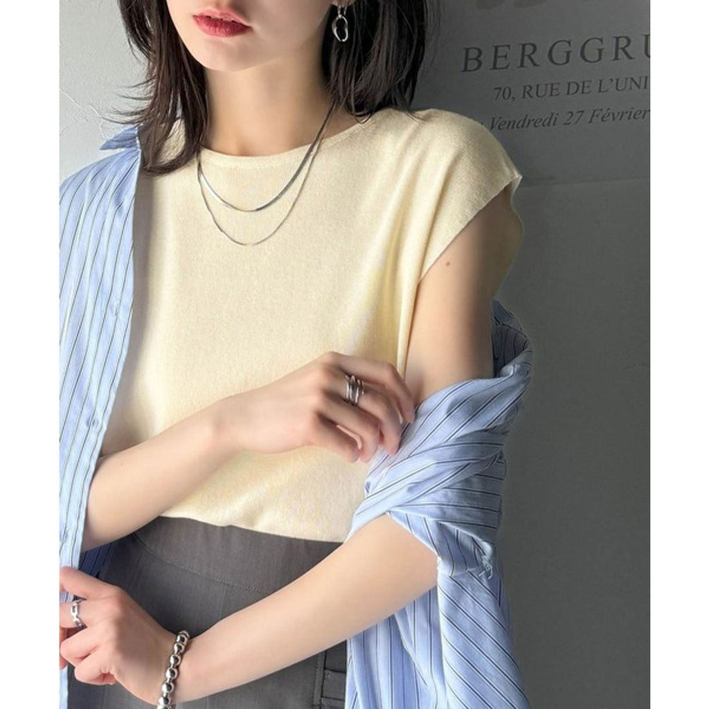 大人っぽいきちんと感のあるフレンチスリーブのサマーニット。