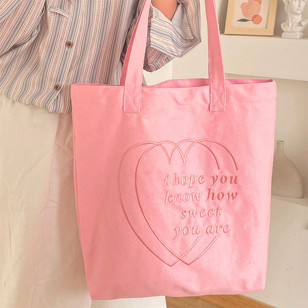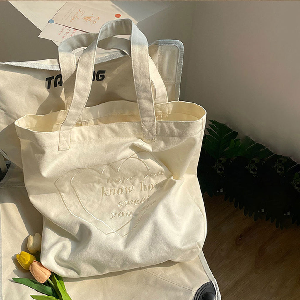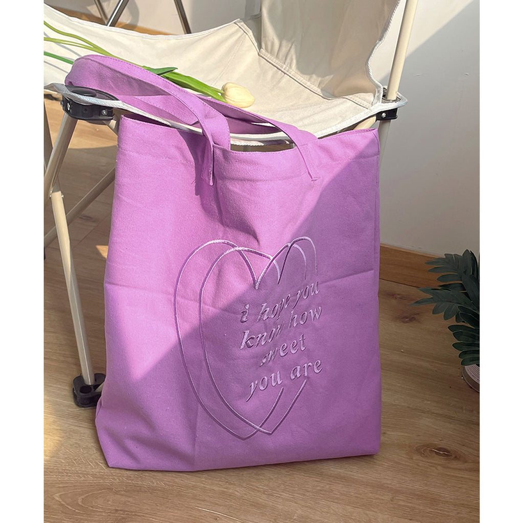 ハートと英字の刺繍がおしゃれなキャンバストートバッグ