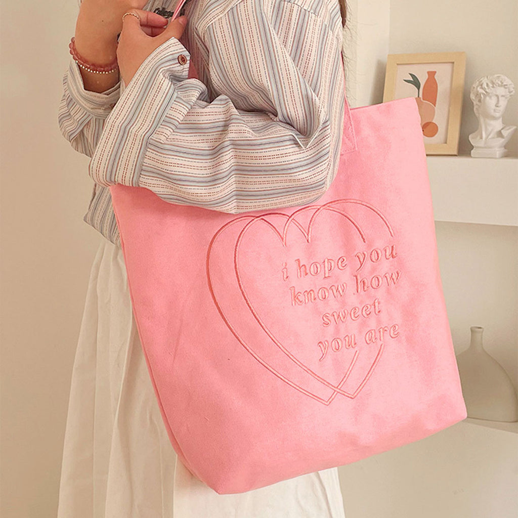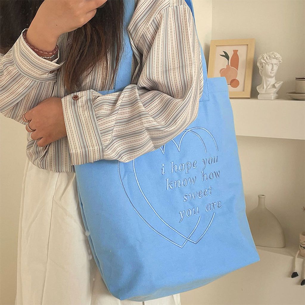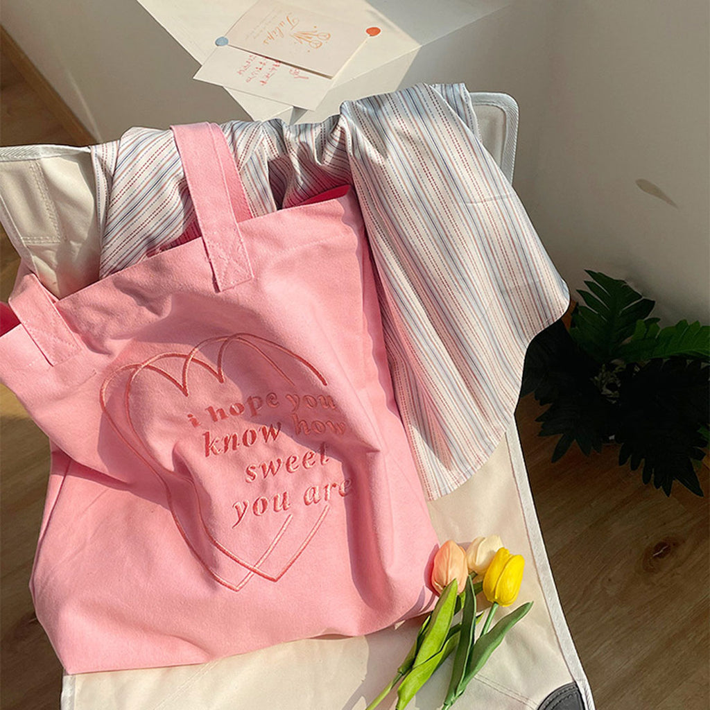 ハートと英字の刺繍がおしゃれなキャンバストートバッグ