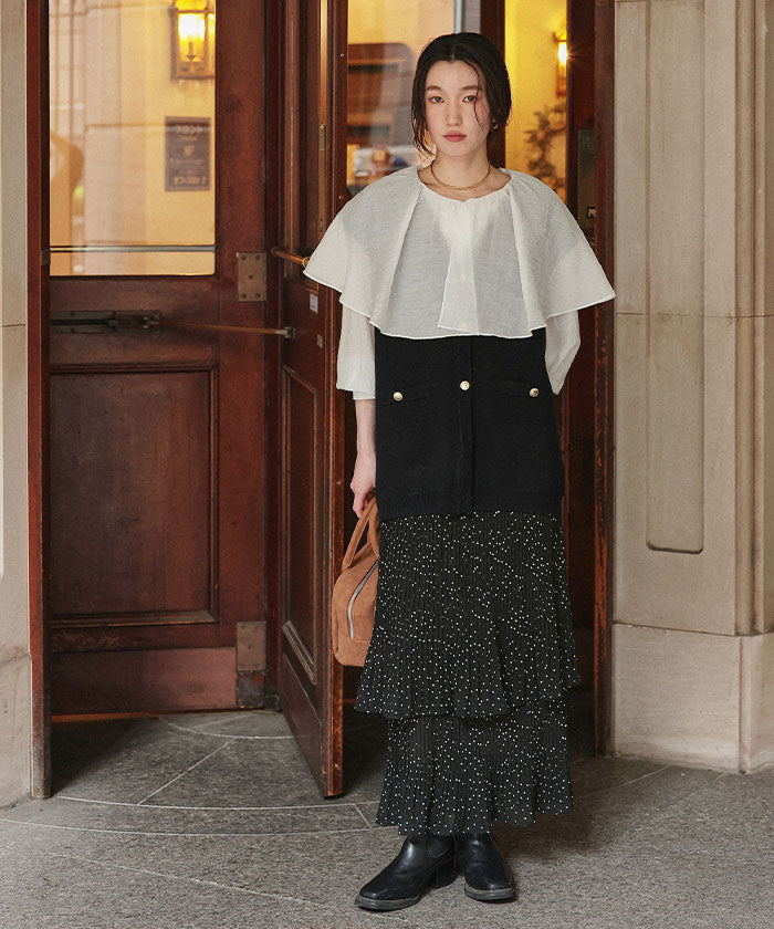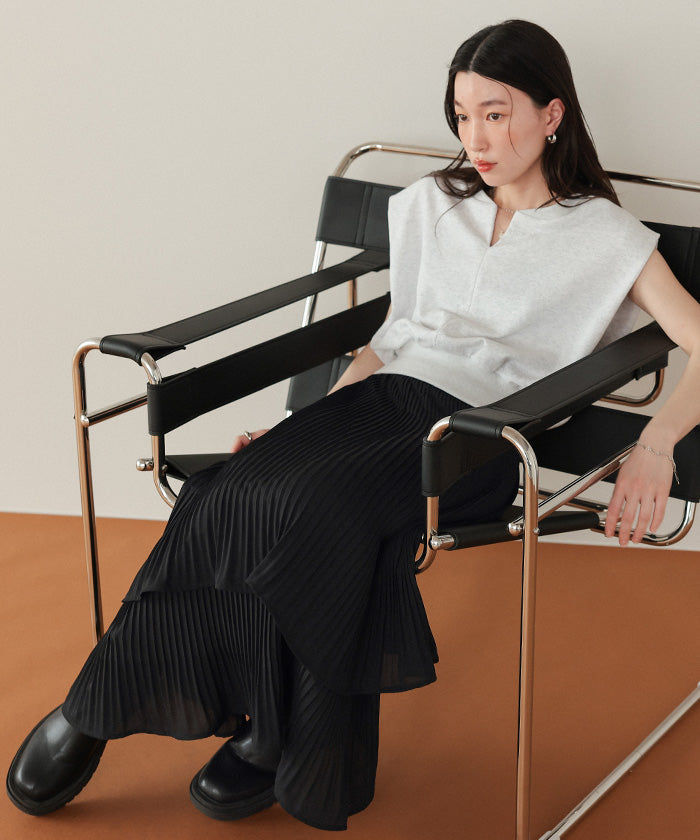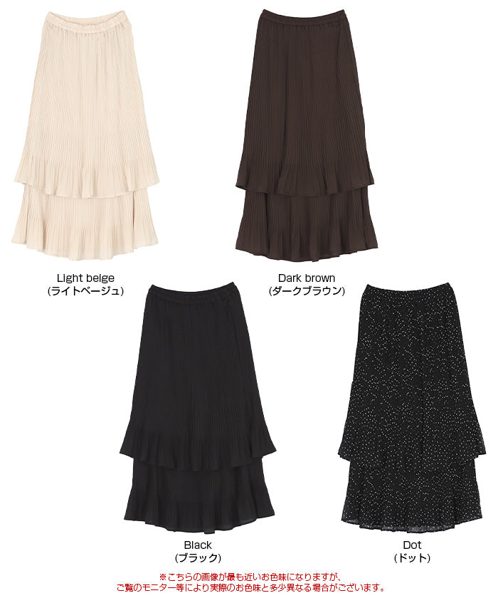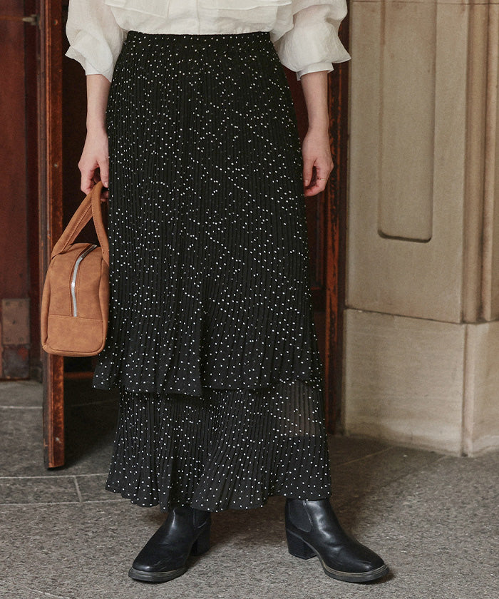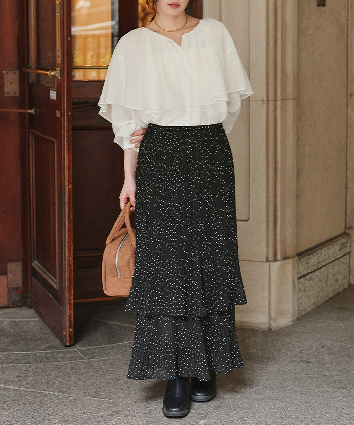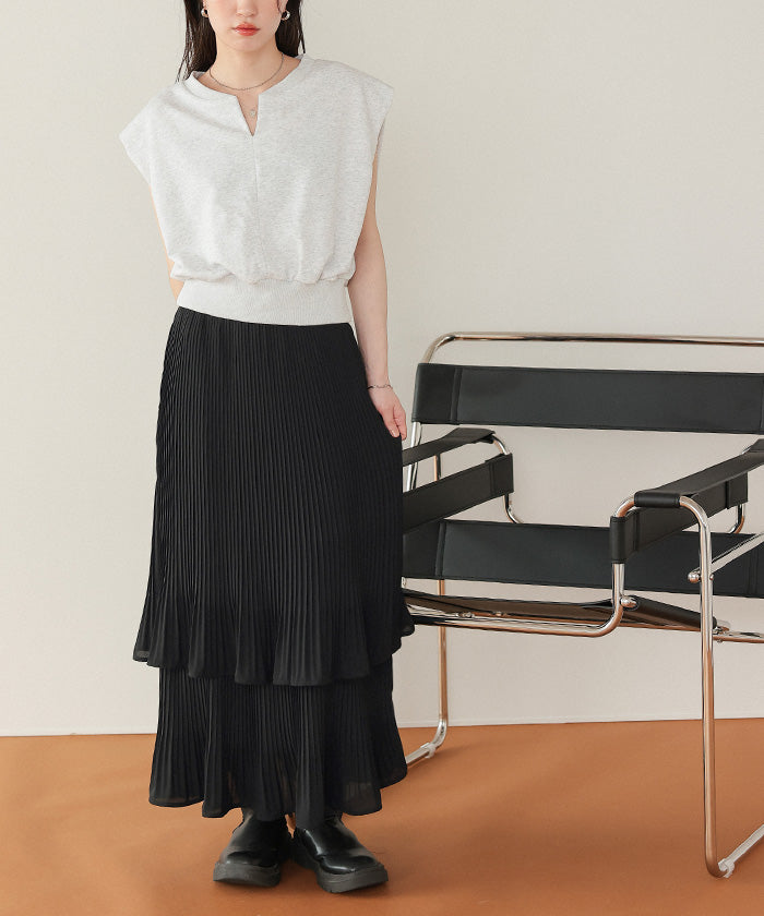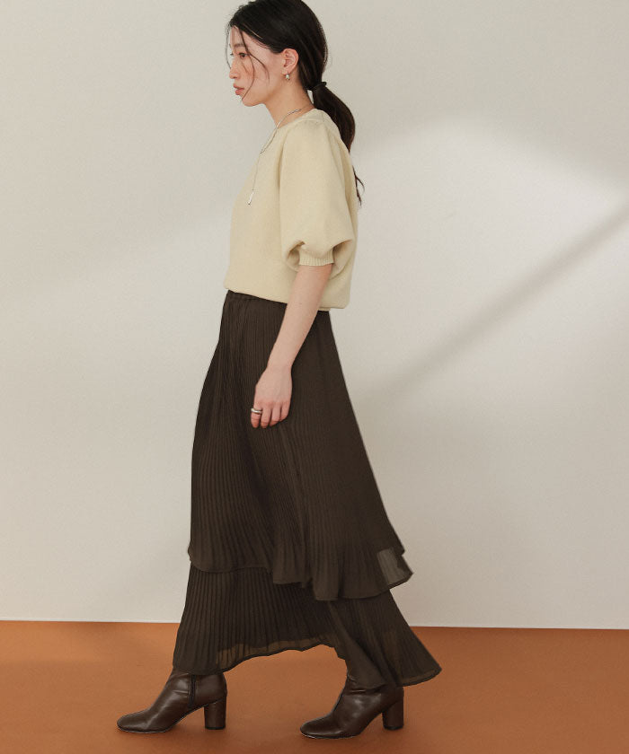 ・プリーツ素材が2つに重なった動きのあるティアードスカート