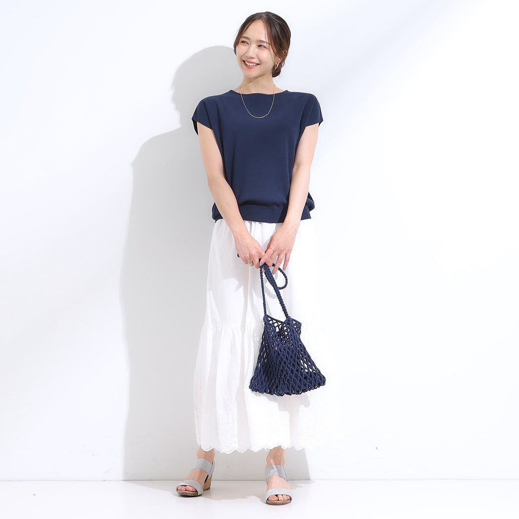 シンプルなフレンチスリーブも女性らしく、スッキリ着こなせます。