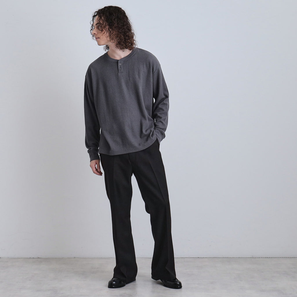 リラックス感のあるヘンリーネックデザイン。