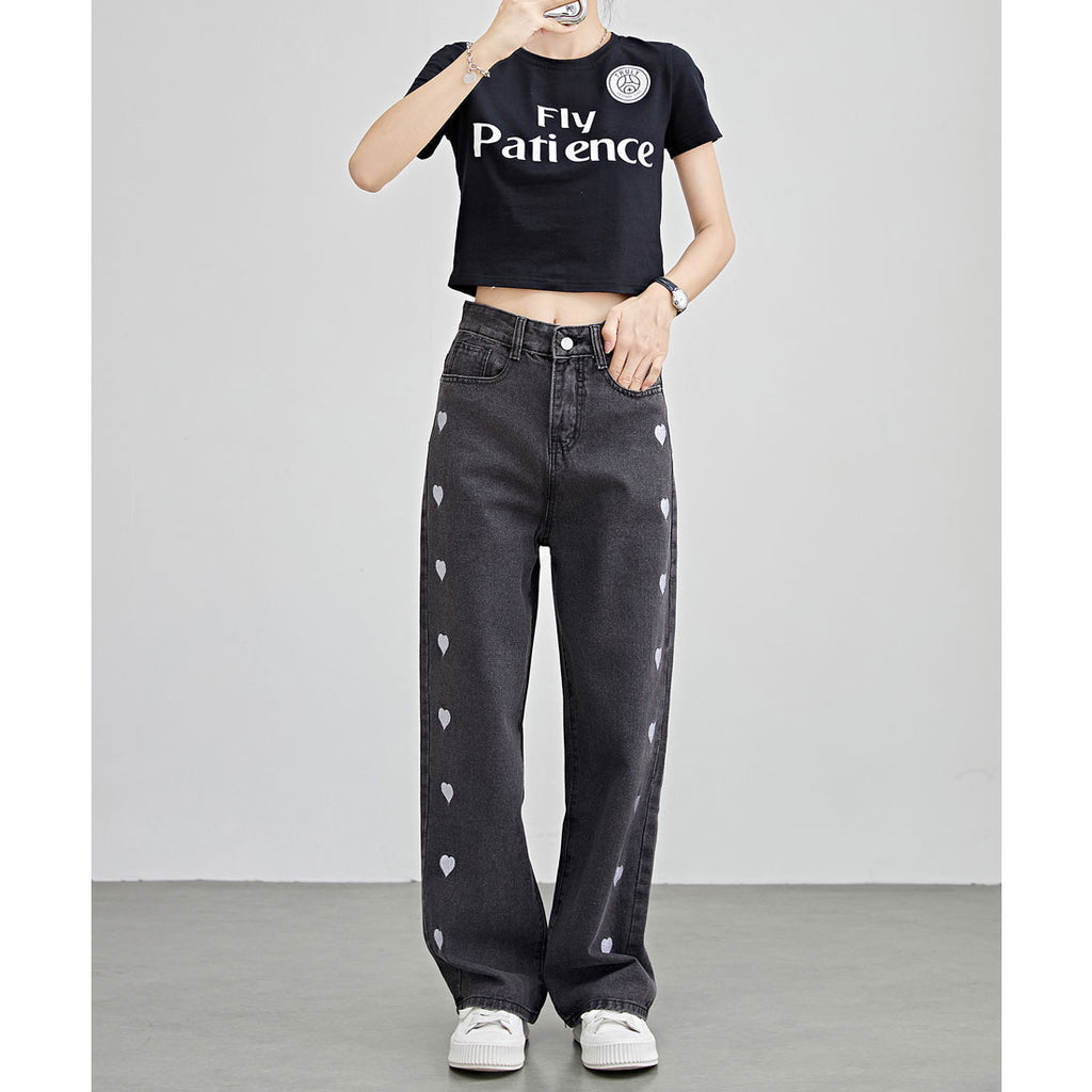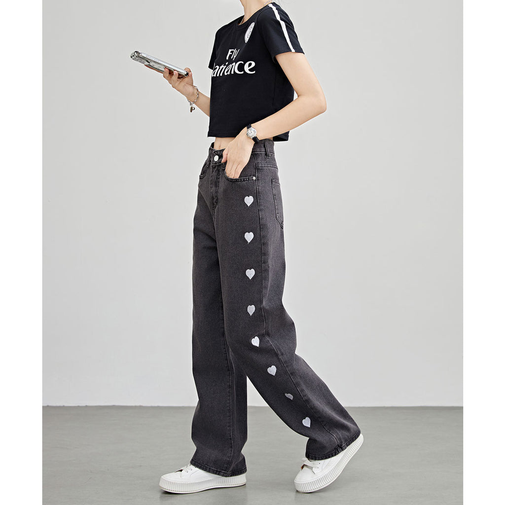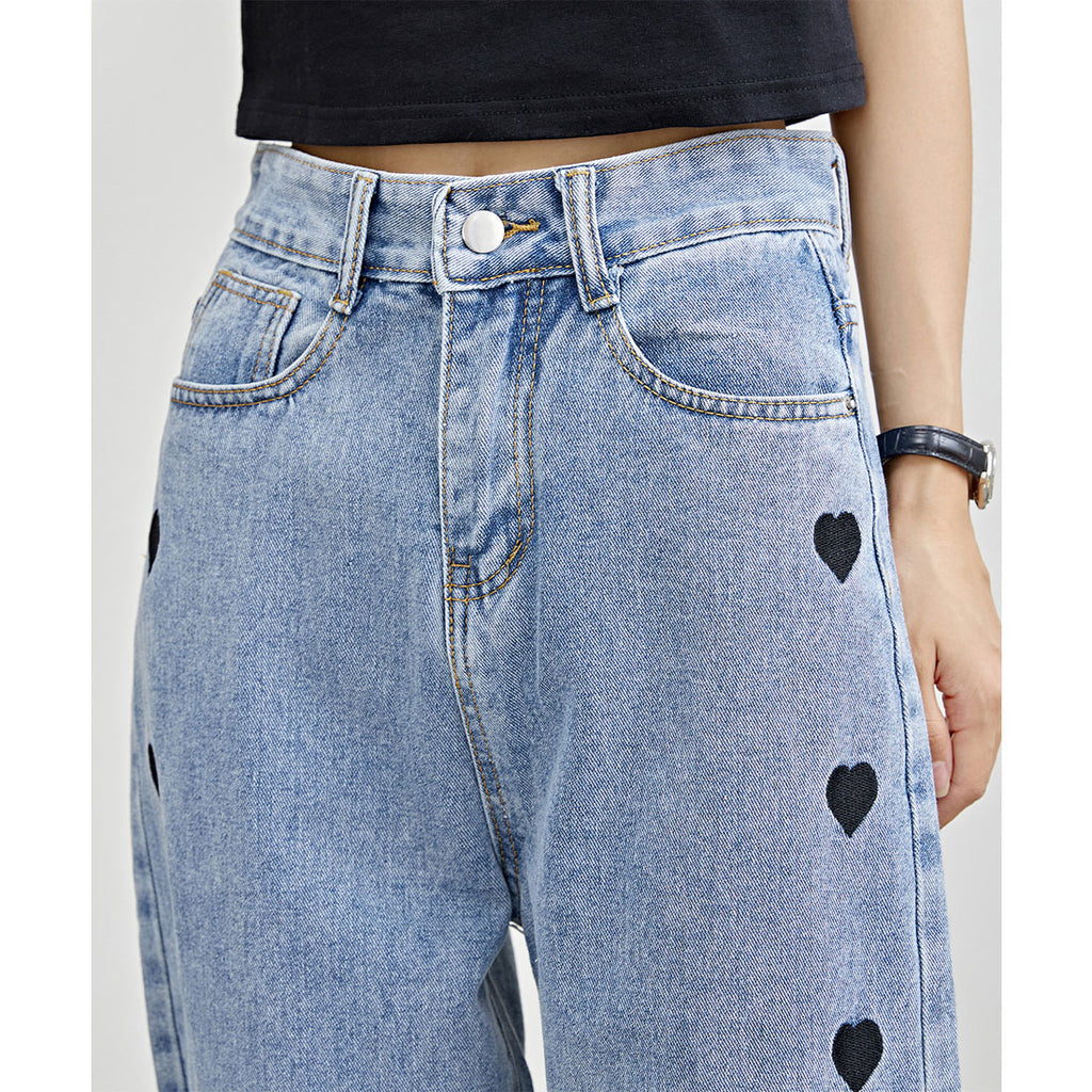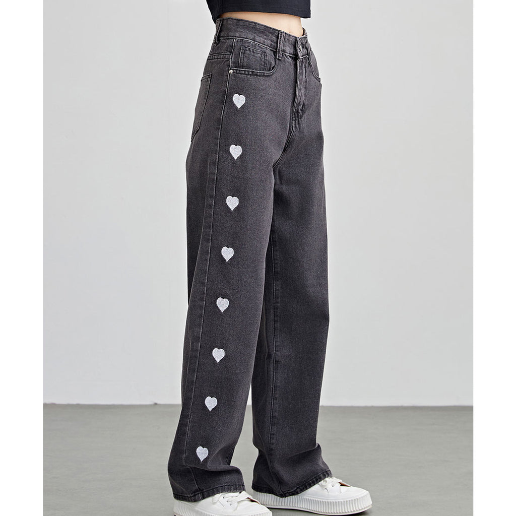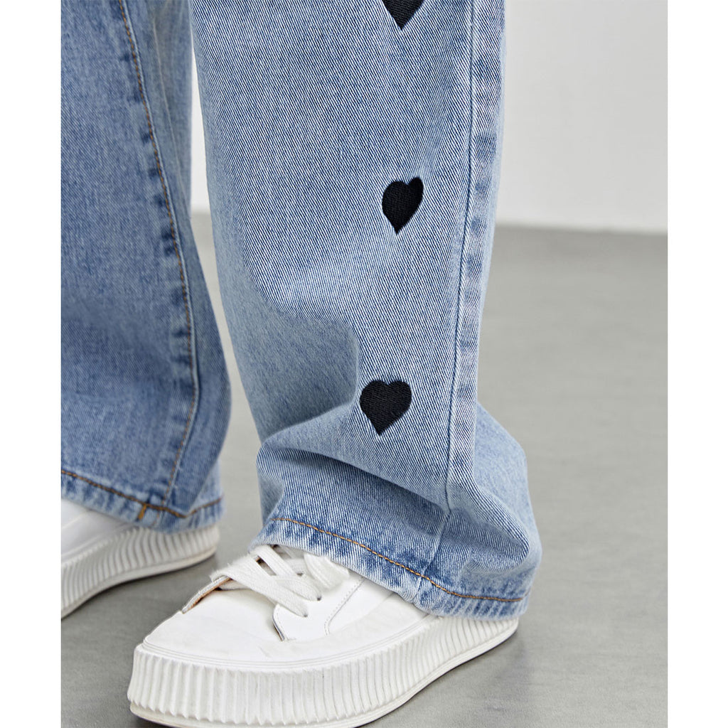 両サイドにキュートなハート柄刺繍をほどこし、個性的でガーリーな1着に仕上げました。