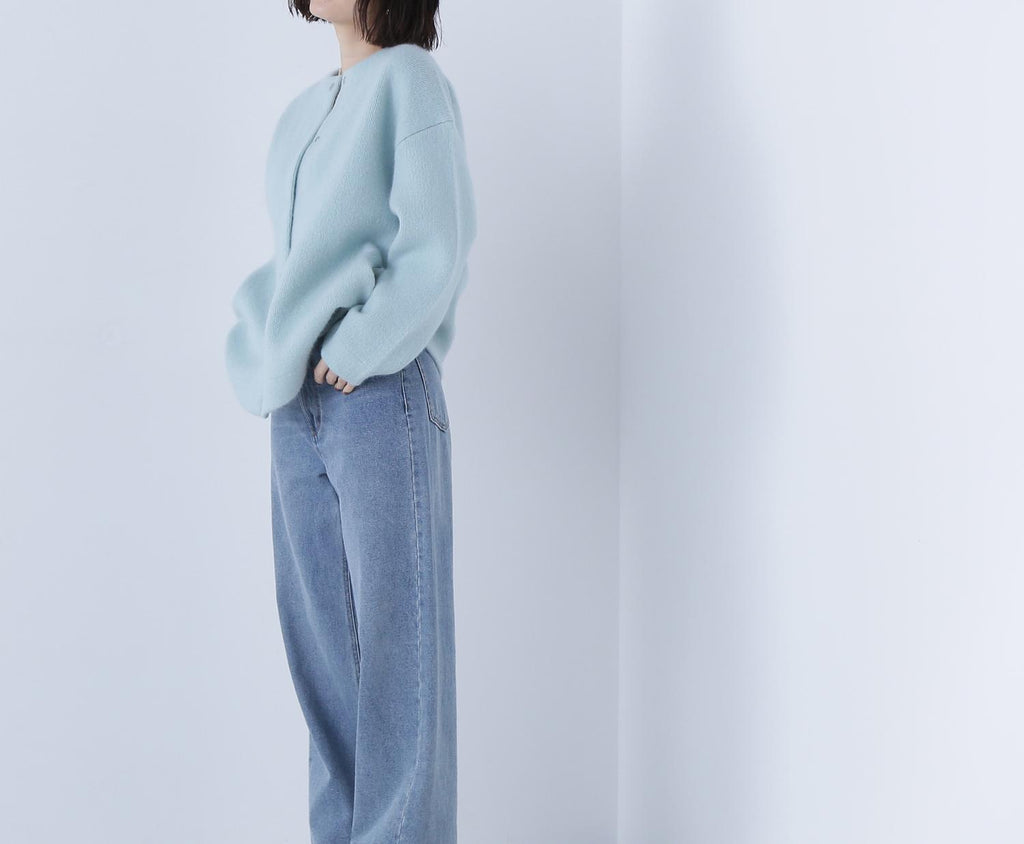 NBB毎年人気のFOX接結コーディガンを今年らしくアップデート!袖をやや太くすることで、中に着るアイテムの幅を広げたデザインです。羽織りやすいゆとりのあるサイズ感はそのままに、前立てはアクセントになるシルバーカラーのドットボタンを合わせたり、グログランテープも付けてポイントをプラス。柔らかく軽い風合いなので、季節の変わり目に一枚あると便利なアイテムです。