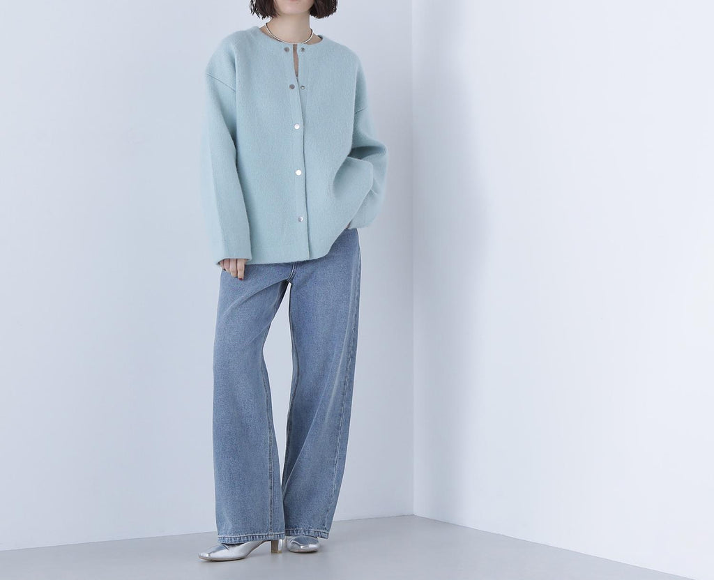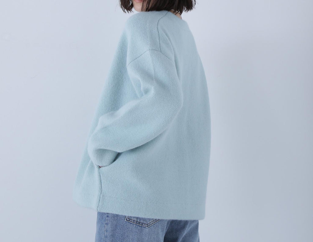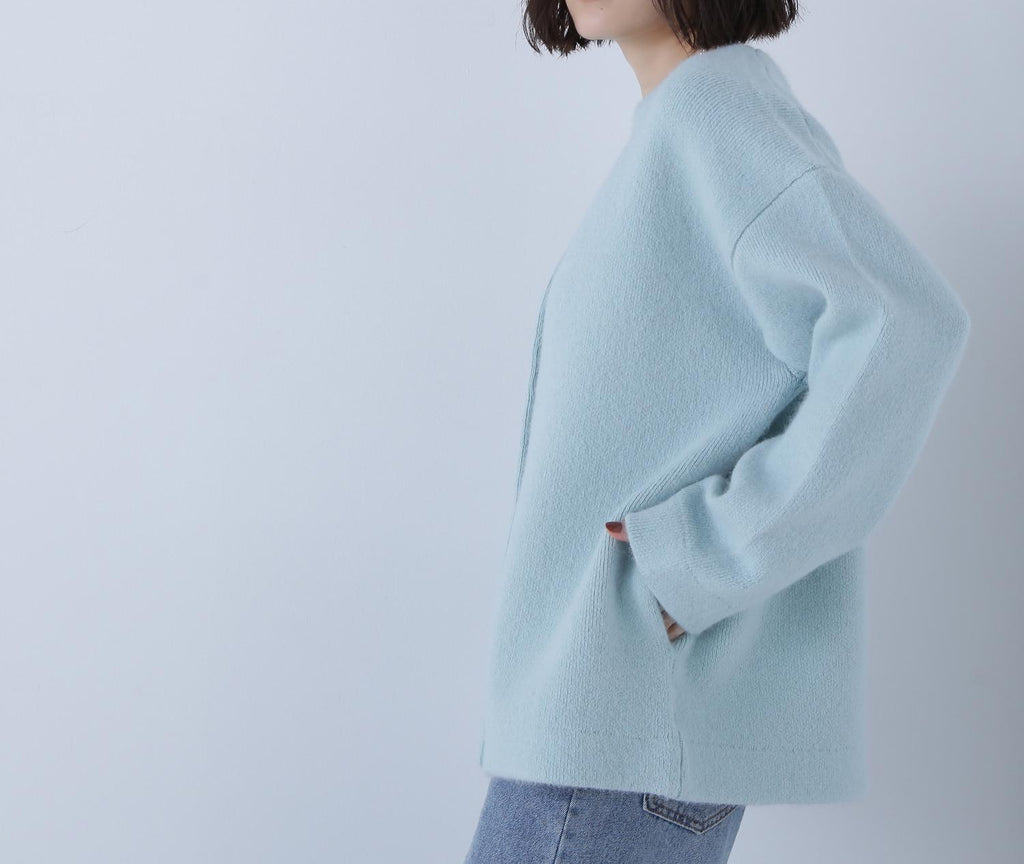 FOXを含んだ糸を使用し、ふわっとした暖かみのある素材感。接結編みでふくらみとやわらさが特徴です。