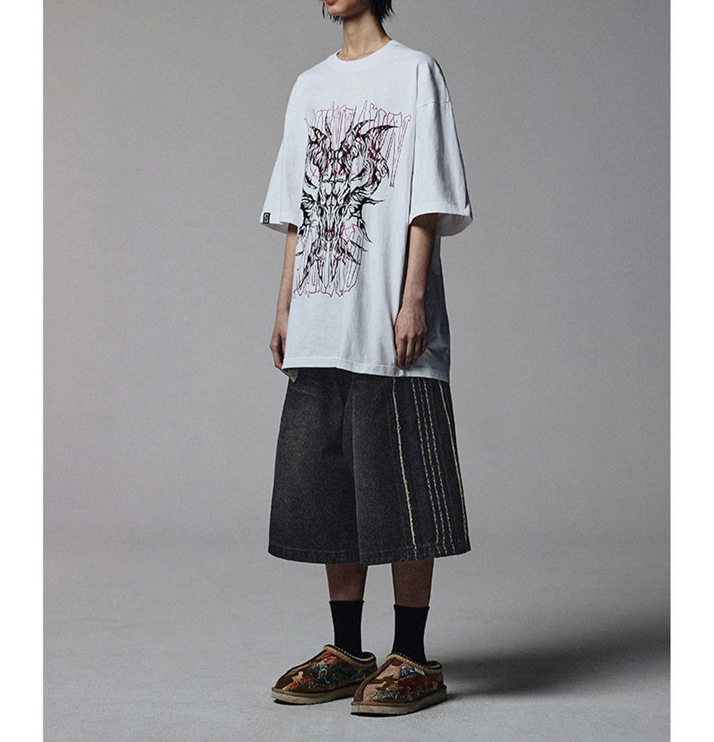 膝丈のワイドシルエットでストリートスタイルにもぴったりとハマる一本です。