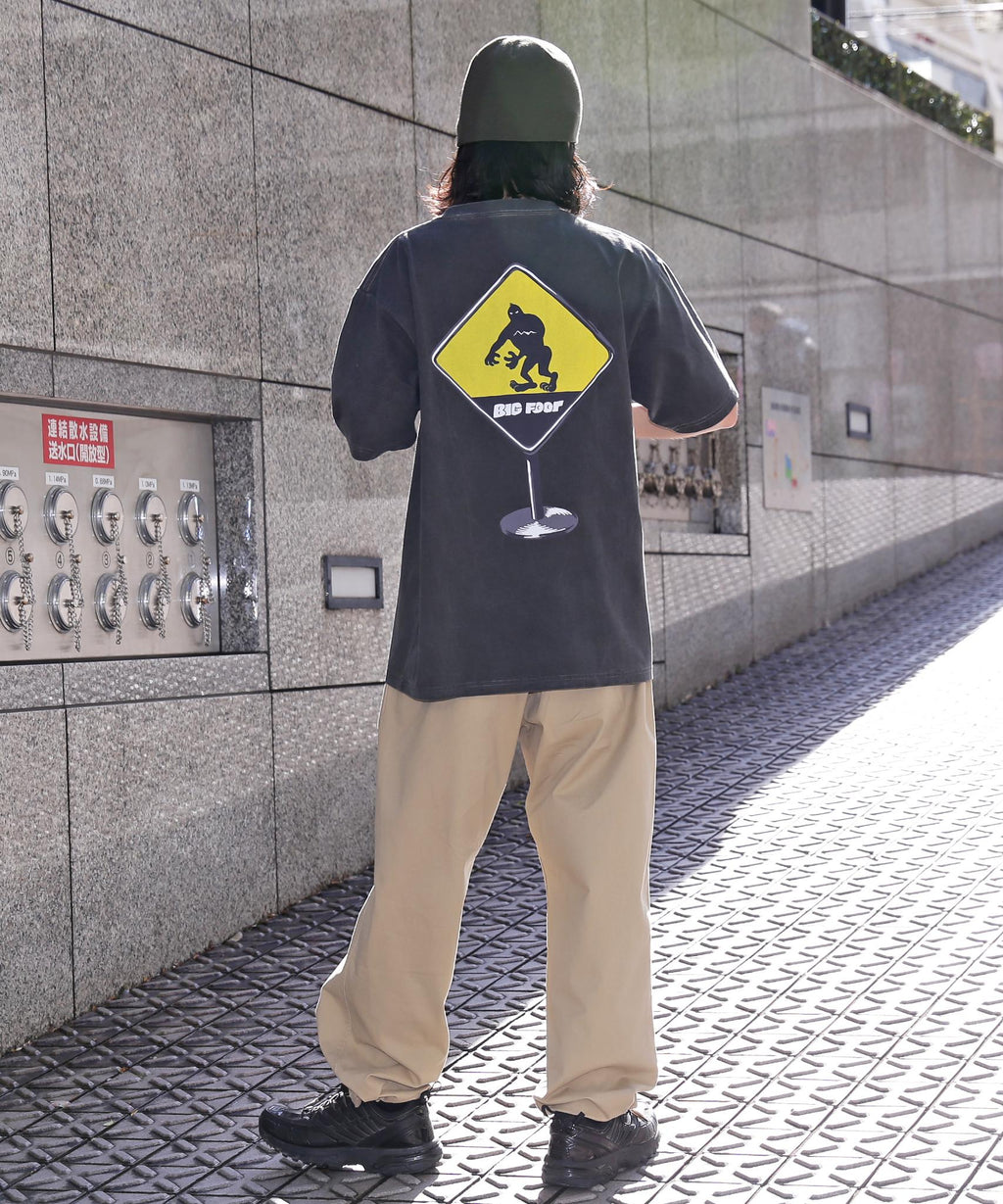 ・MANASTASH祖業の地であるワシントン州はもちろん、北米全土で目撃情報があるUMAビッグフットを【ビッグフット注意!】と、道路標識に落とし込んだ、ユーモア溢れる、ブランドらしいグラフィック