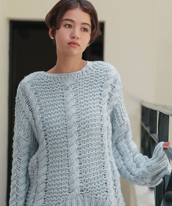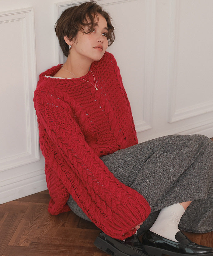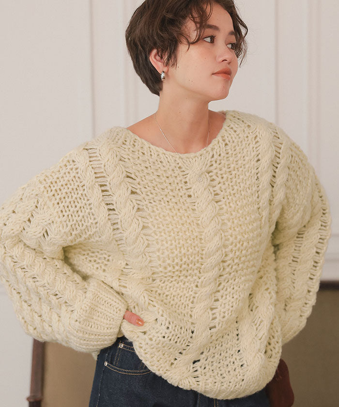 ・立体感のあるハンドライクのケーブル編みで、着るだけで主役になる1枚