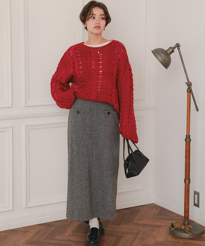 ・細身の落ち感スカートと合わせれば、女性らしさも取り入れつつ、トレンド感あるバランスに