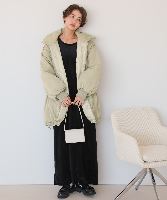 ティティベイト titivate ウエストドローストリングハイネック中綿ジャケット