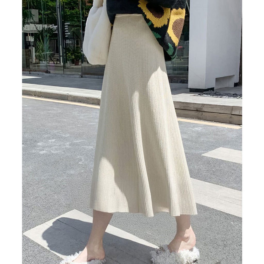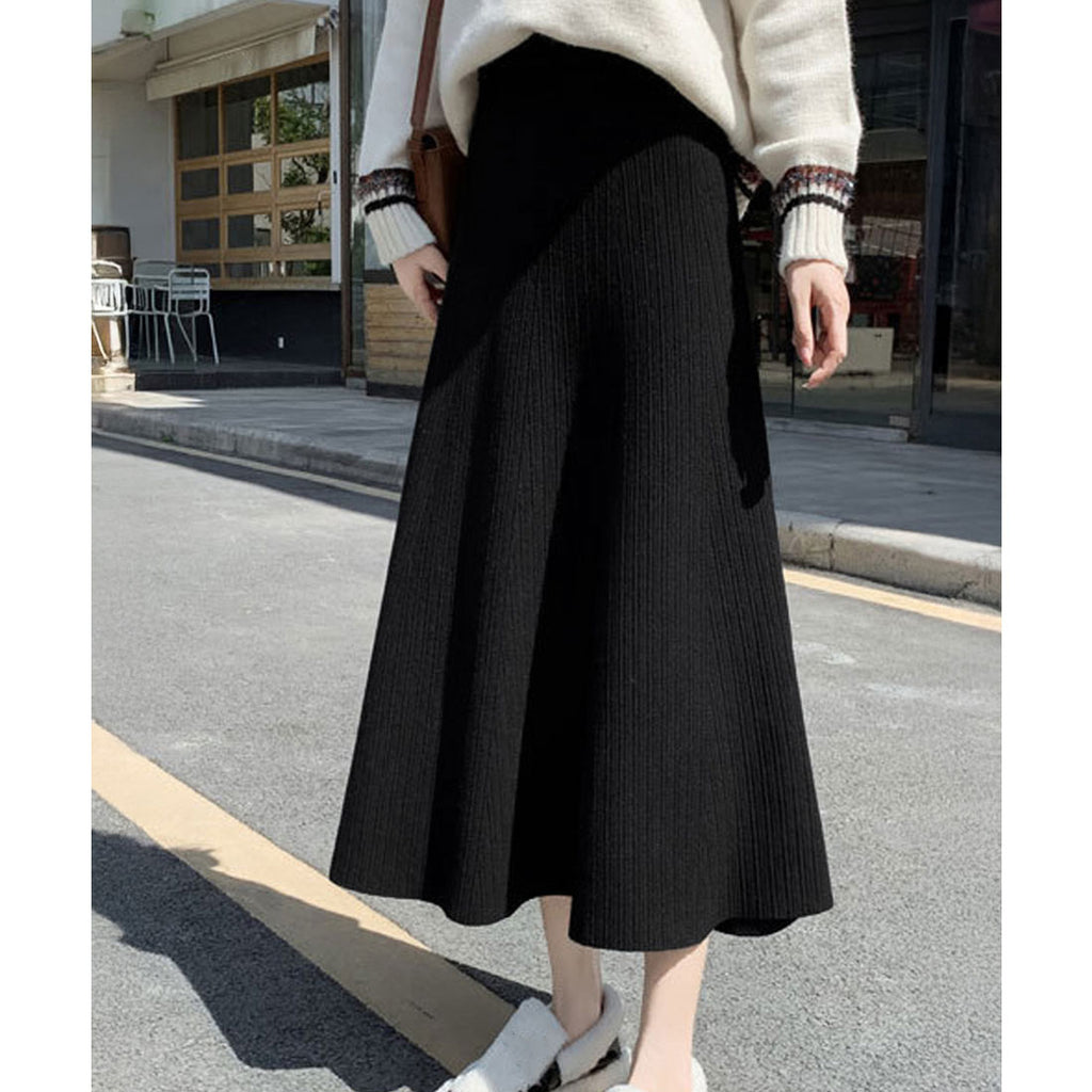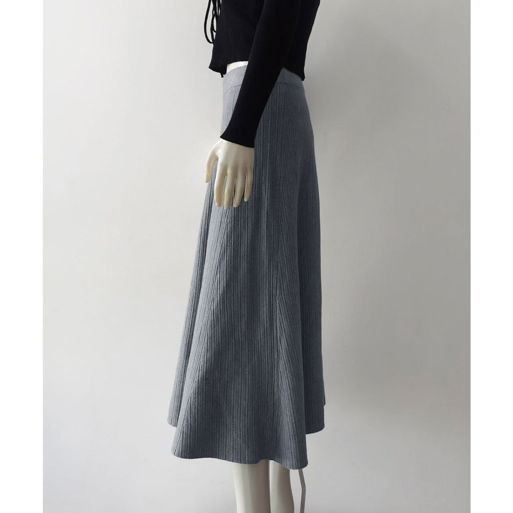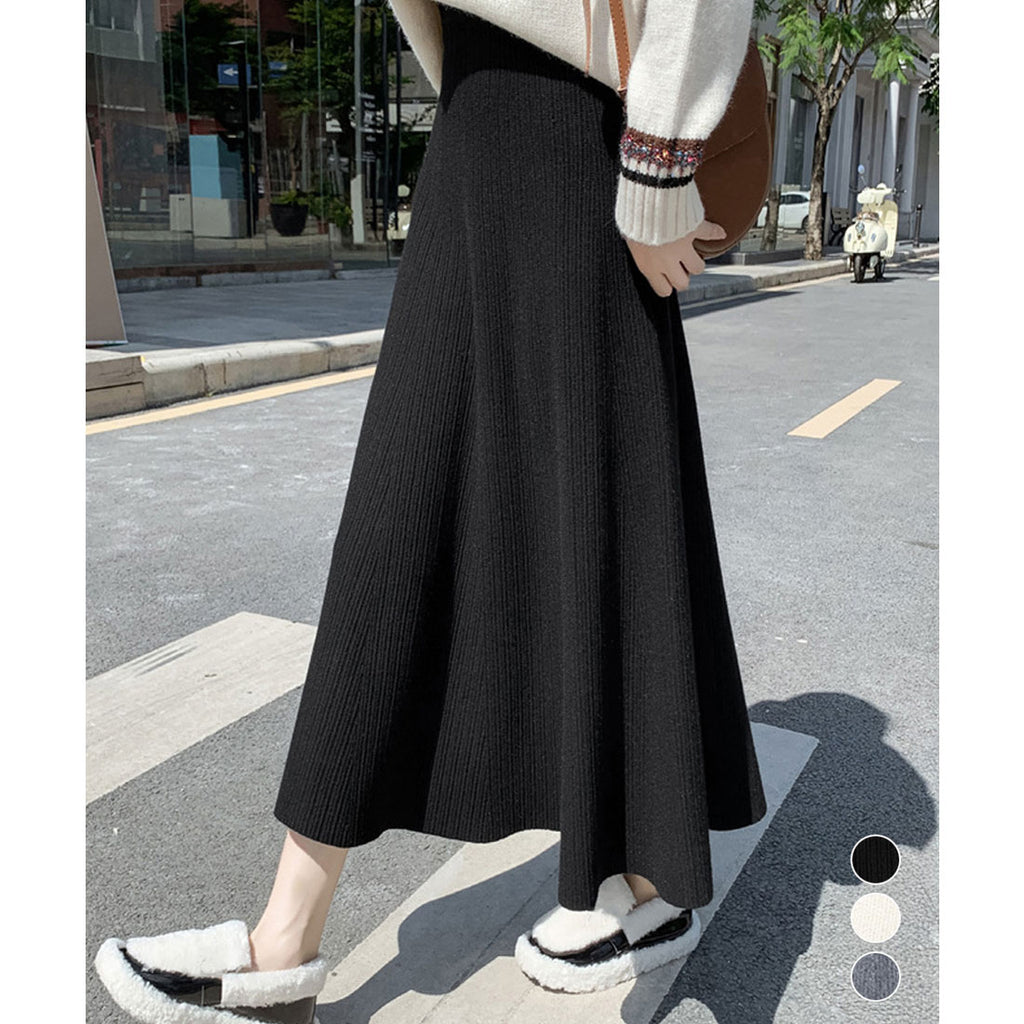 レディース Aラインスカート リブスカート ウエストゴム ハイウエスト ボトムス 体型カバー 大人可愛い 韓国風