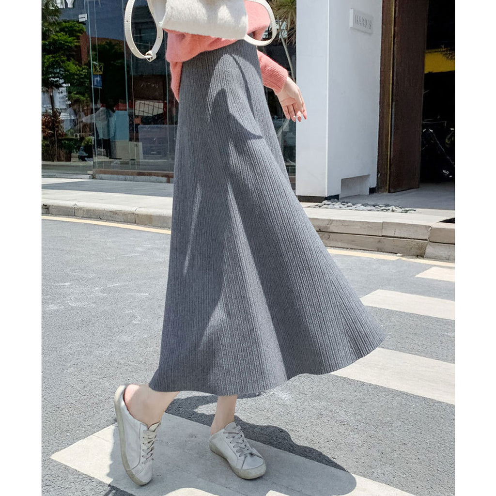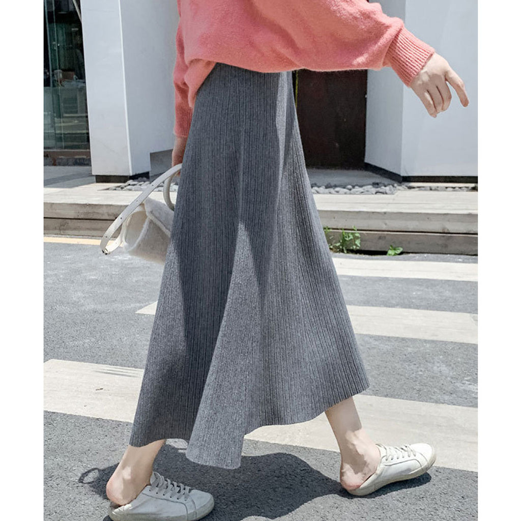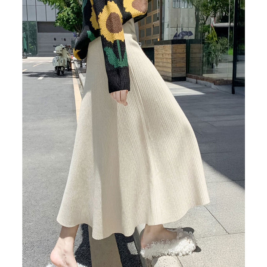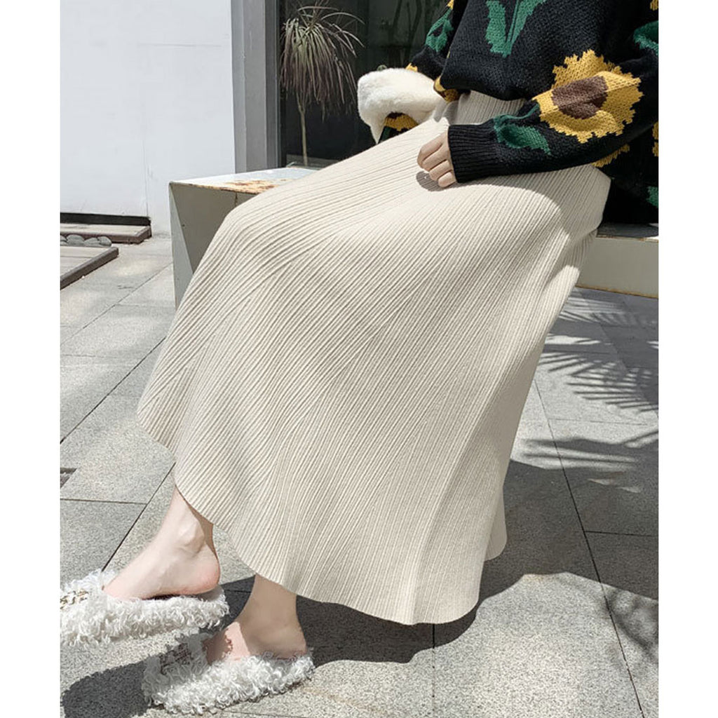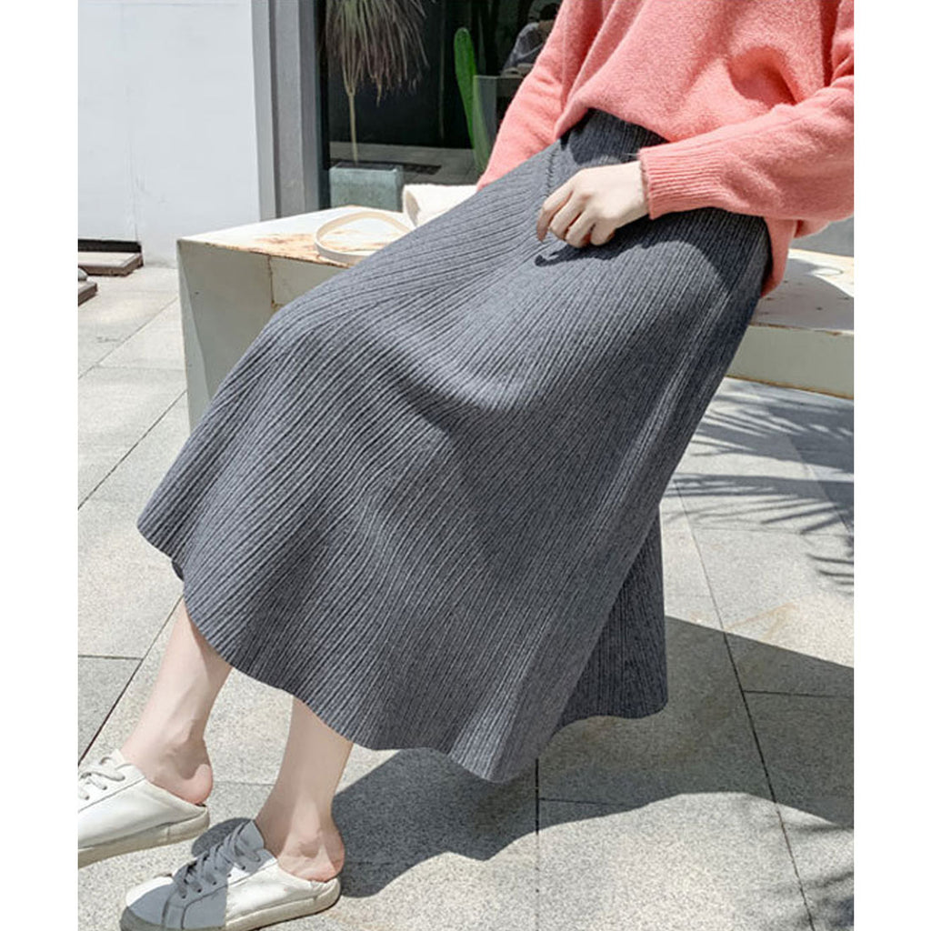 レディース Aラインスカート リブスカート ウエストゴム ハイウエスト ボトムス 体型カバー 大人可愛い 韓国風
