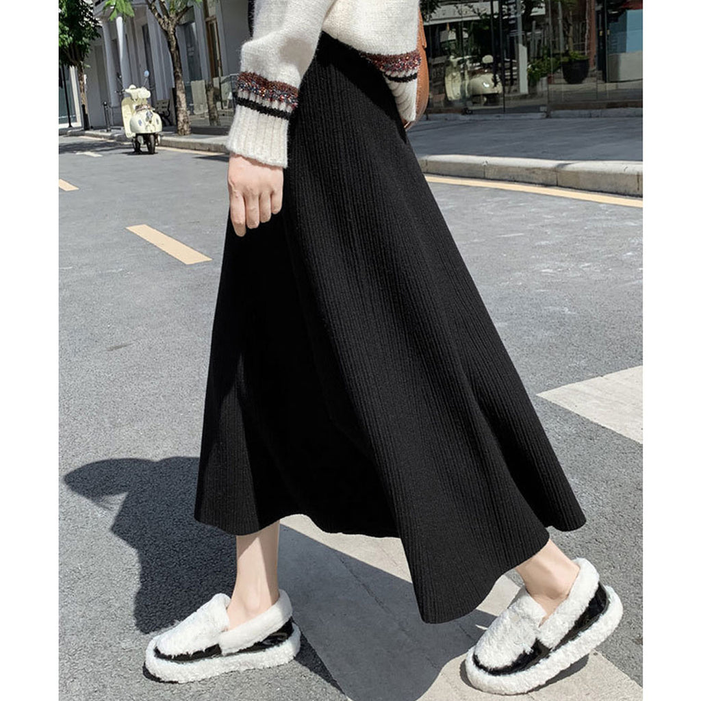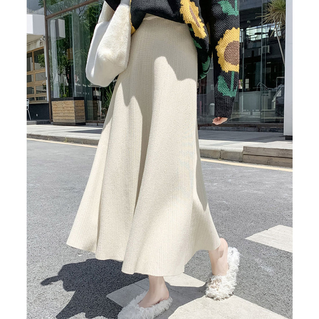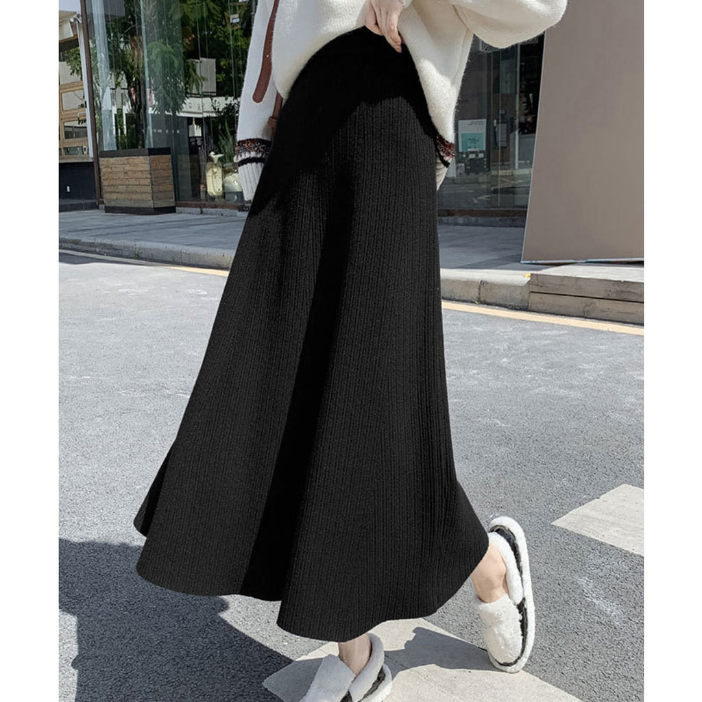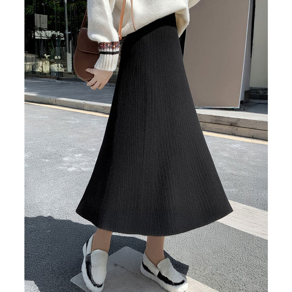 レディース Aラインスカート リブスカート ウエストゴム ハイウエスト ボトムス 体型カバー 大人可愛い 韓国風