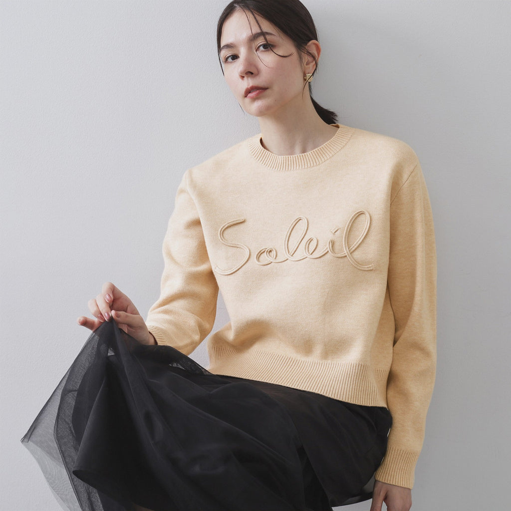 ・立体的なニットのチェーン刺繍ロゴをポイントにしたニットプルオーバー。