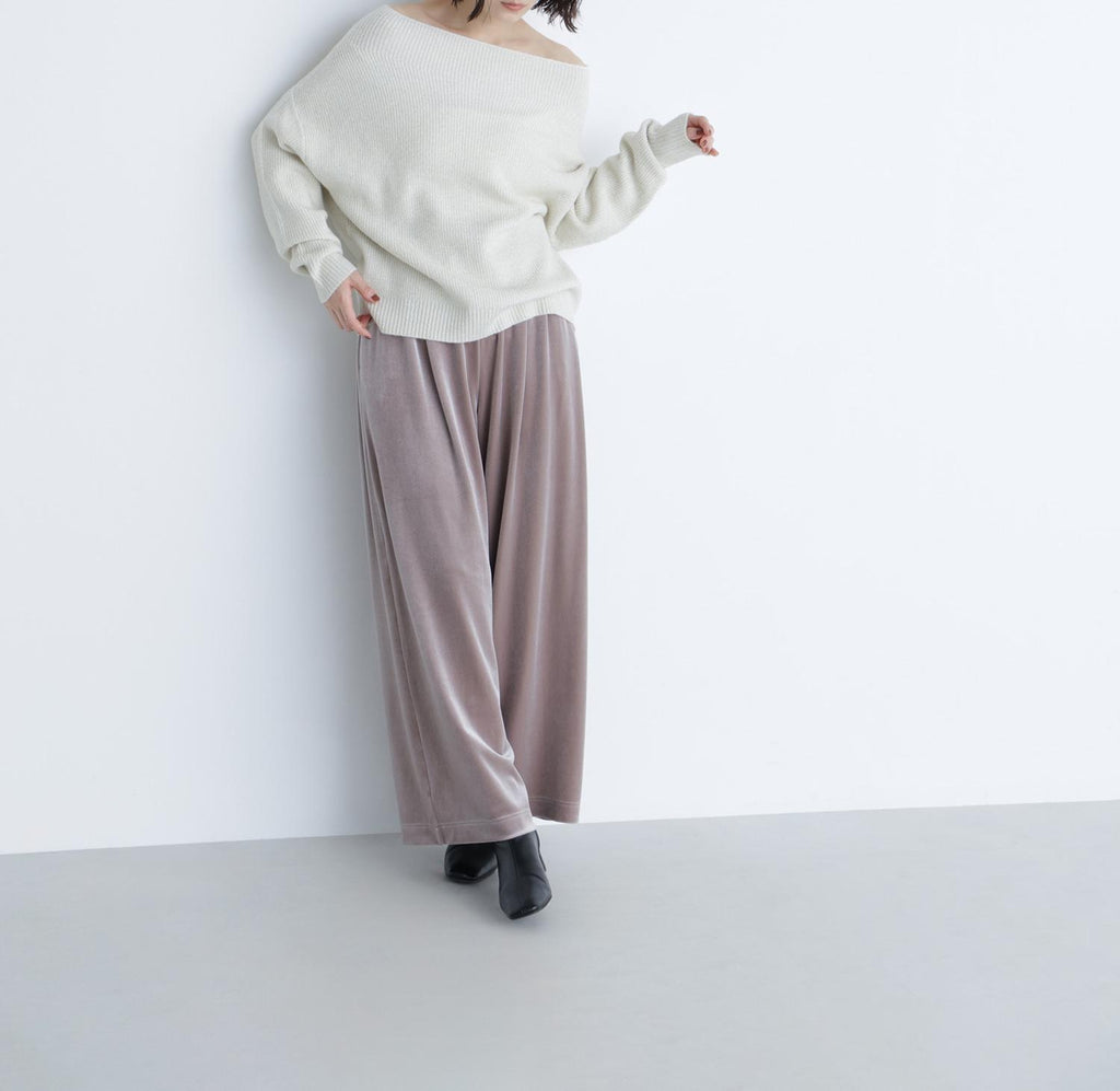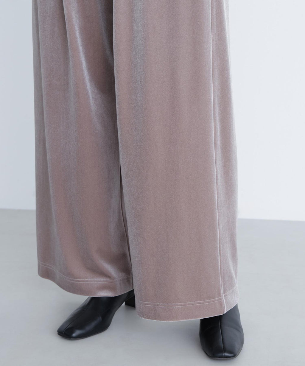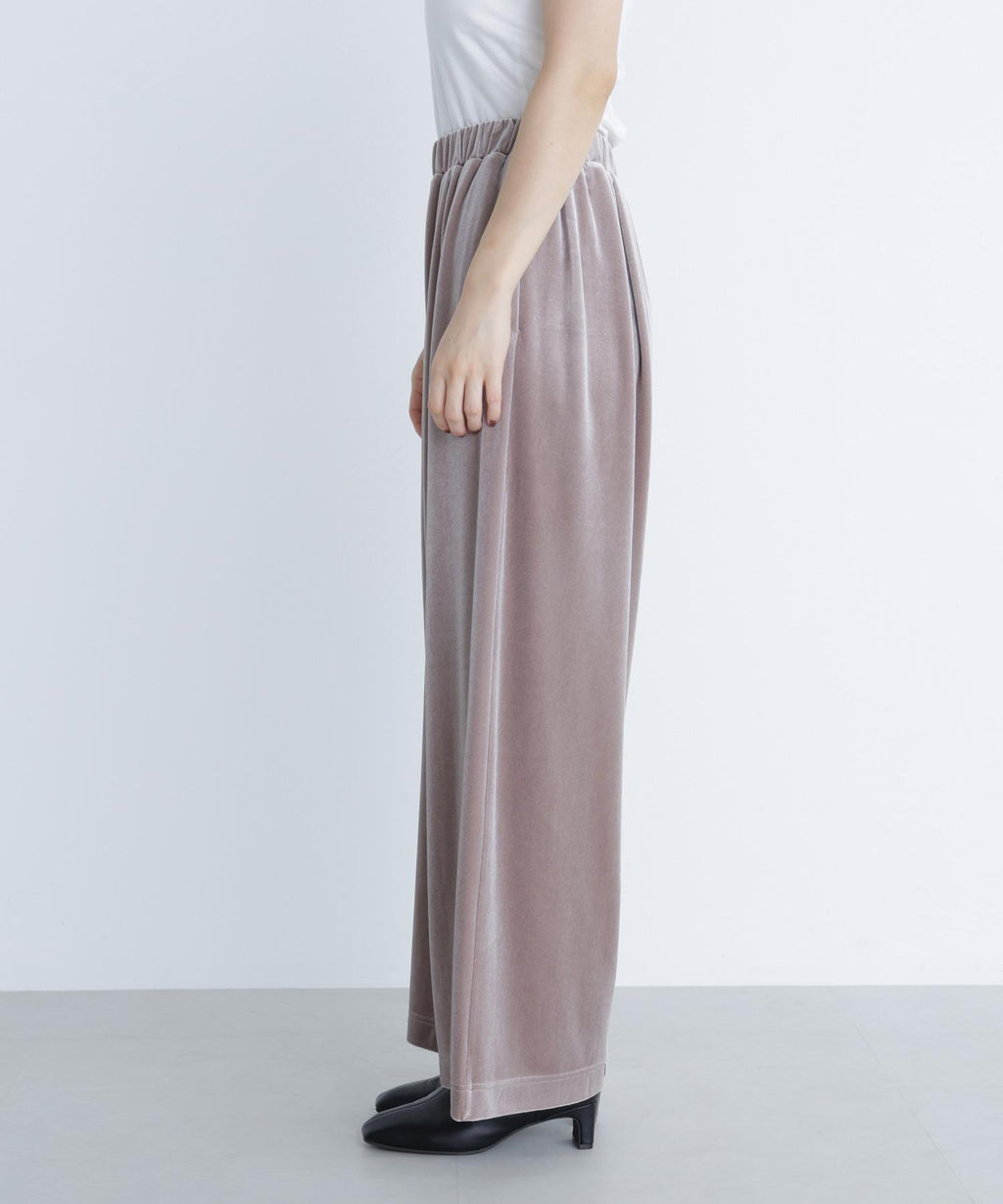 リラックス感漂うイージーデザインでデイリーに活躍できるベロアパンツ。ウエストは総ゴム仕様ではきやすくなっています。光沢感のあるベロア素材がコーディネートに華やかさをプラス。落ち感のあるストレートシルエットで美脚見えを叶えます。