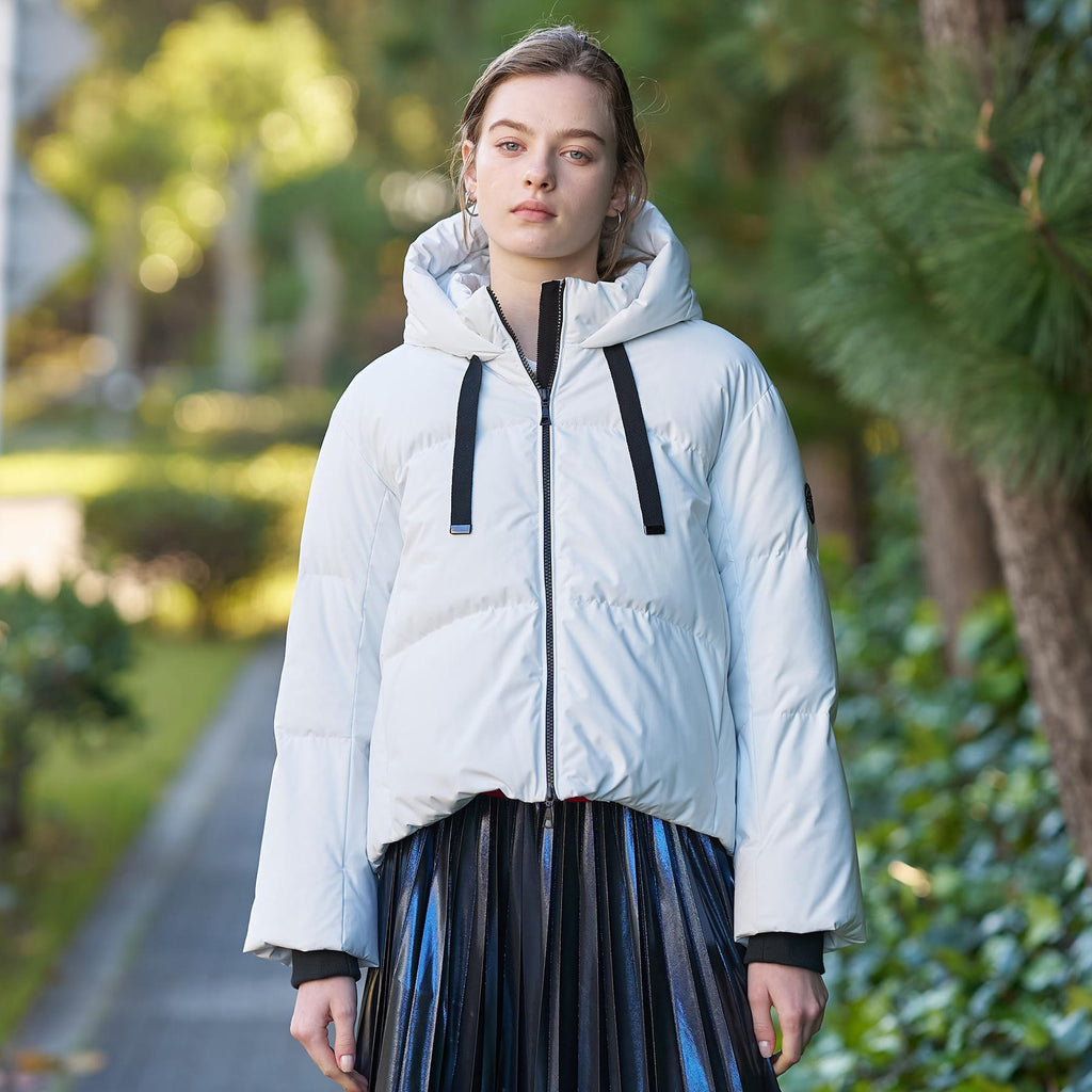 【毎年人気!トレンド感のあるショート丈&ボリュームフードで、軽やかに着こなせるダウンアウター】