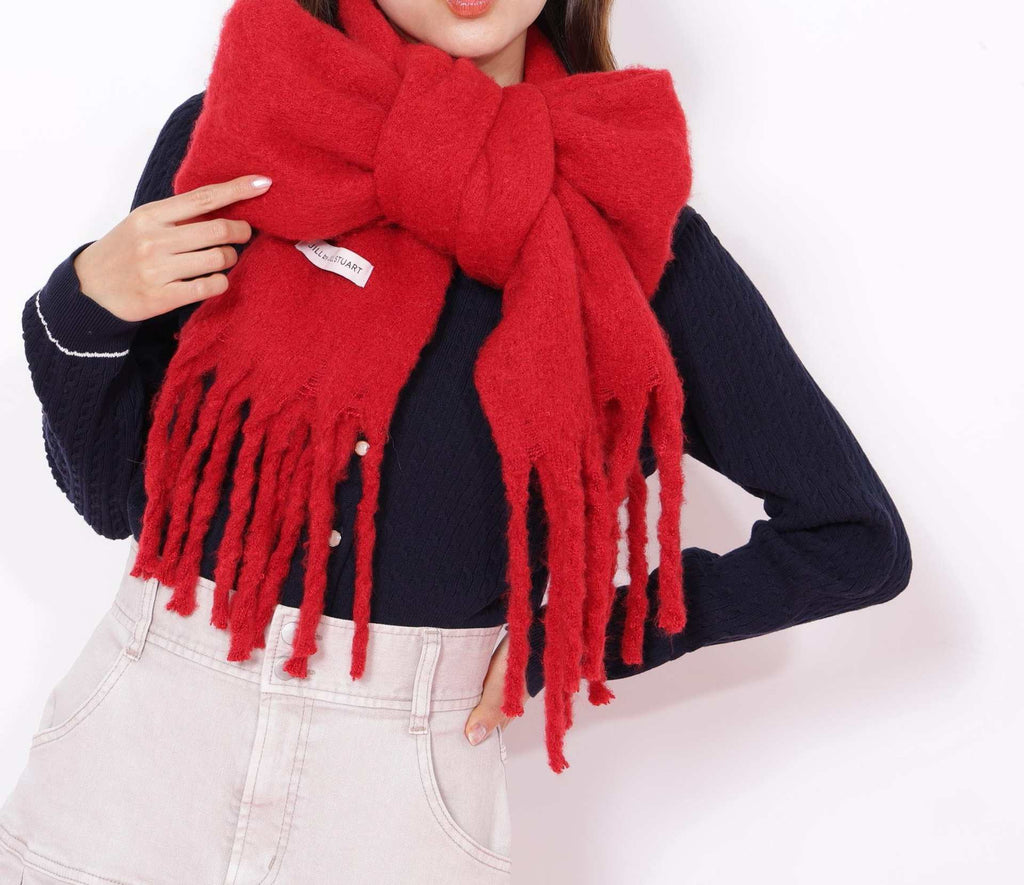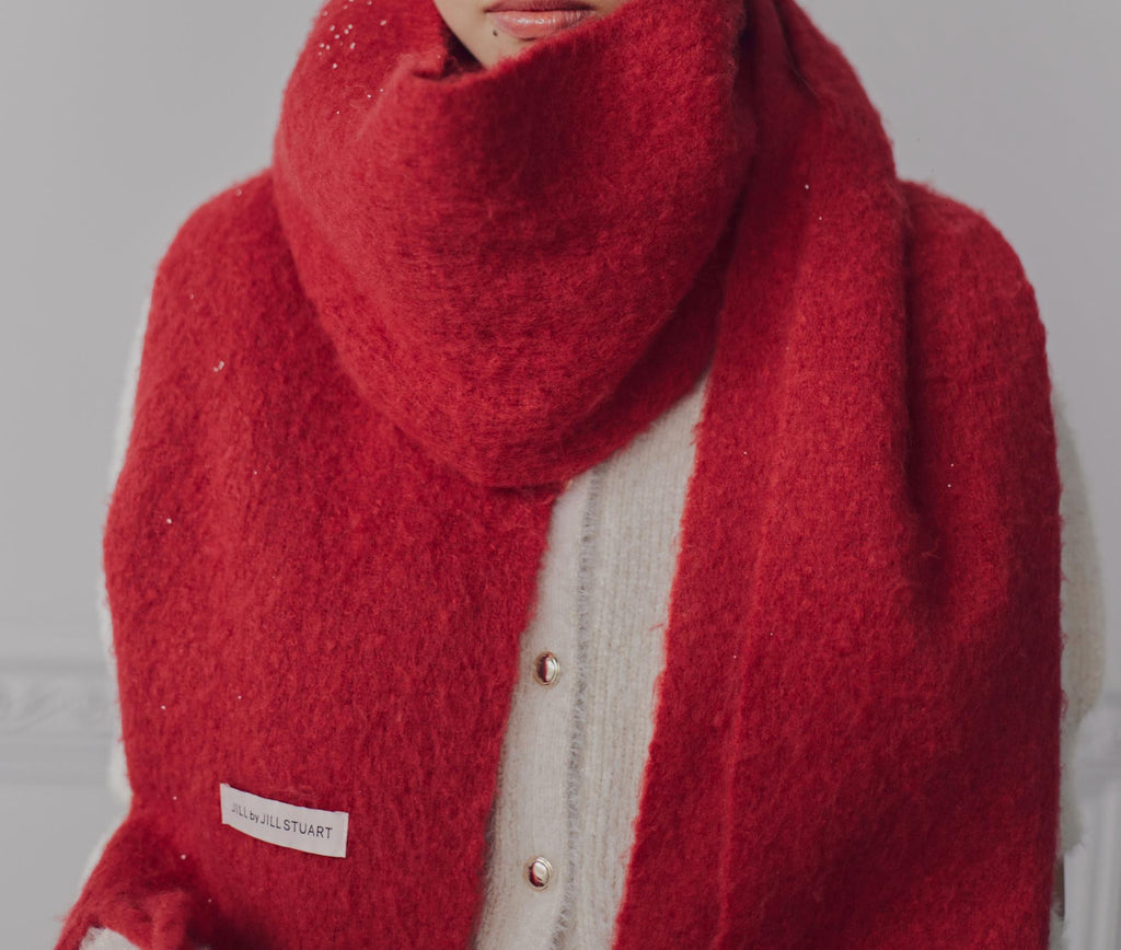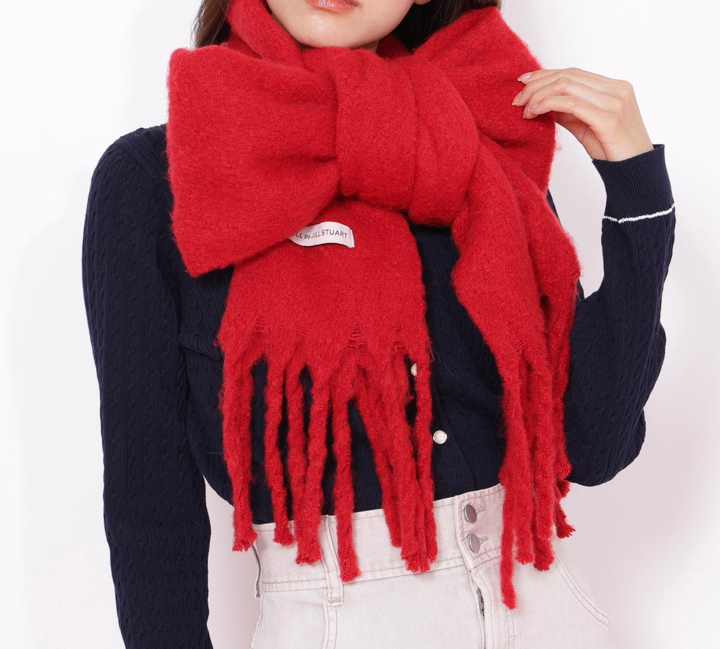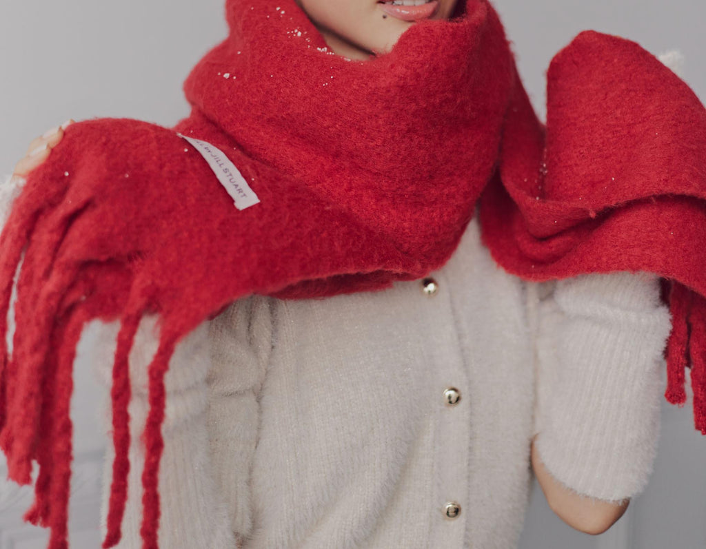 「ふんわりとした風合いで色展開が豊富な大判ストール」太番手のリング糸を使用し起毛加工をいれてふんわりとした風合いに仕上げています。ふわっと空気をはらみ軽く、柔らかく、ボリュームがあるのが特徴。クリアな発色も魅力で巻いた時に顔まわりを包み込むボリューム感が可愛く小顔効果も期待出来ます。今季初登場のピンク色のブランドネームがついています。※撮影時照明の関係により、色味が違って見える場合がございます。