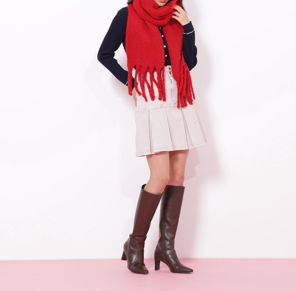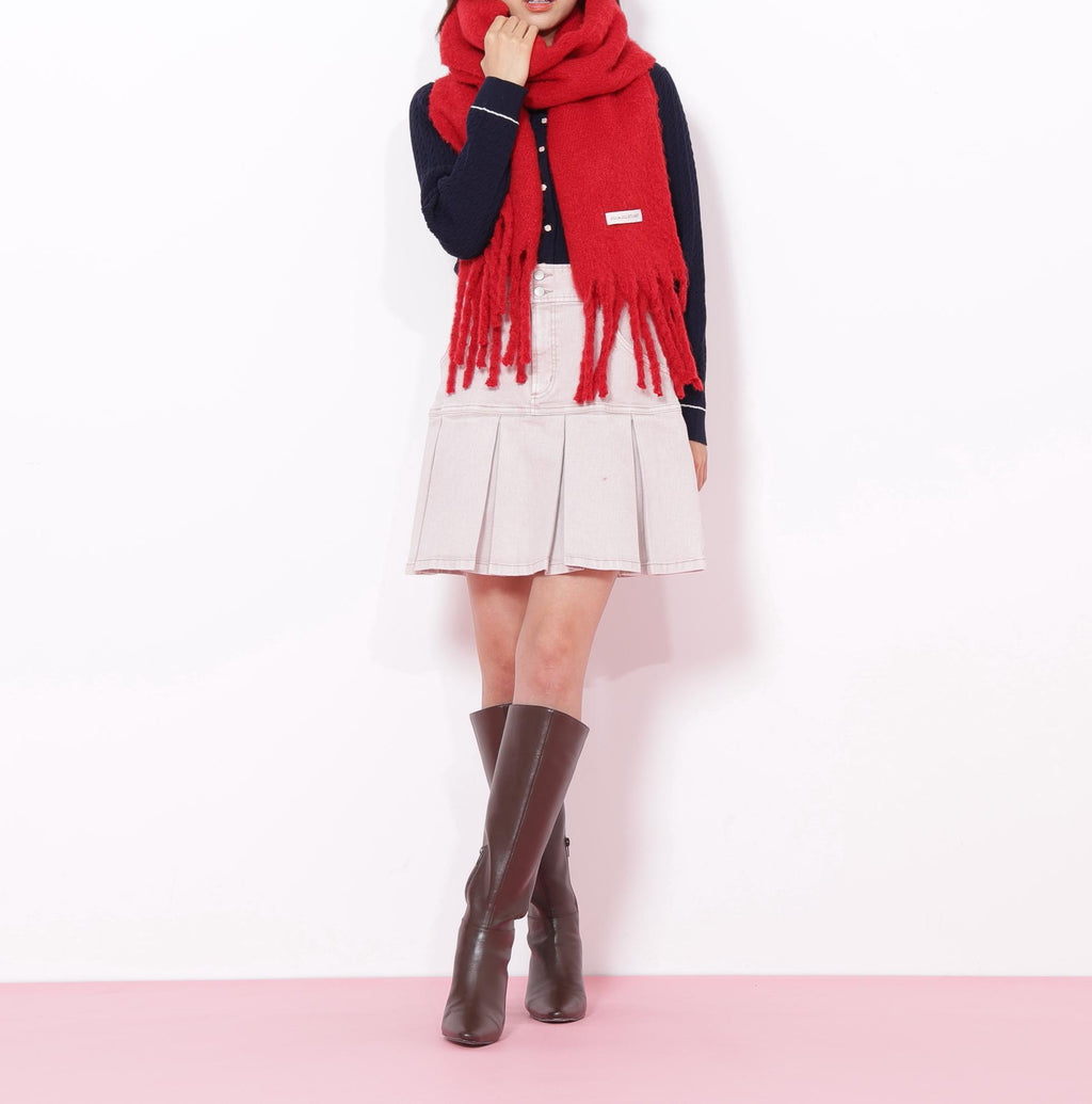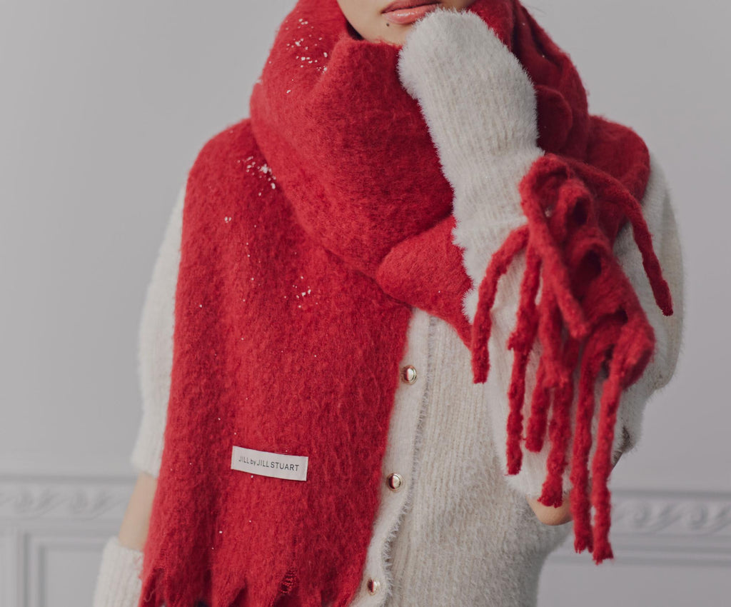 「ふんわりとした風合いで色展開が豊富な大判ストール」太番手のリング糸を使用し起毛加工をいれてふんわりとした風合いに仕上げています。ふわっと空気をはらみ軽く、柔らかく、ボリュームがあるのが特徴。クリアな発色も魅力で巻いた時に顔まわりを包み込むボリューム感が可愛く小顔効果も期待出来ます。今季初登場のピンク色のブランドネームがついています。※撮影時照明の関係により、色味が違って見える場合がございます。