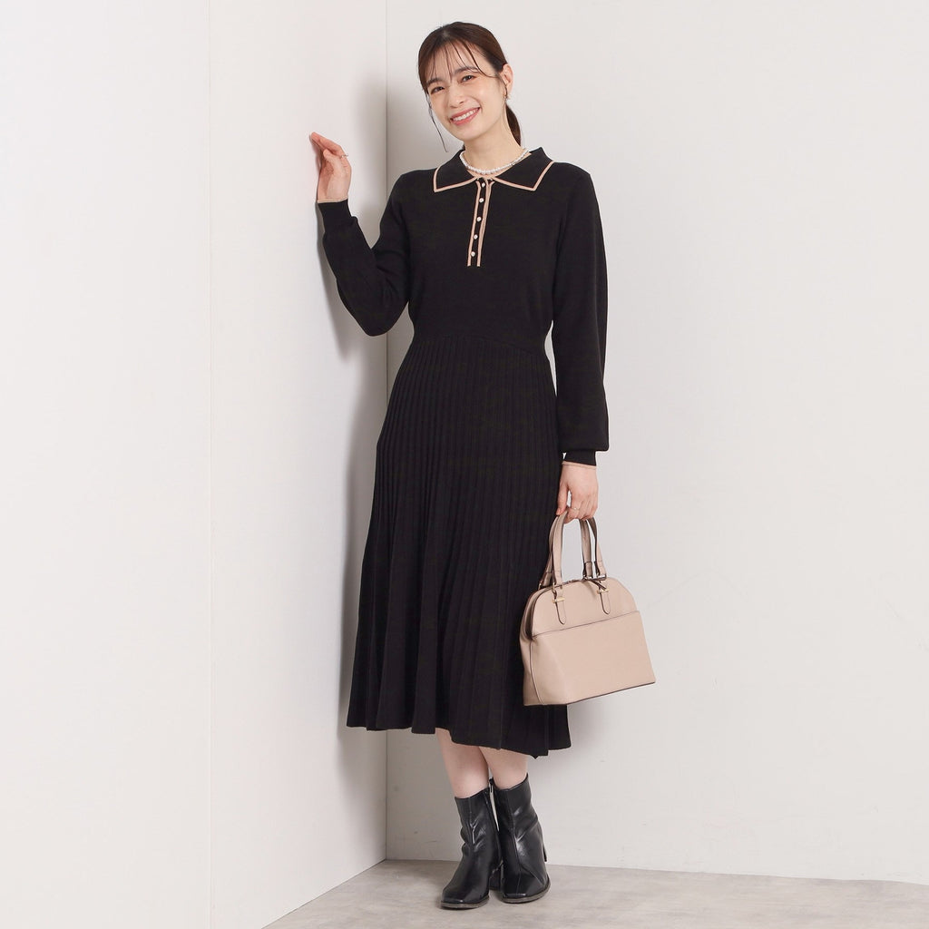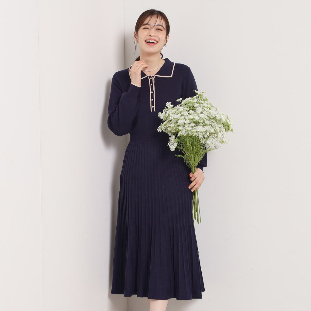 一枚でコーディネートがサマになる、きれいシルエットのニットワンピ。