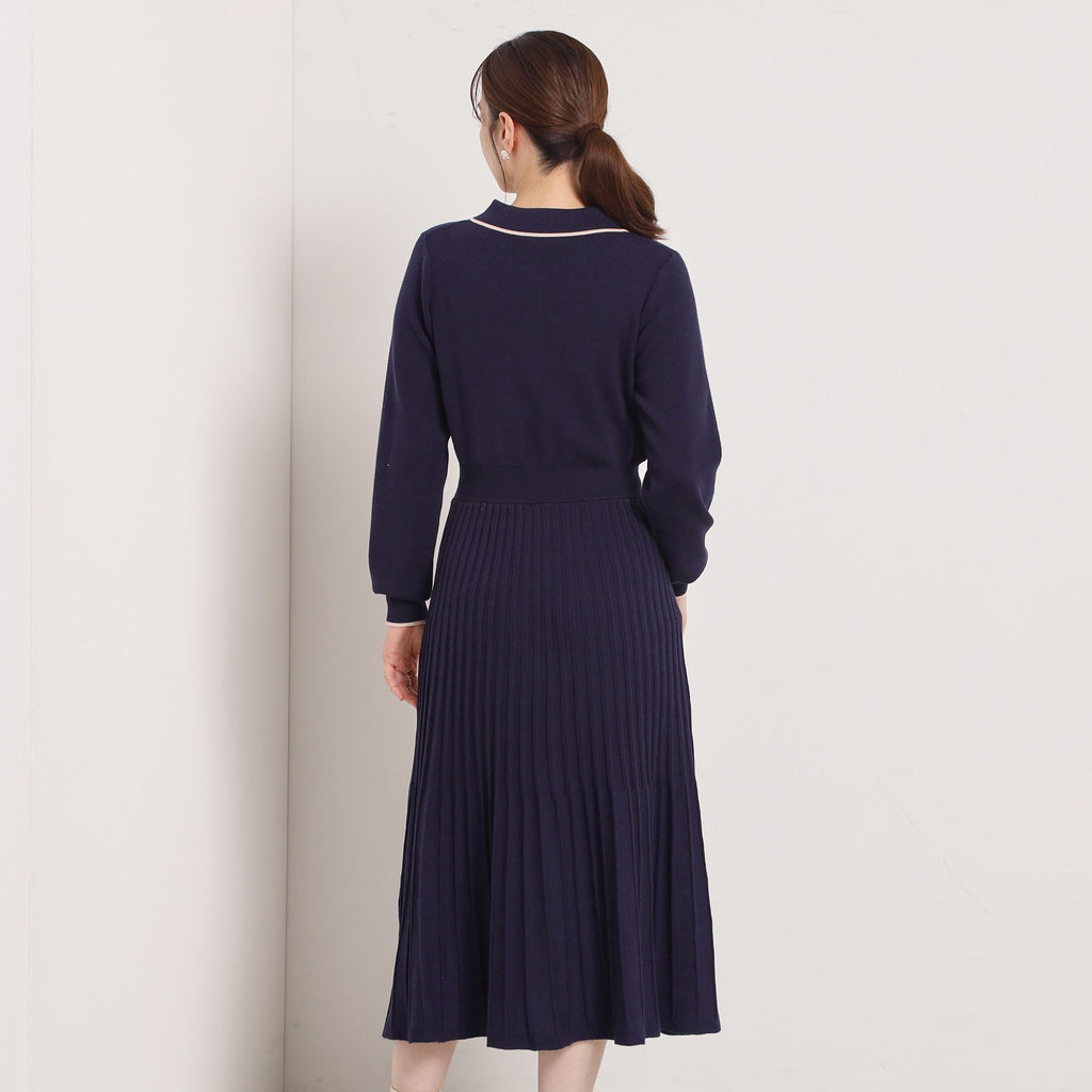 スカート部分はプリーツ風の編地でふわっと広がるフレアーライン。