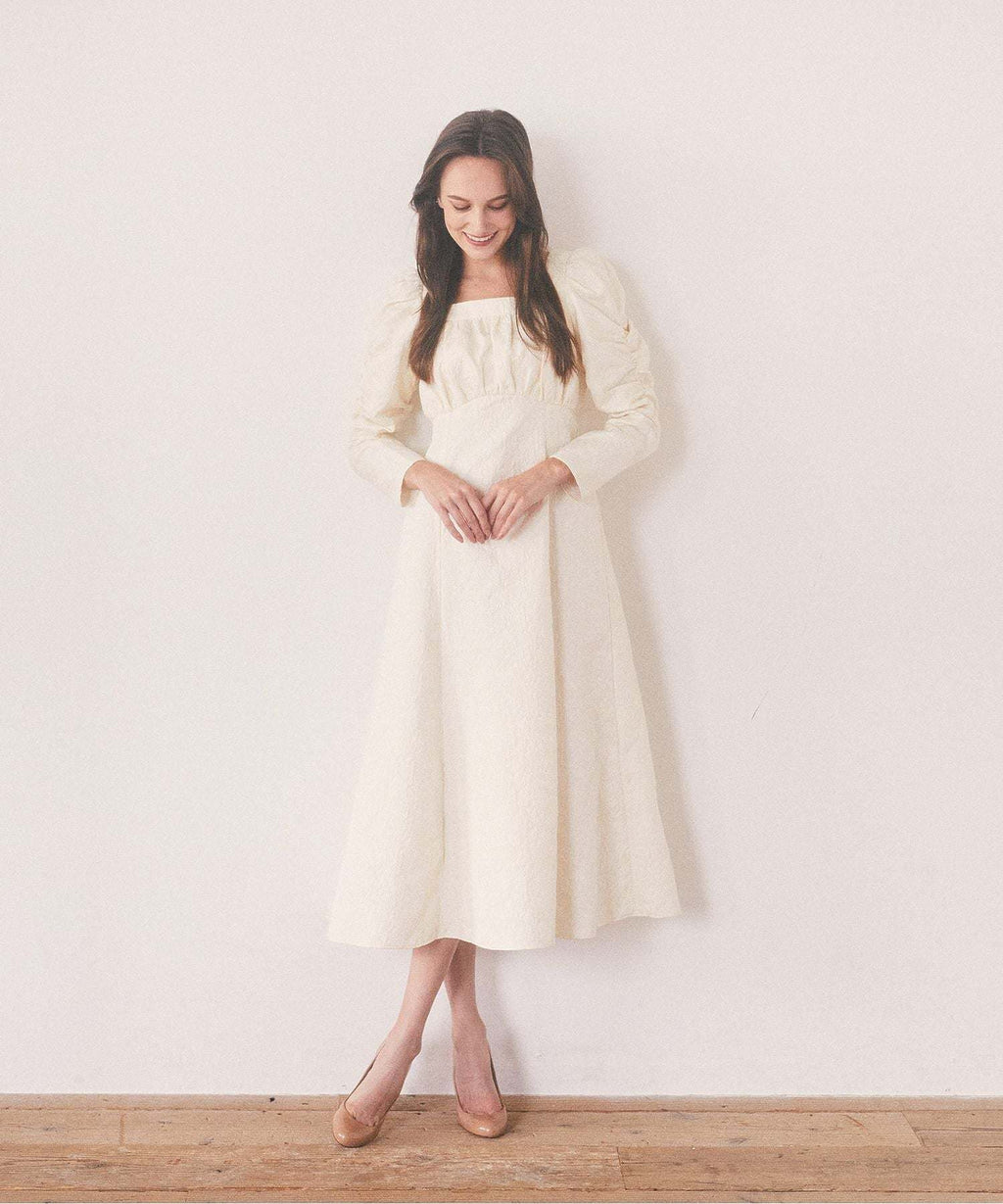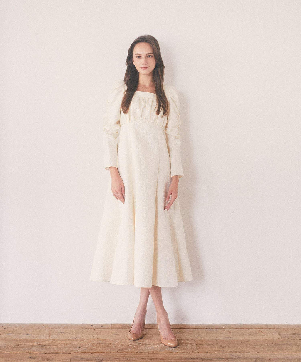 -Maison de FLEUR cinema-今季のテーマ「Maison de FLEUR cinema」では、Maison de FLEURを通して生まれる物語にスポットライトを当て、それぞれのシリーズを架空の映画として表現します。「Trois Sœurs(三姉妹の絆)」2024.9.13ROADSHOW上品なジャカード素材のロングワンピース。背面のテープリボンがポイントの大人可愛いデザインです。フレアシルエットが優しい印象をプラス。立体的な素材感が豪華な雰囲気を演出します。1枚でコーディネートの主役になってくれるアイテムです。