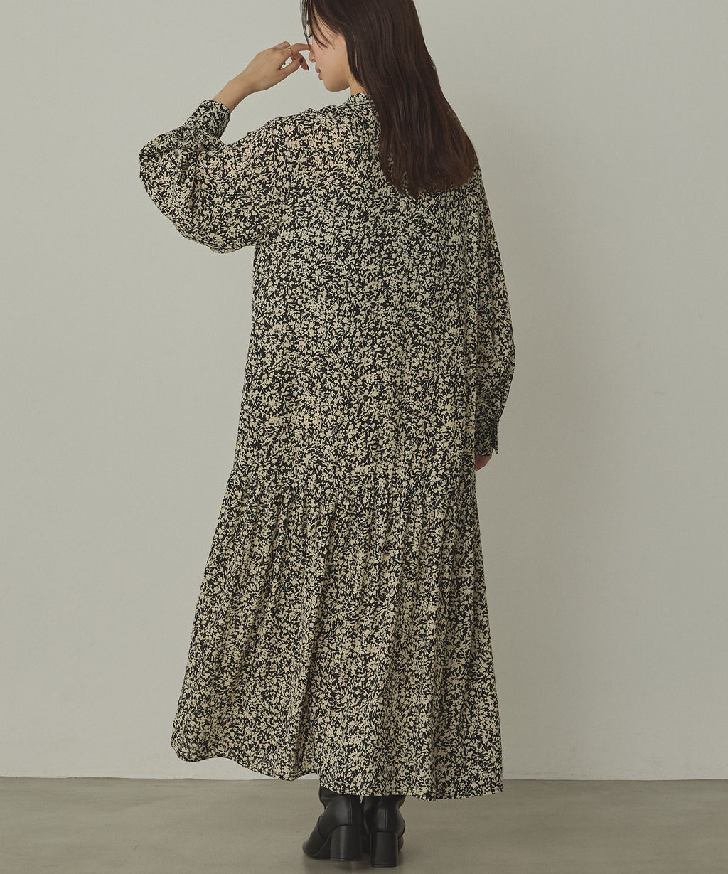 小さな小花風の柄が甘すぎず使いやすい、ティアードワンピース