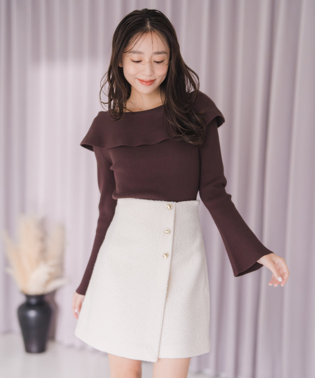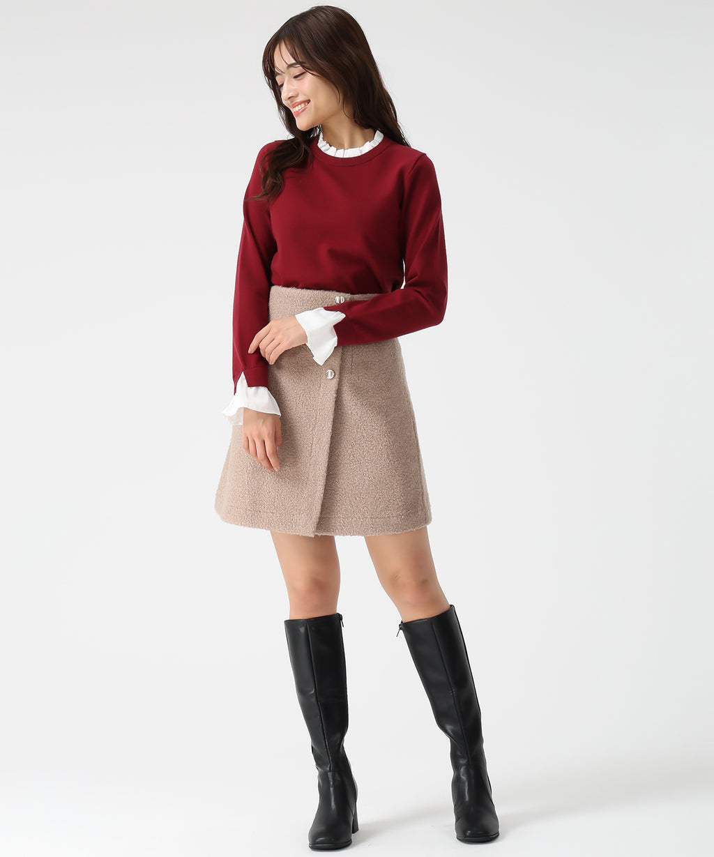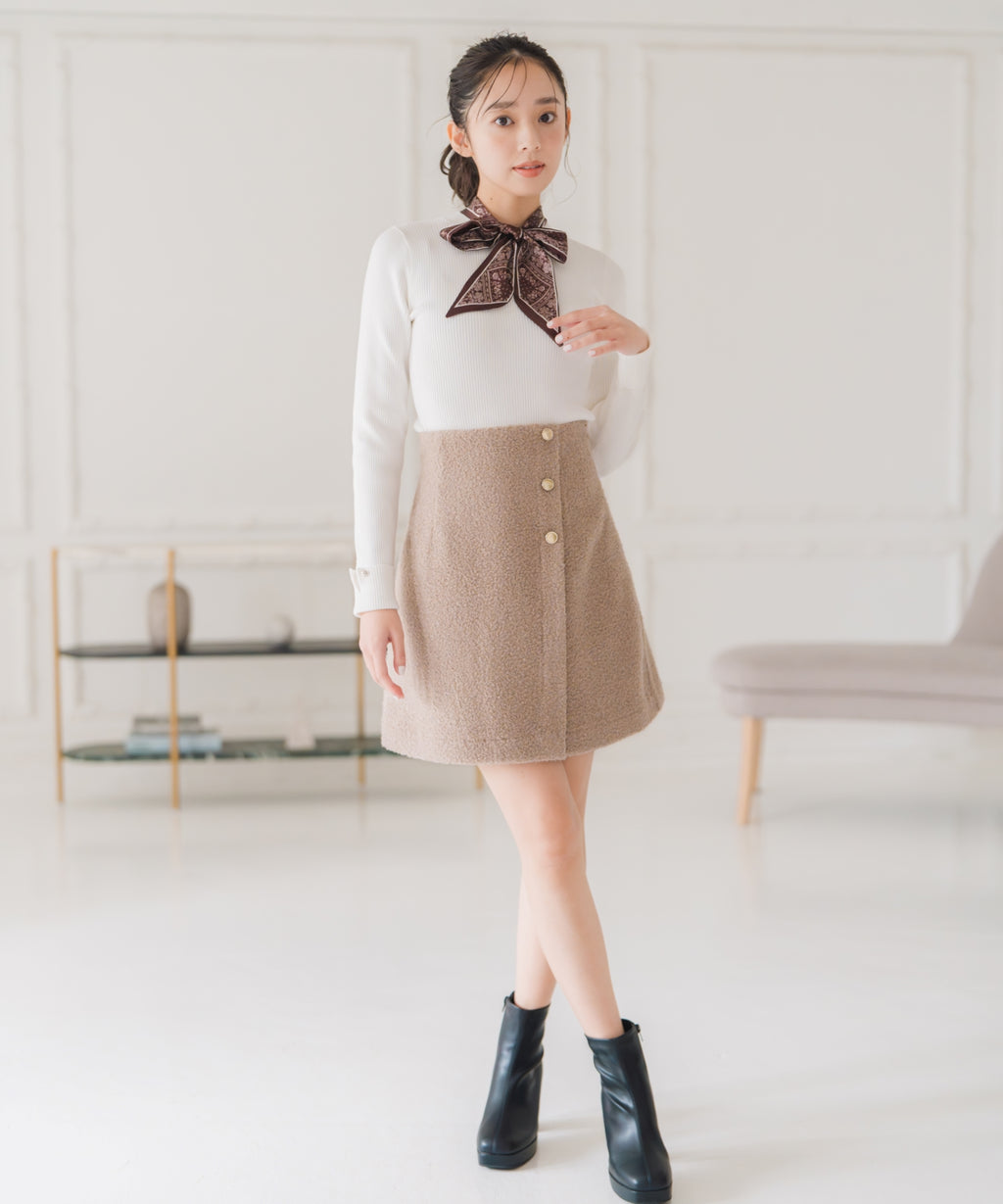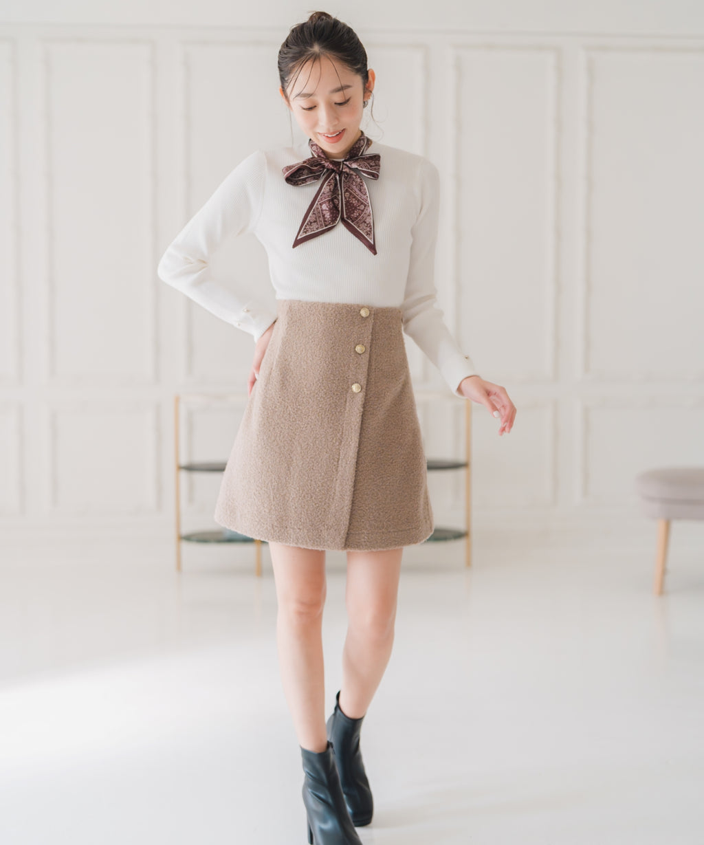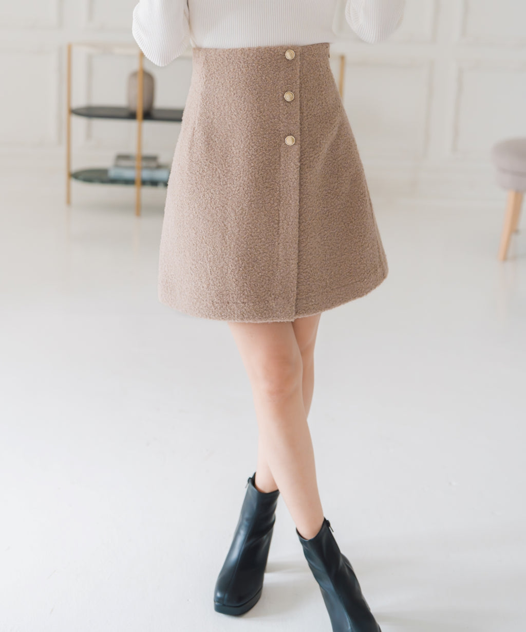 表情のあるブークレー素材がシーズンムードを高めるミニスカート。