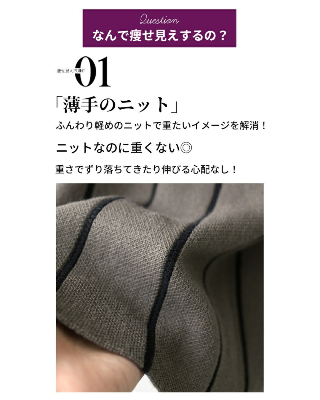 ニット素材なので、軽やかで動きやすいのが特徴です。