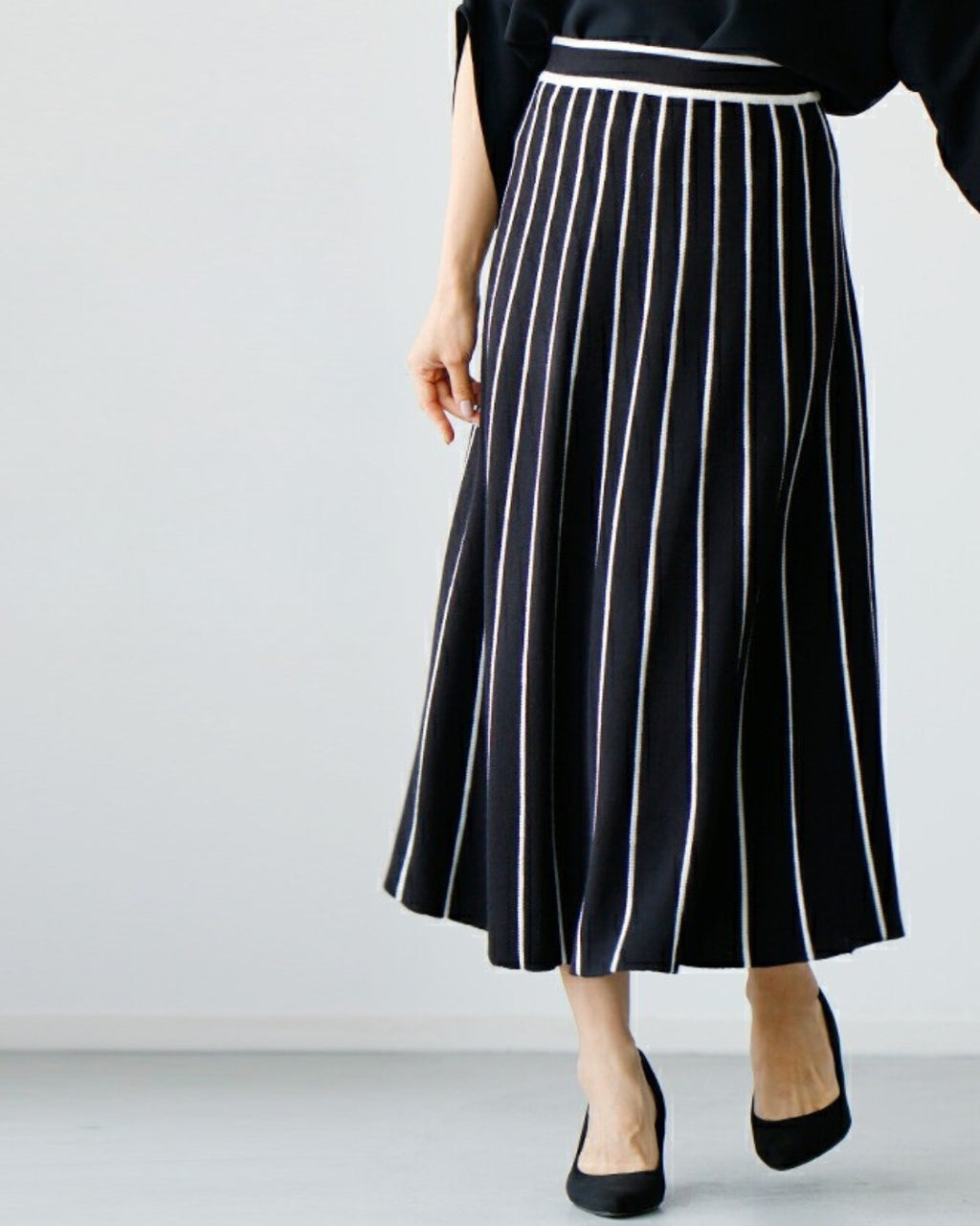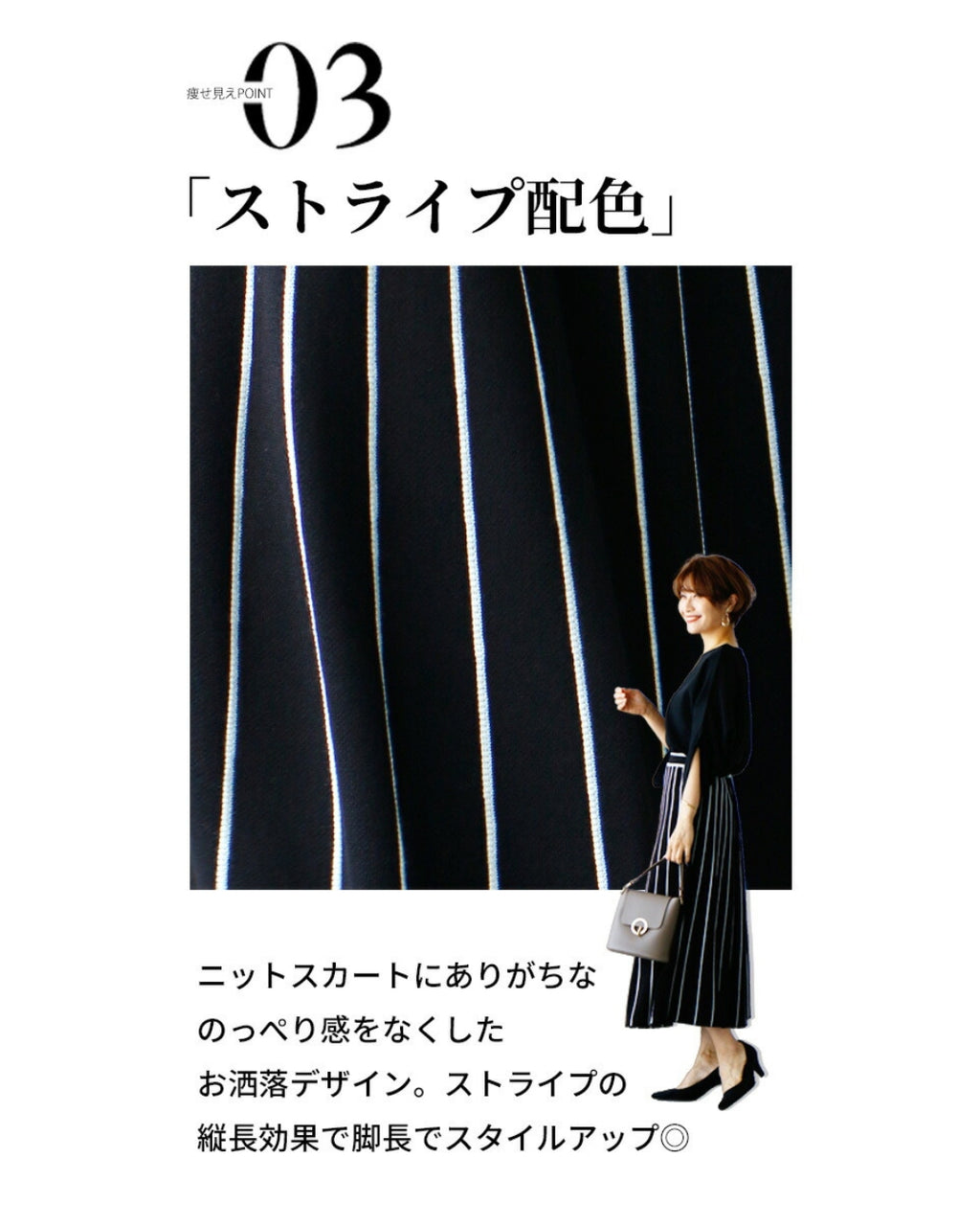 ストライプ柄が縦のラインを強調し、