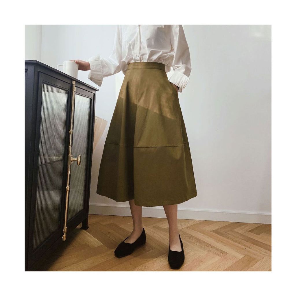 中央のラインデザインがポイントのAラインコットンスカートが登場。
