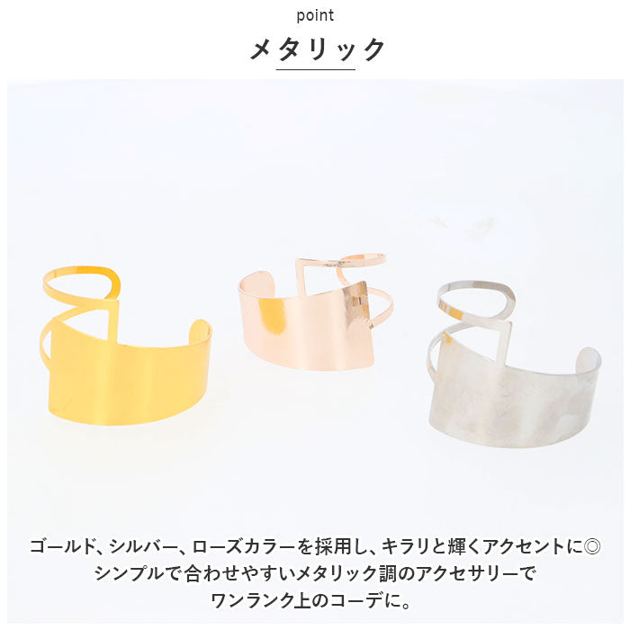 ゴールド、シルバー、ローズカラーを採用し、キラリと輝くアクセントに◎シンプルで合わせやすいメタリック調のアクセサリーでワンランク上のコーデに。