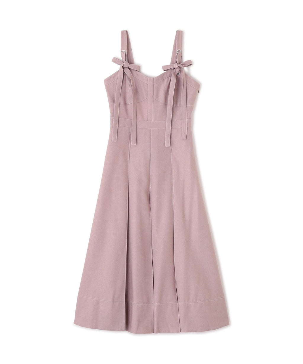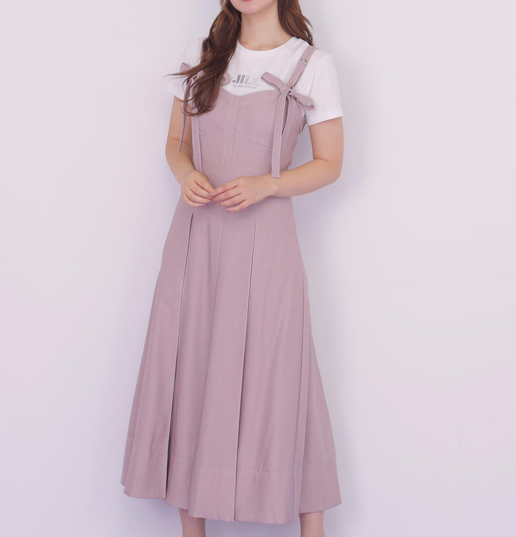 デニムライク素材に配色ステッチを効かせたビスチェデザインのジャンスカ。ウエストラインをきれいに見せるシルエットで、スタイルアップ効果も◎。インナー次第でロングシーズン着回しが楽しめます。同素材のジャケット(品番1256150012)とセットアップで洗練された印象に。フェミニンとカジュアルを両立した一着です。