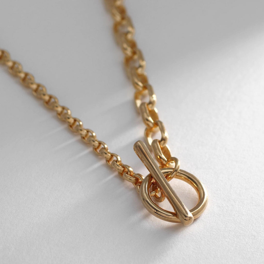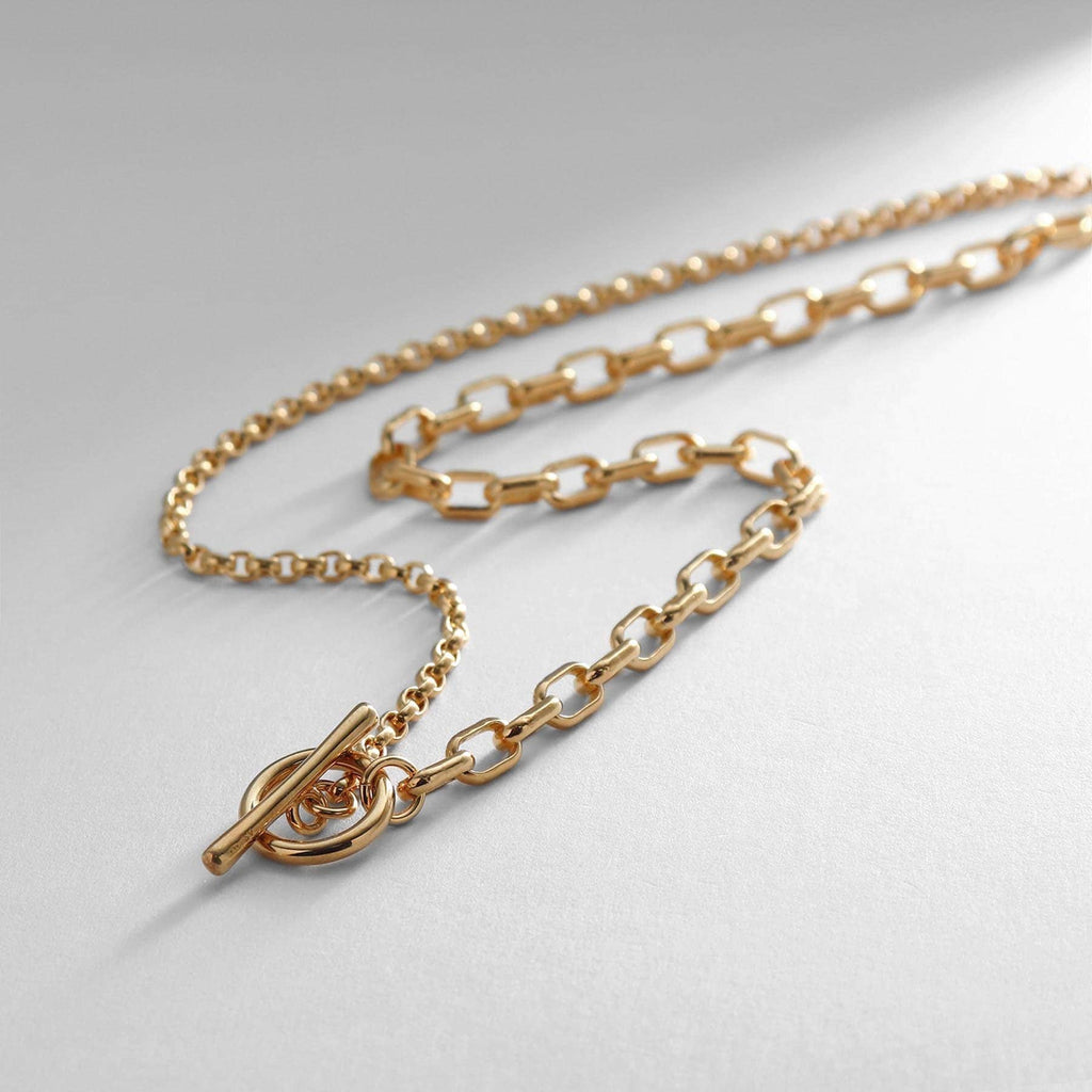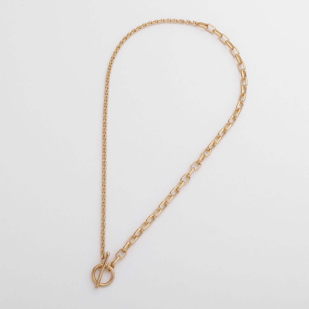 太さの違う2種類のチェーンを組み合わせたマンテルネックレス。